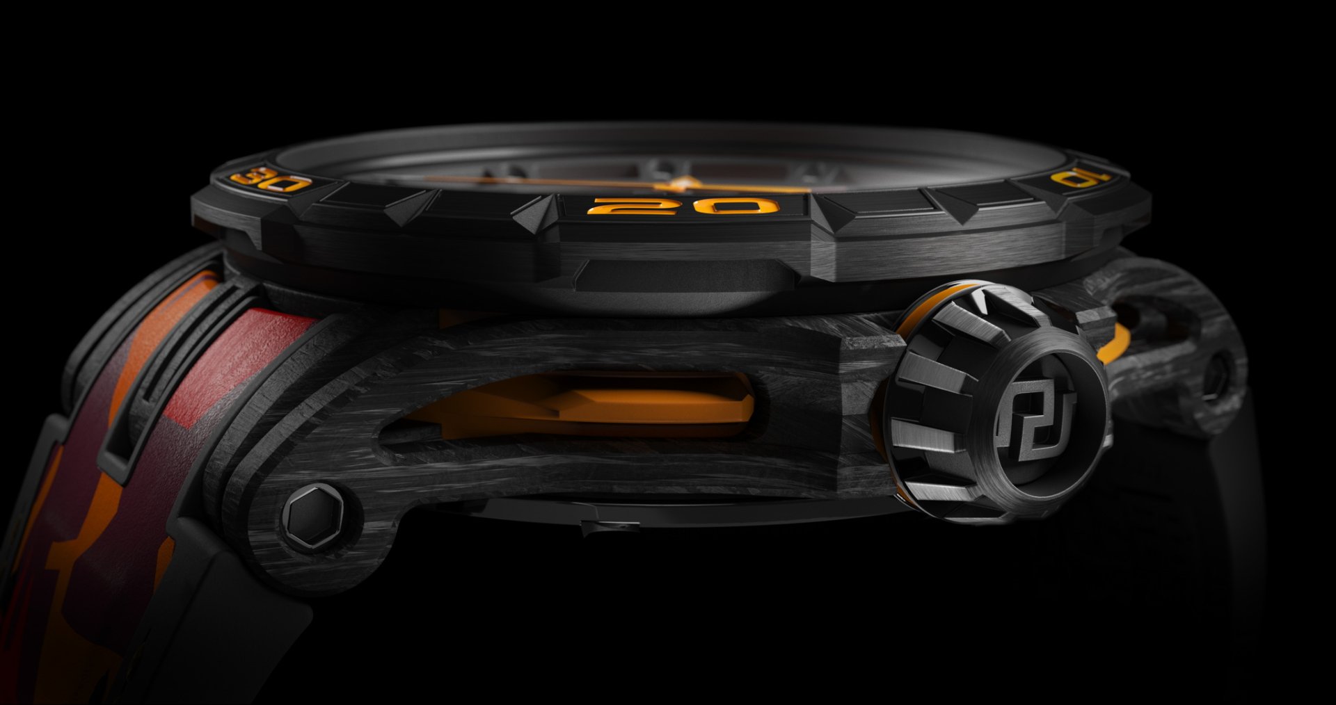 สายนาฬิกาให้มาแบบยางลายพรางดุดัน ด้านใต้ยังทำเป็นลวดลายดอกยาง Pirelli Super Trofeo R ด้วย
