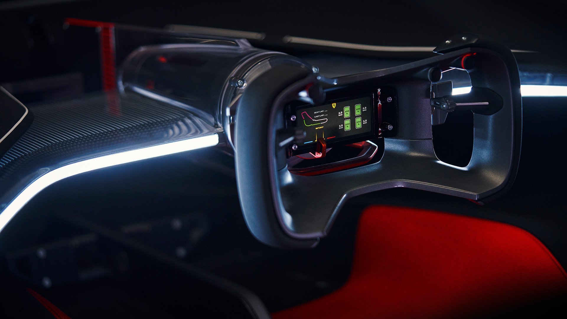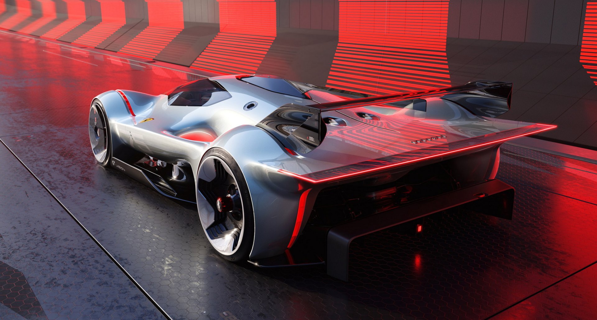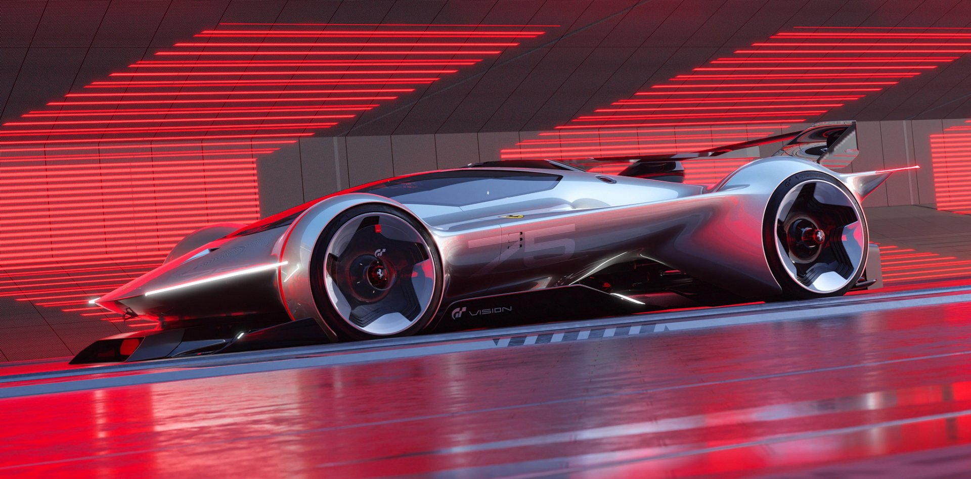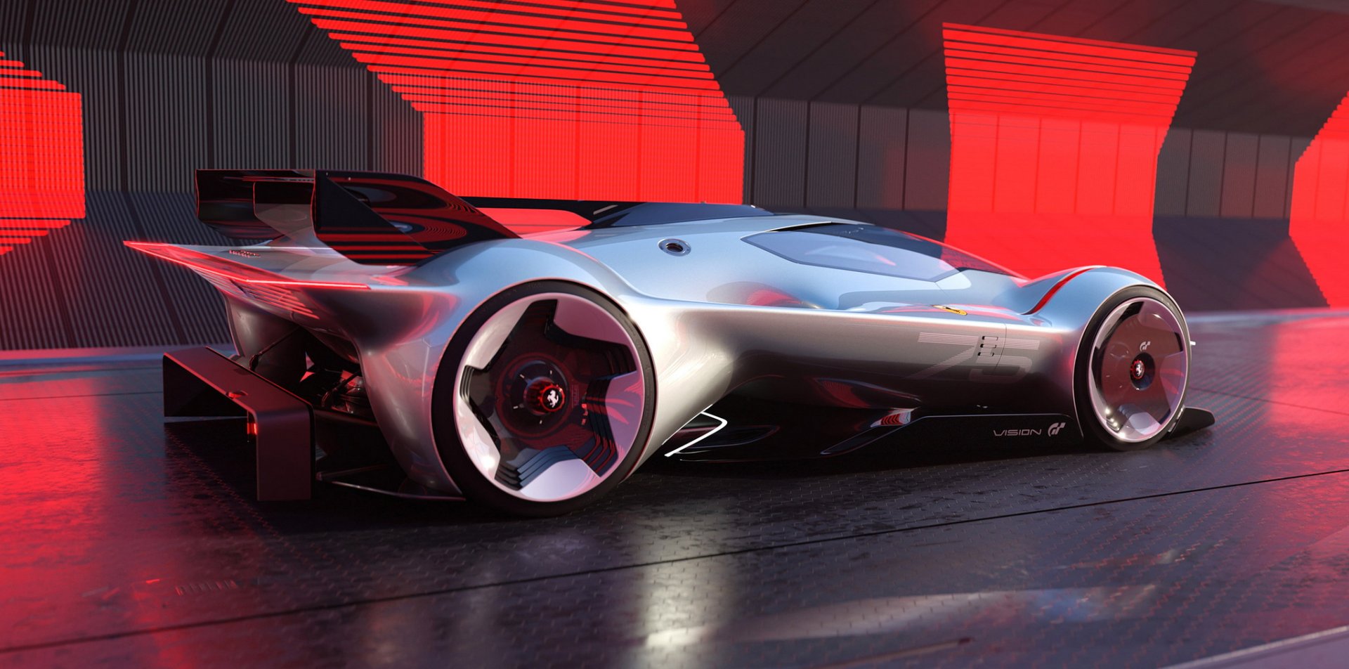 Ferrari Vision Gran Turismo ไฮเปอร์คาร์ต้นแบบสุดล้ำที่สร้างเพื่อคอเกม Gran Turismo 7 โปรเจ๊คนี้เริ่มต้นกว่าสองปีครึ่งแล้ว นำทีมออกแบบโดย Flavio Manzoni รูปร่างของมันฉีกกฎเดิมๆ แต่ก็แอบแฝงความเป็นเฟอร์รารี่ยุคทศวรรษ 1960 และ 70 อย่าง Ferrari 330 P3 และ 512S ตัวถังมีความเพรียวแบนเน้นงานอากาศพลศาสตร์เพื่อสร้างแรงกดให้มากทีสุดและลดแรงต้านให้น้อยที่สุด พวกปีกท้าย ดิฟฟิวเซอร์ ช่องลมต่างๆ ถูกออกแบบอย่างละเอียด ห้องโดยสารเป็นที่นั่งเดียวติดตั้งกึ่งกลาง พวงมาลัยทรงแข่งพร้อมจอแสดงผลในตัว