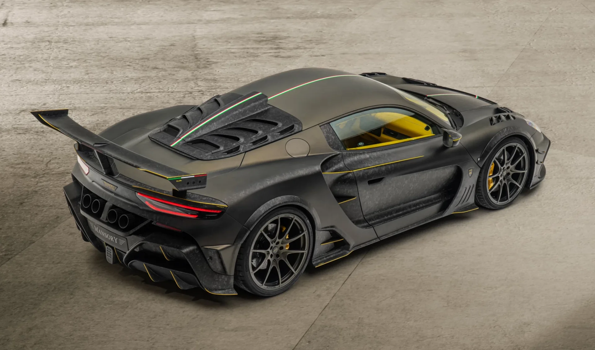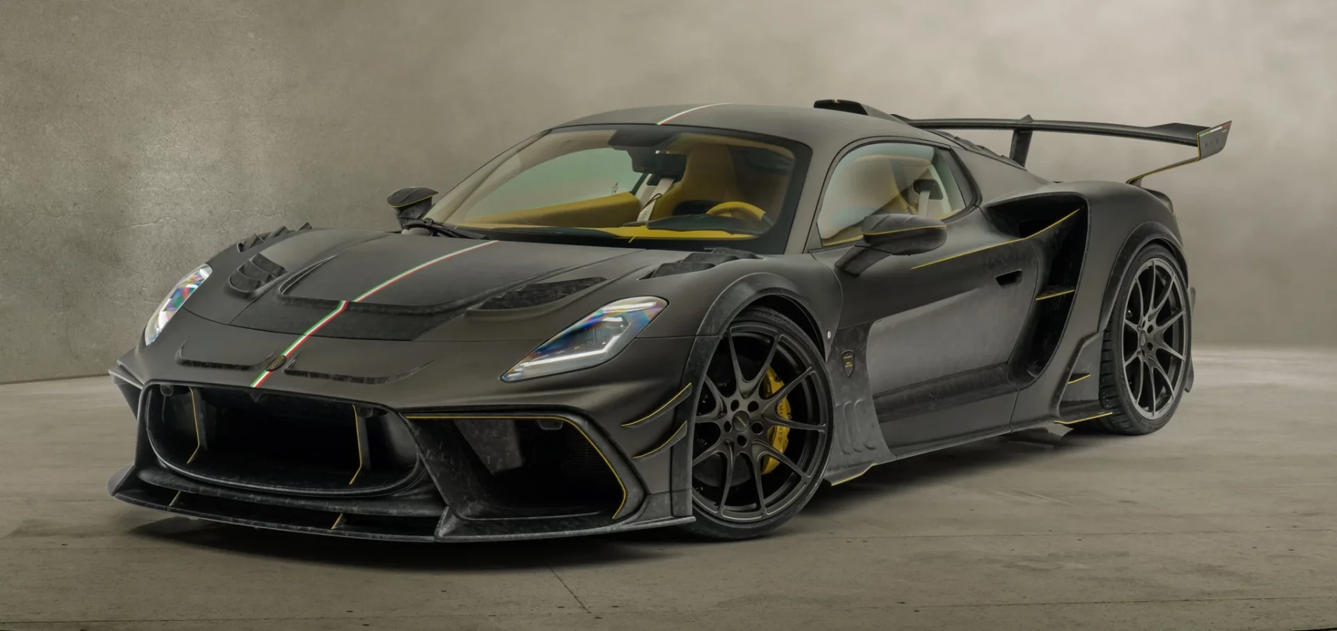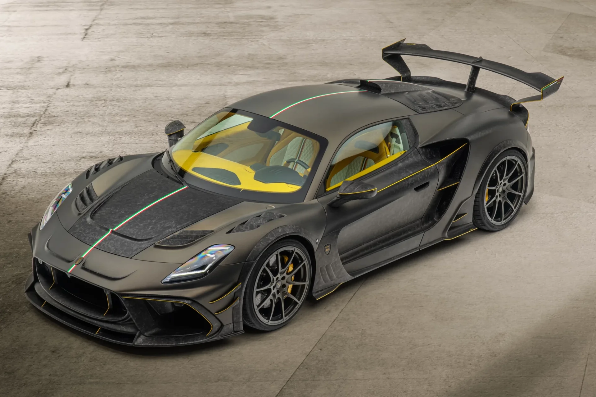 สำหรับห้องโดยสารทาง Mansory มอบอิสระให้คุณทั้งวัสดุสีสันต่างๆ คุณสามารถเลือกเองได้หมด อย่างคันในรูปเน้นวัสดุหนังแท้เป็นหลักมาในโทนสีเหลือง ขาว ดำ พร้อมคาดเส้นธงชาติอิตาลีบน Paddle Shift, พวงมาลัย และตัวเบาะนั่ง