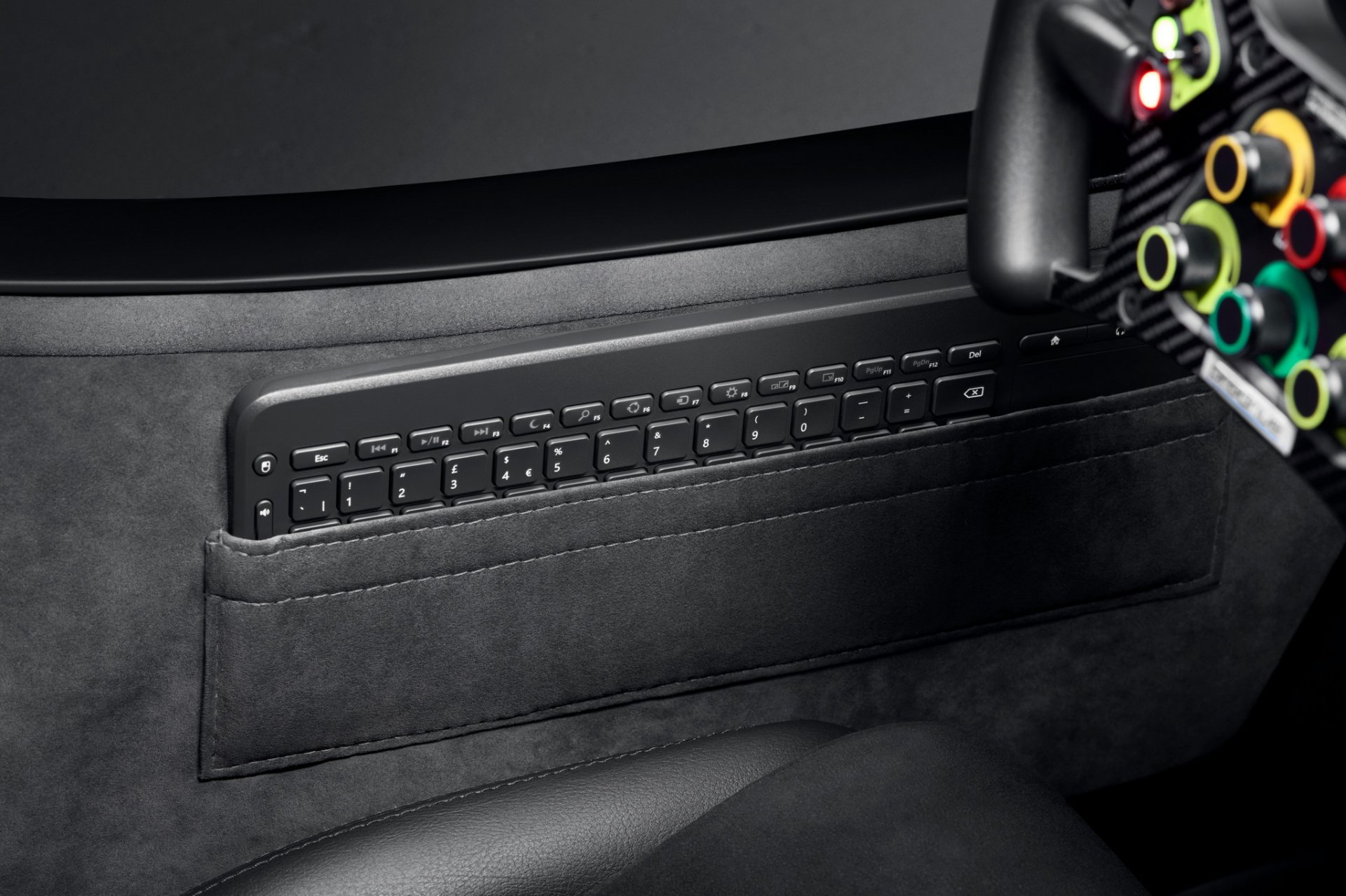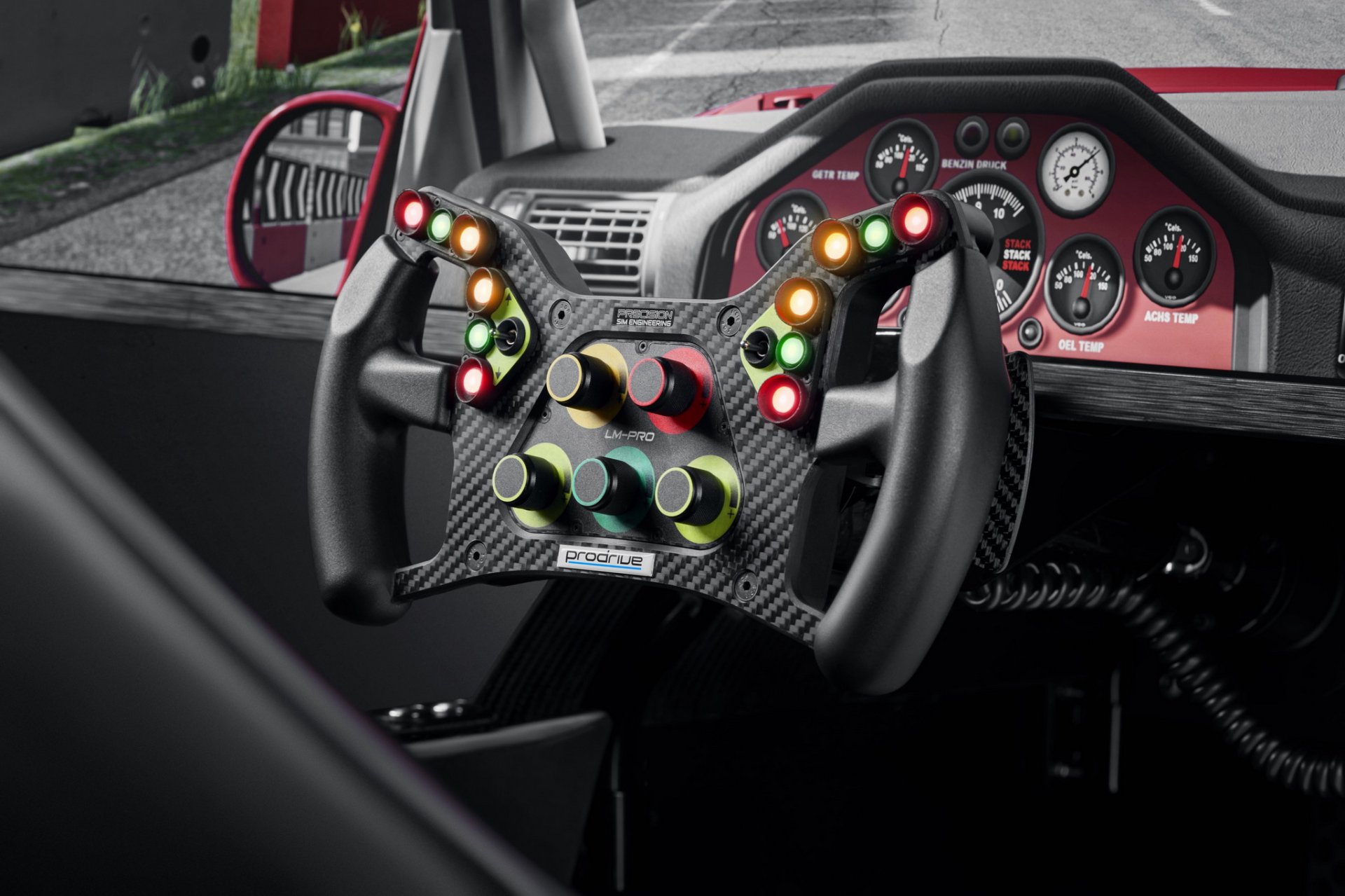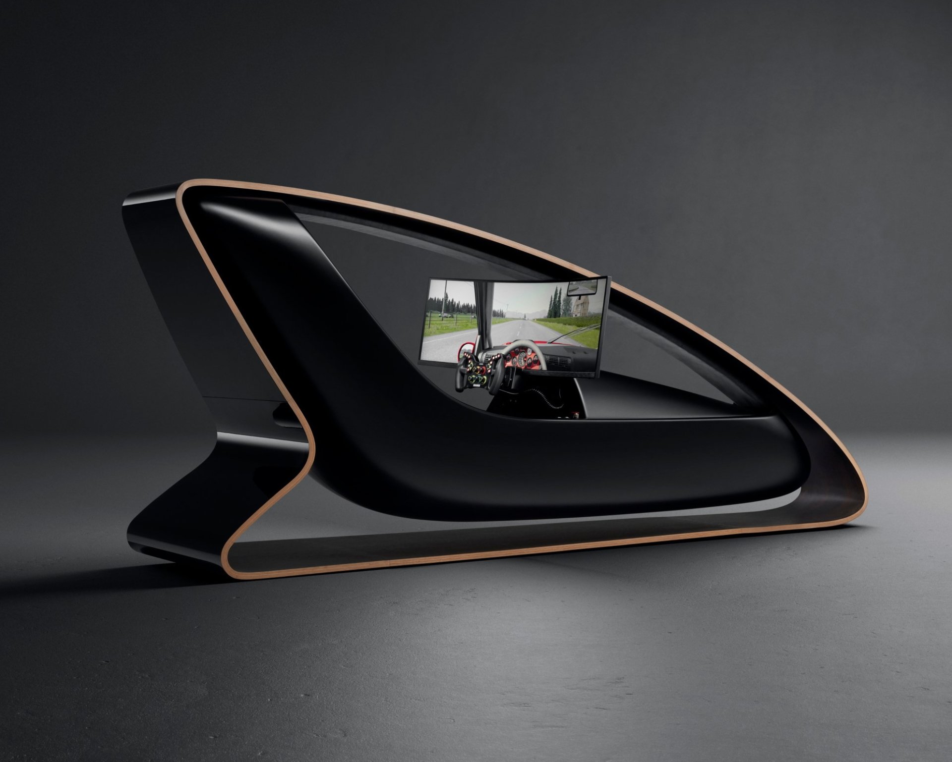 นี่คือ Prodrive Racing Simulator เครื่องเล่นเกมรถแข่ง Simulator ระดับหรู มีขนาดยาว 3.30 เมตร กว้าง 1.23 เมตร (รวมหน้าจอ) และสูง 1.35 เมตร มันถูกดีไซน์ให้มีความหรูหราเสมือนเฟอร์นิเจอร์ในบ้าน ส่วนนอกที่ดูโค้งมนทำจากไม้เบิร์ชหนา 16 ชั้น พร้อมเคลือบด้วยแลคเกอร์สีดำเงา ซึ่งยึดติดกับโครงสร้างโมโนค็อกคาร์บอนไฟเบอร์ทำให้เหมือนเรานั่งลอยอยู่ในอากาศ เบาะนั่ง Cobra Nogaro หุ้มหนังแท้สลับ Dinamica ผ้าคล้ายหนังกลับ หน้าจอโค้งของ AOC ขนาด 49 นิ้ว ความละเอียด 5 K อัตรารีเฟรชเรท 165Hz พวงมาลัยรุ่น LM-Pro จาก Precision Sim Engineering แบ่งเป็นปุ่มหมุน 5 ปุ่ม แบบปุ่มกด 12 ปุ่ม และแบบก้านโยก 2 ปุ่ม พร้อมแป้นเปลี่ยนเกียร์คาร์บอนไฟเบอร์