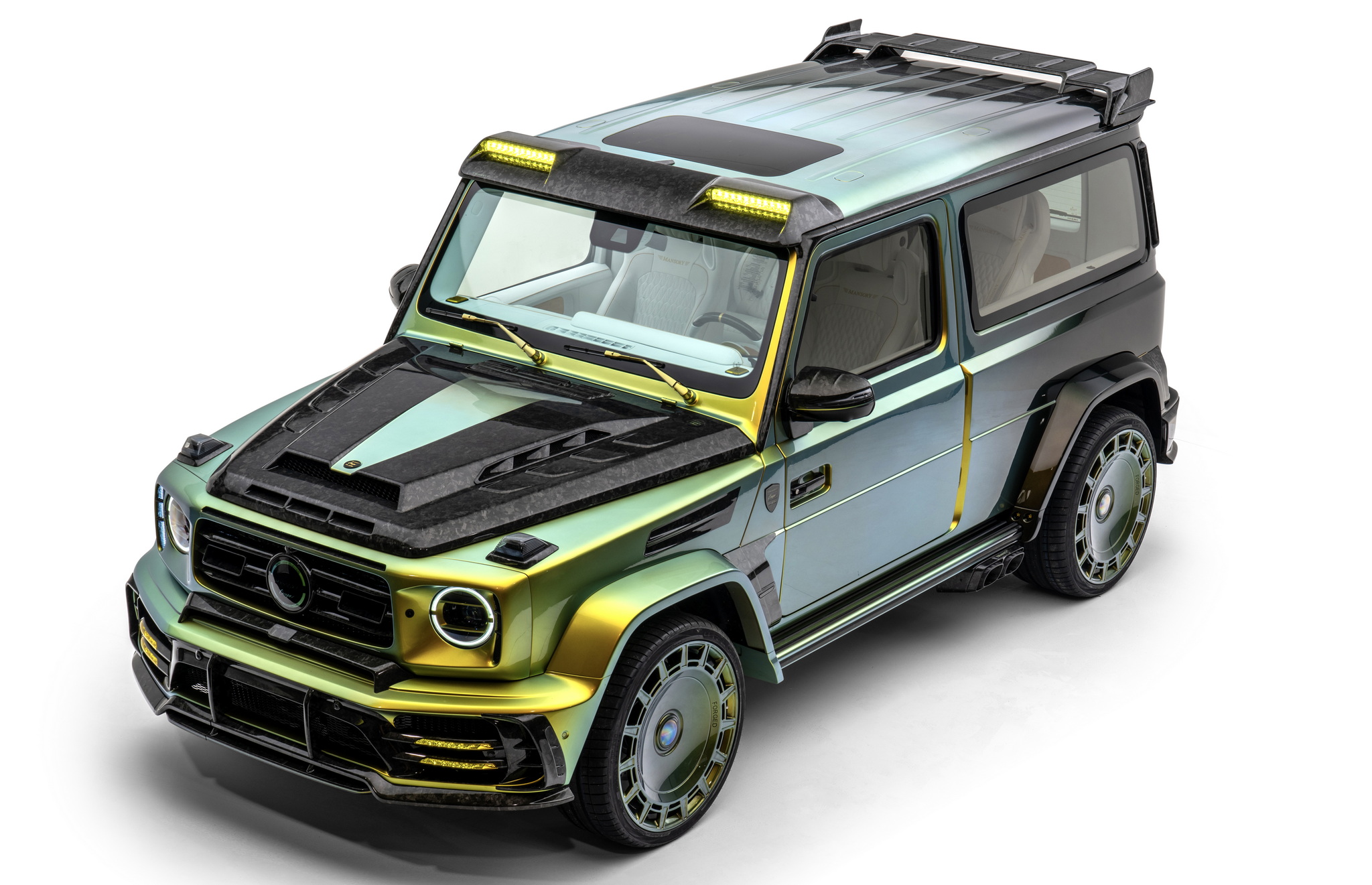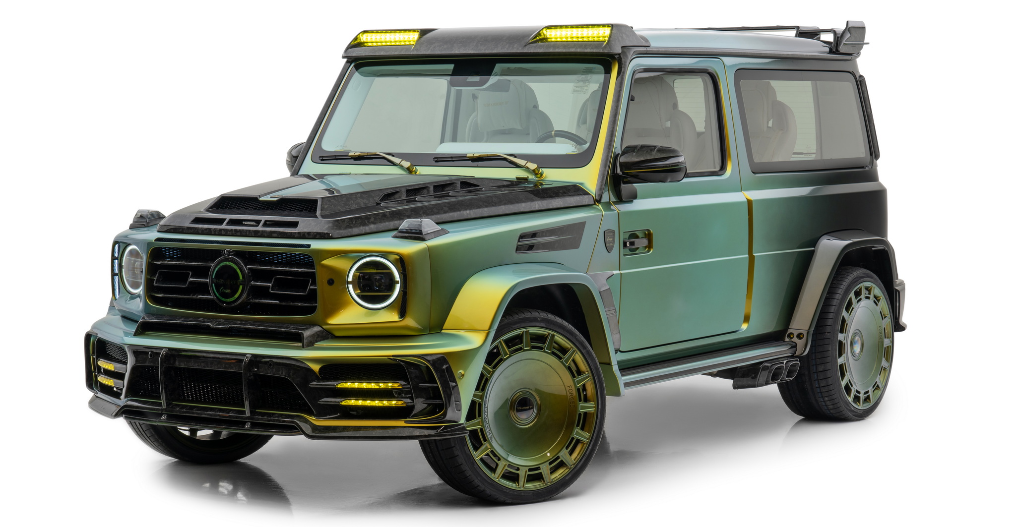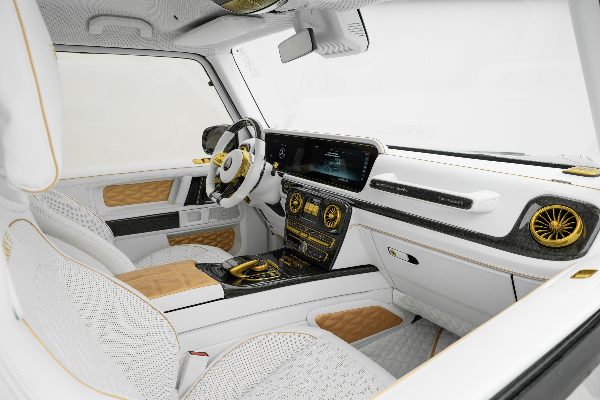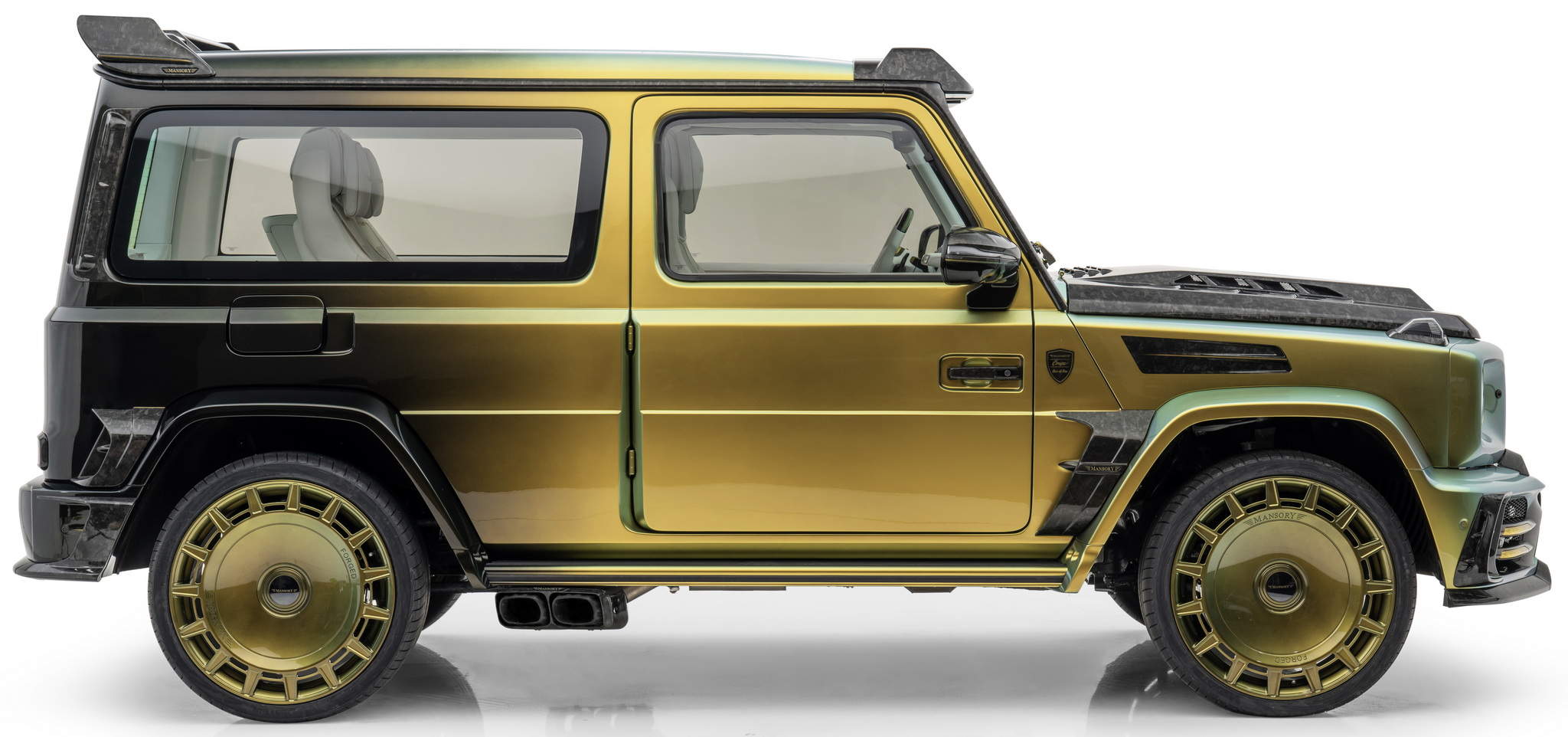 นี่คือ Mansory Gronos Coupé EVO C ที่เป็นการจับ G63 สี่ประตูมาทำเป็นรถคูเป้ รถหนึ่งคันจะใช้เวลาสร้างประมาณหนึ่งปีครึ่ง แต่ละคันสั่งพิเศษตามลูกค้าแต่ละราย ตัวรถถูกรื้อประตูทั้งสี่บานออก ย้ายจุดยึดประตูจากเสา A ไป B ประตูเปิดแบบใหม่อารมณ์รถ Rolls-Royce ด้วยประตูหลังที่หายไปช่วยให้ติดตั้งบานกระจกยาวเต็มพื้นที่ทำให้ห้องโดยสารด้านหลังดูโปร่งขึ้นไปอีก ตัวถังภายนอกมากับสีโครมพิเศษ รอบคันจัดหนักด้วยชุดแต่งสุดอลังรอบคัน ล้อเป็นรุ่นใหม่ FD.15 ขอบ 24 นิ้ว ทั้งสี่ล้อ และท่อไอเสียชุดใหม่ออกข้างรถเช่นเคย