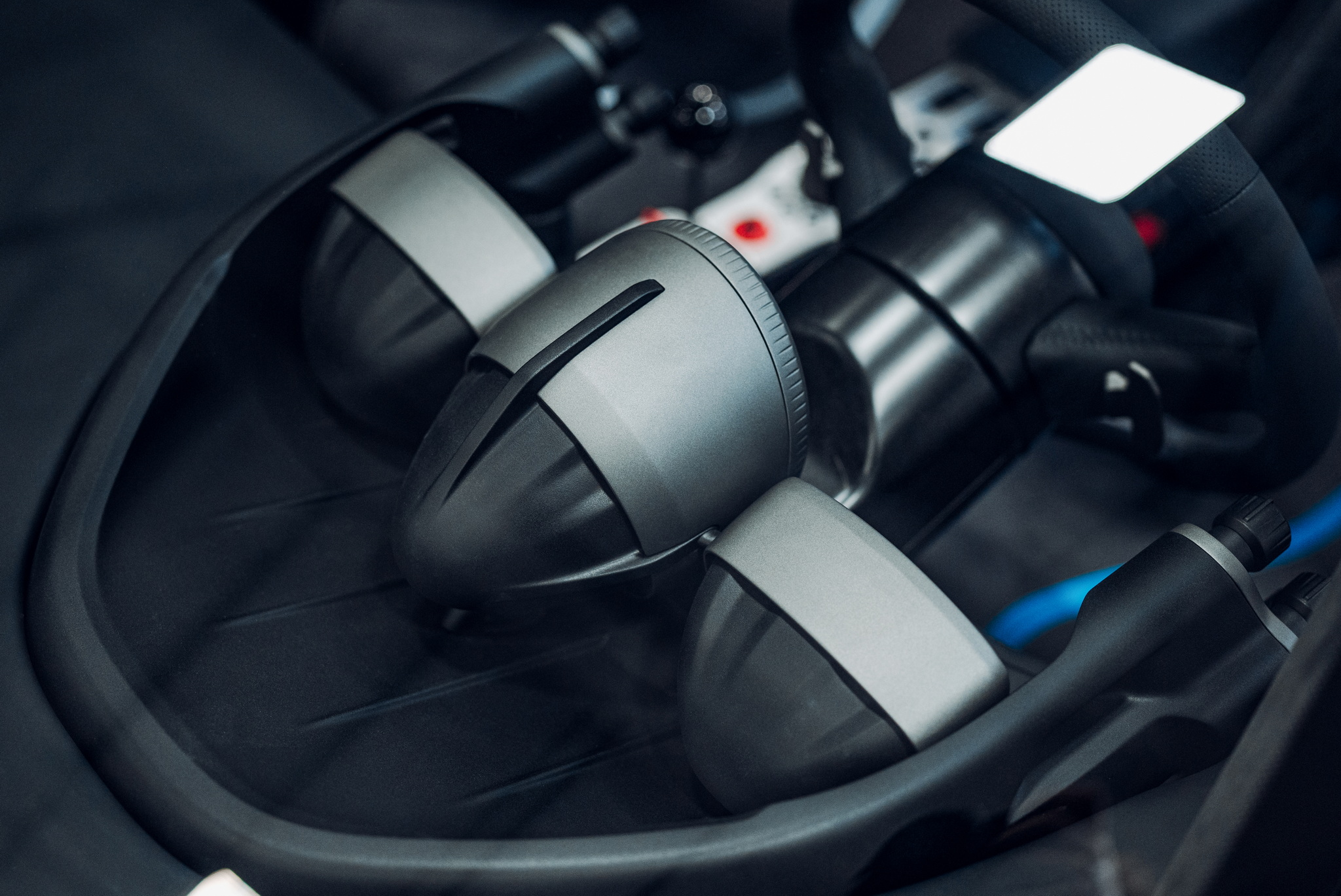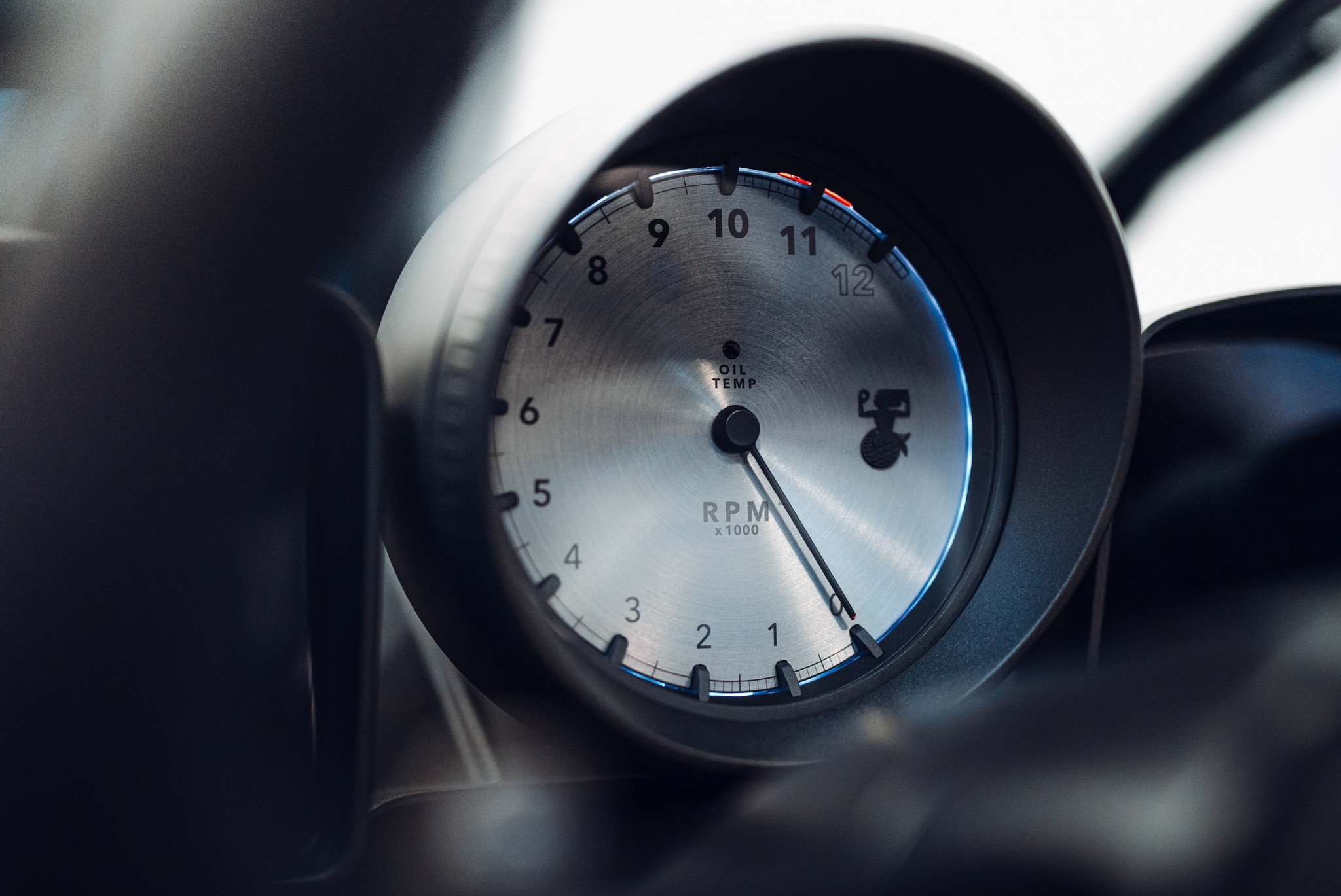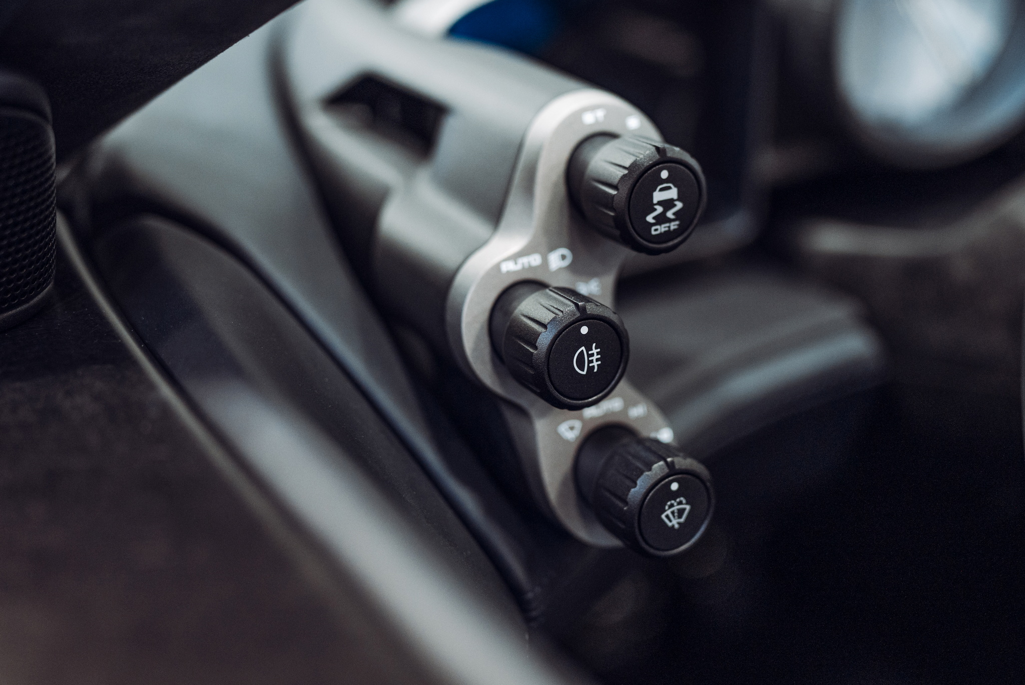 ภายในห้องโดยสารจะเน้นความเรียบง่ายมุ่งเน้นโฟกัสการขับขี่ เบาะนั่งคาร์บอนไฟเบอร์เน้นเบา พวงมาลัยมาในขนาดกระทัดรัด 350 มม. แป้นที่เหมือน Paddle Shift กลายเป็นแป้นไว้เปิดไฟสูงและแตร หน้าปัดให้เข็มวัดรอบขนาด 120 มม. ขนาบข้างด้วยจอดิจิตอล จอซ้ายแสดงข้อมูลต่างๆ ตัวรถ จอขวาเป็นอินโฟเทนเมนท์ความบันเทิงต่างๆ ส่วนที่เป็นลูกบิดจะแบ่งแยกชัดเจนฝั่งขวาเอาไว้ปรับระบบปรับอากาศ ฝั่งซ้ายไว้ปรับไฟหน้า, ที่ปัดน้ำฝน และปรับโหมดการขับขี่