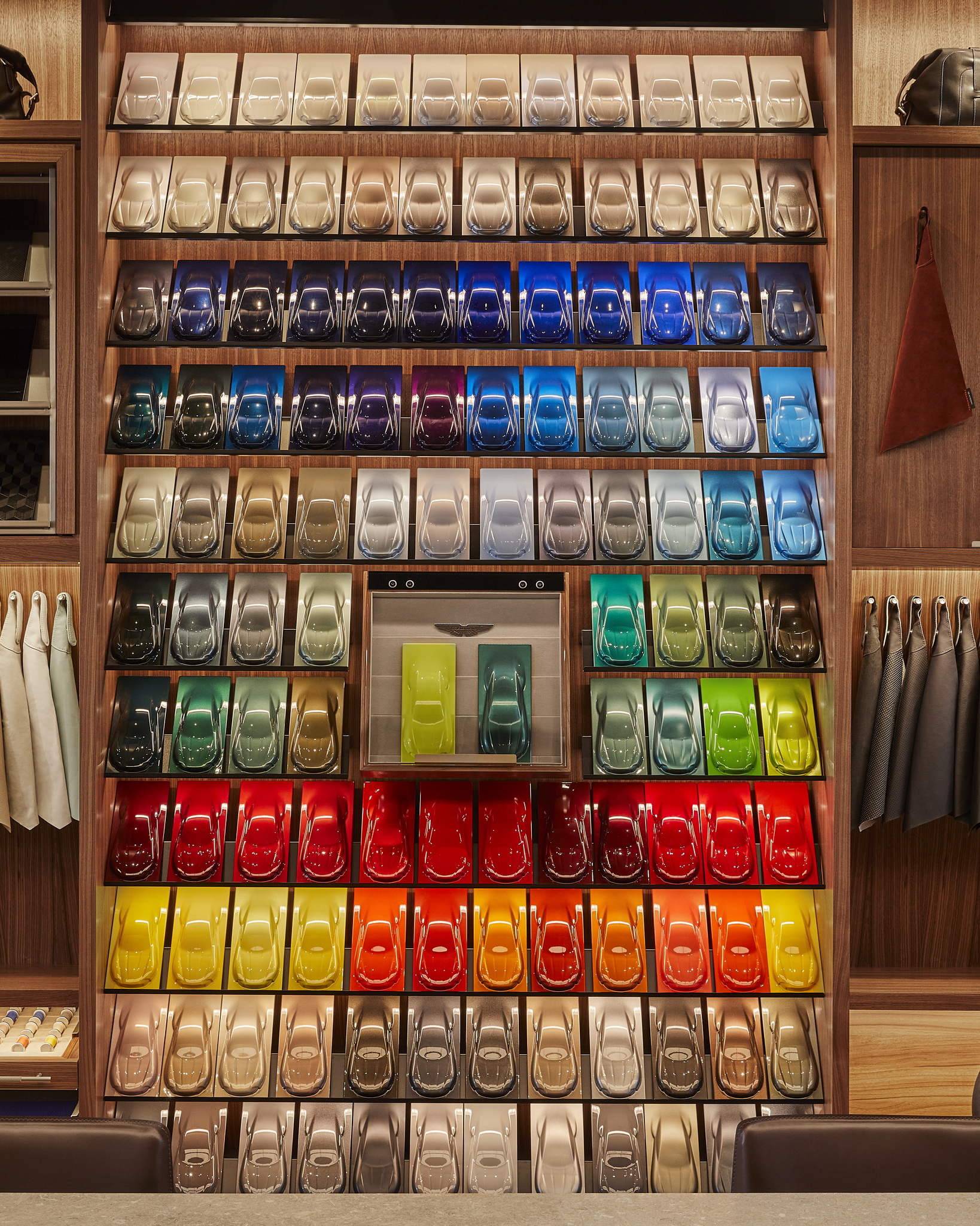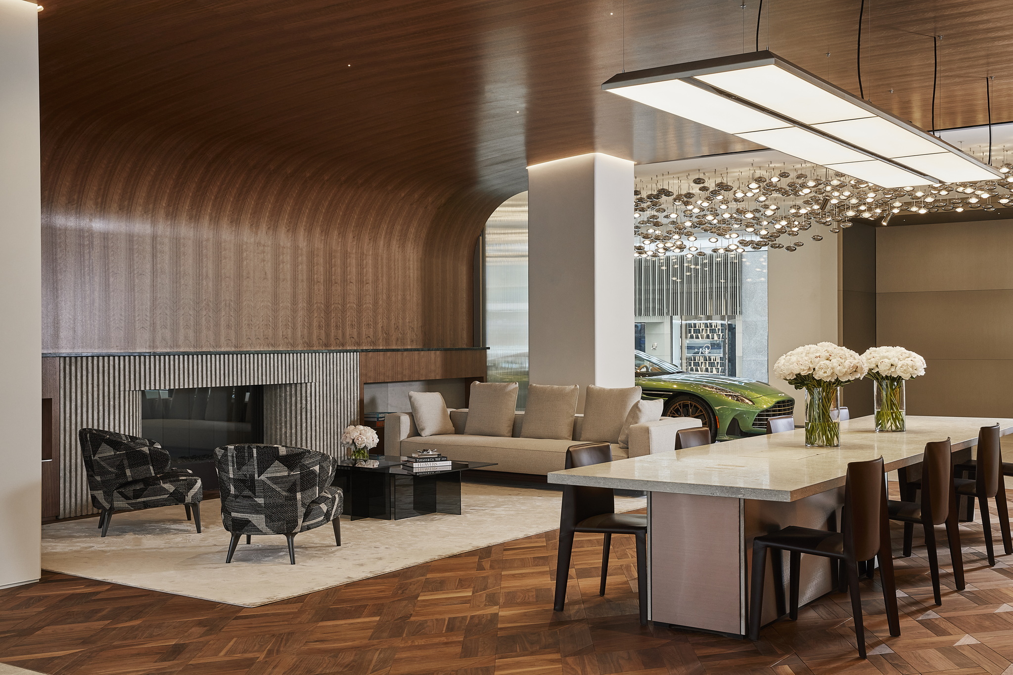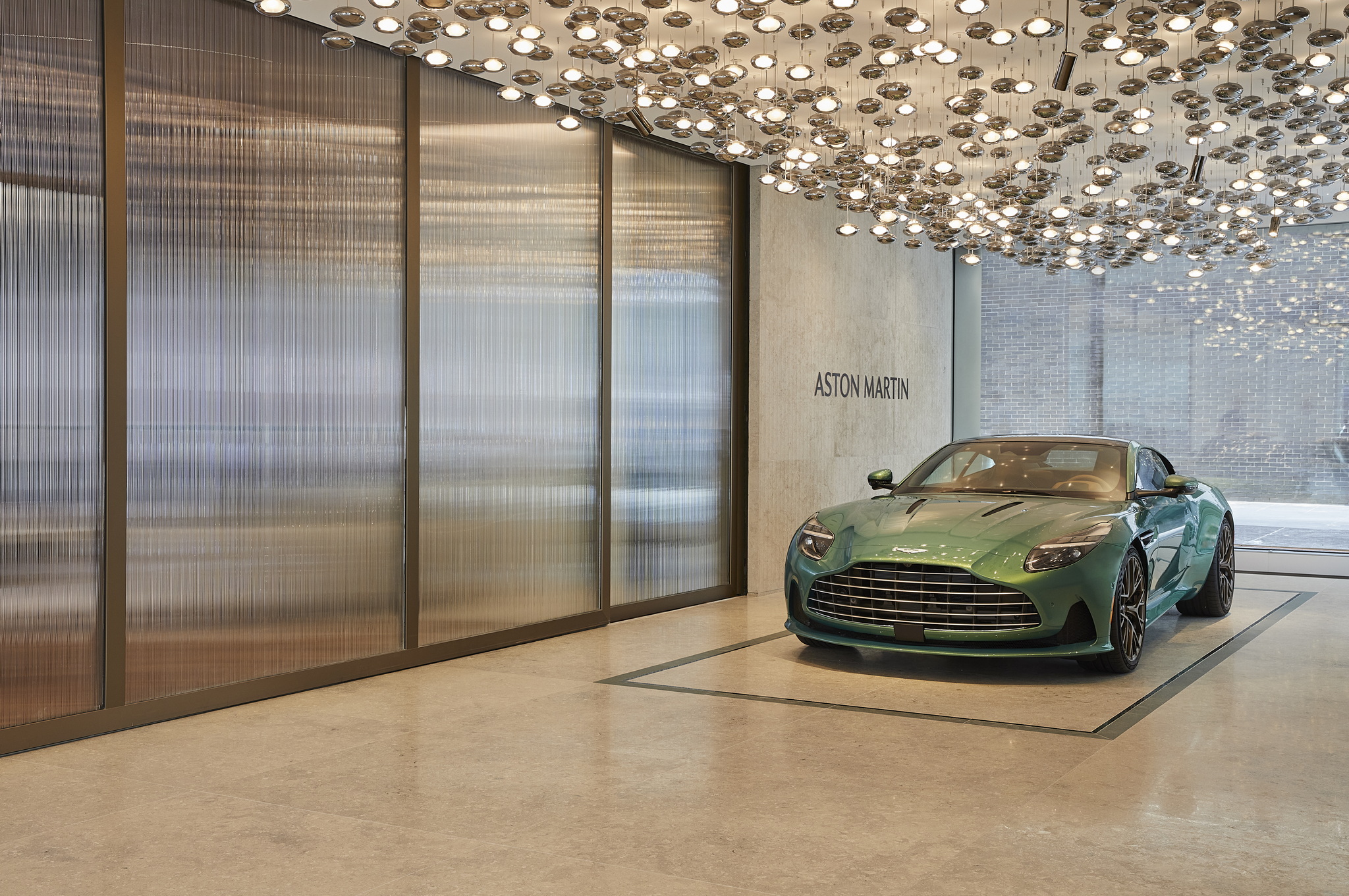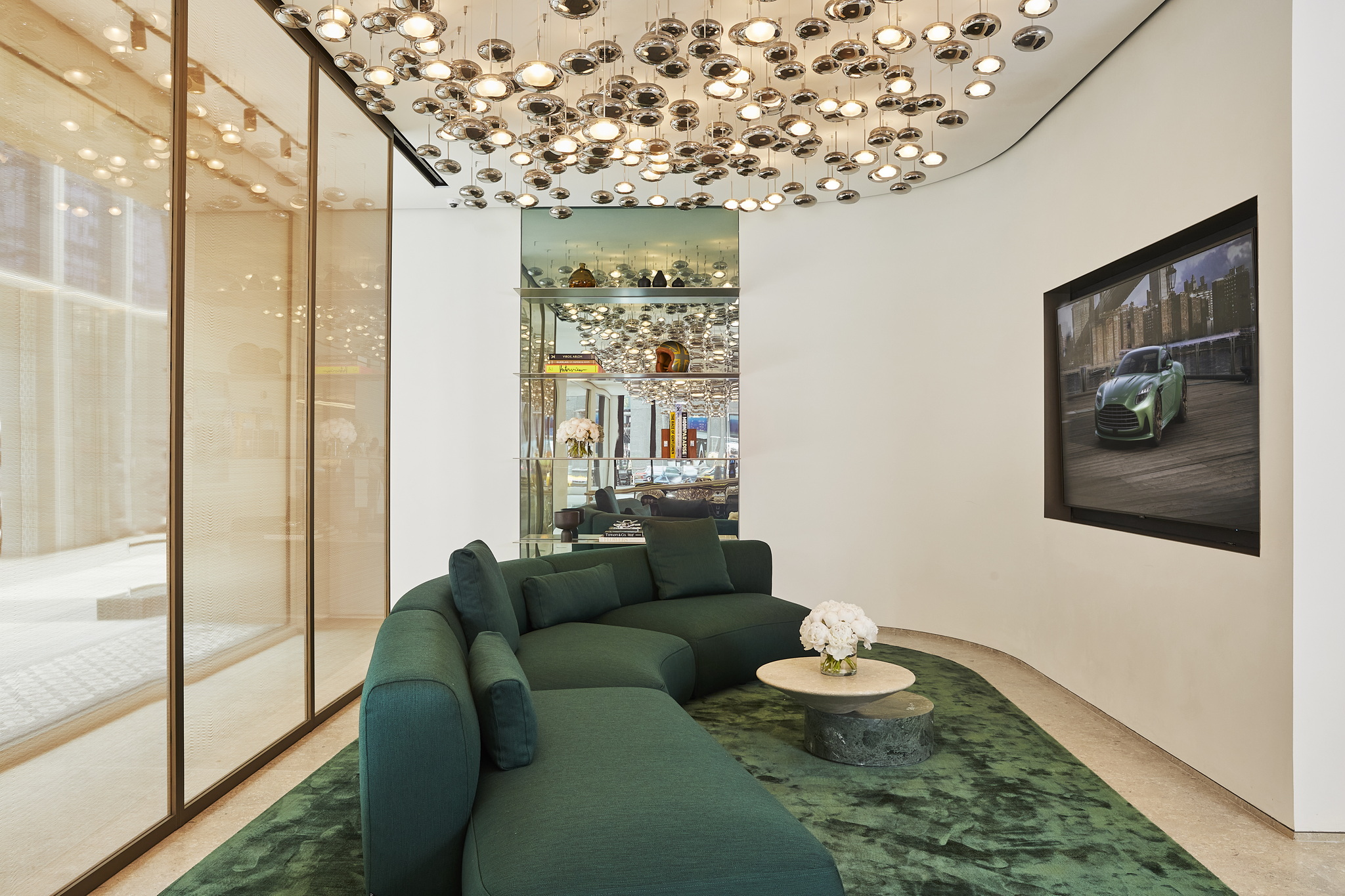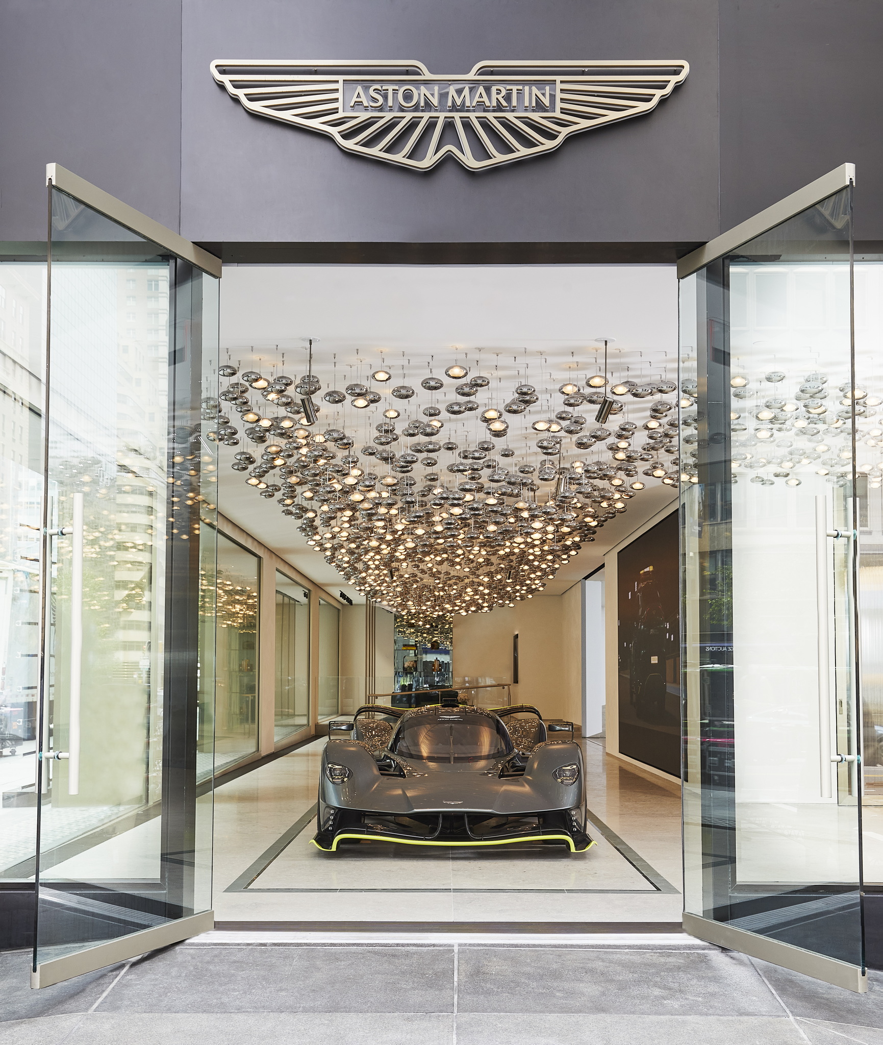 Q New York ตั้งอยู่ในอาคาร 450 Park Avenue แลนด์มาร์กแห่งแรกที่จะมอบประสบการณ์พิเศษ ภายนอกอาคารติดตั้งบานกระจกแบบชิ้นเดียวขนาดใหญ่ ด้านในตกแต่งหรูหราติดตั้งโคมระย้าที่ใช้ไฟถึง 2,100 ดวง ยาวกว่า 40 เมตร เป็นจุดซึ่งโชว์รถรุ่นล่าสุดอย่าง DB12 ตัวโหดอย่าง Valkyrie AMR Pro และรุ่นพิเศษอื่นๆ ห้องสำหรับปรับแต่งรถลูกค้าก็หรูจัดเต็ม มีสี วัสดุหนัง ให้เลือกมากมาย มีโซฟาให้นั่งเล่น โต๊ะรับประทานอาหารขนาดใหญ่ ลูกค้าสามารถเห็นรถในขนาดเท่าของจริงด้วยจอ LED ขนาด 10.5 เมตร x 3.5 เมตร