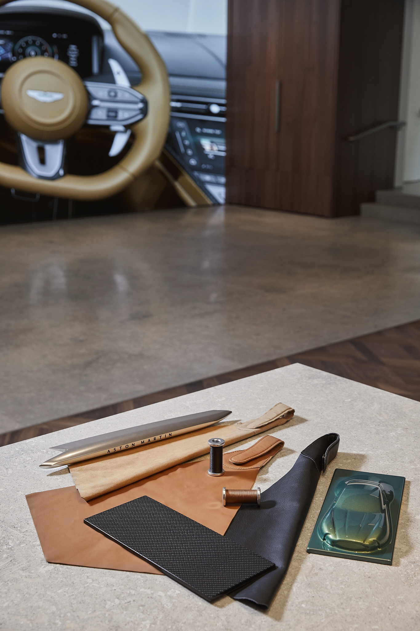 นอกจากนี้ยังมีการใช้เทคโนโลยี Near-Field Communication (NFC) ช่วยอำนวยความสะดวกในการให้บริการข้อมูลจำเพาะของลูกค้าได้ง่ายขึ้น และสามารถลิงก์วิดีโอสดจากแมนฮัตตันไปยังสตูดิโอออกแบบของ Aston Martin ในเกย์ดอน สหราชอาณาจักร ประสานงานกันได้โดยตรงกับทีม Q by Aston Martin