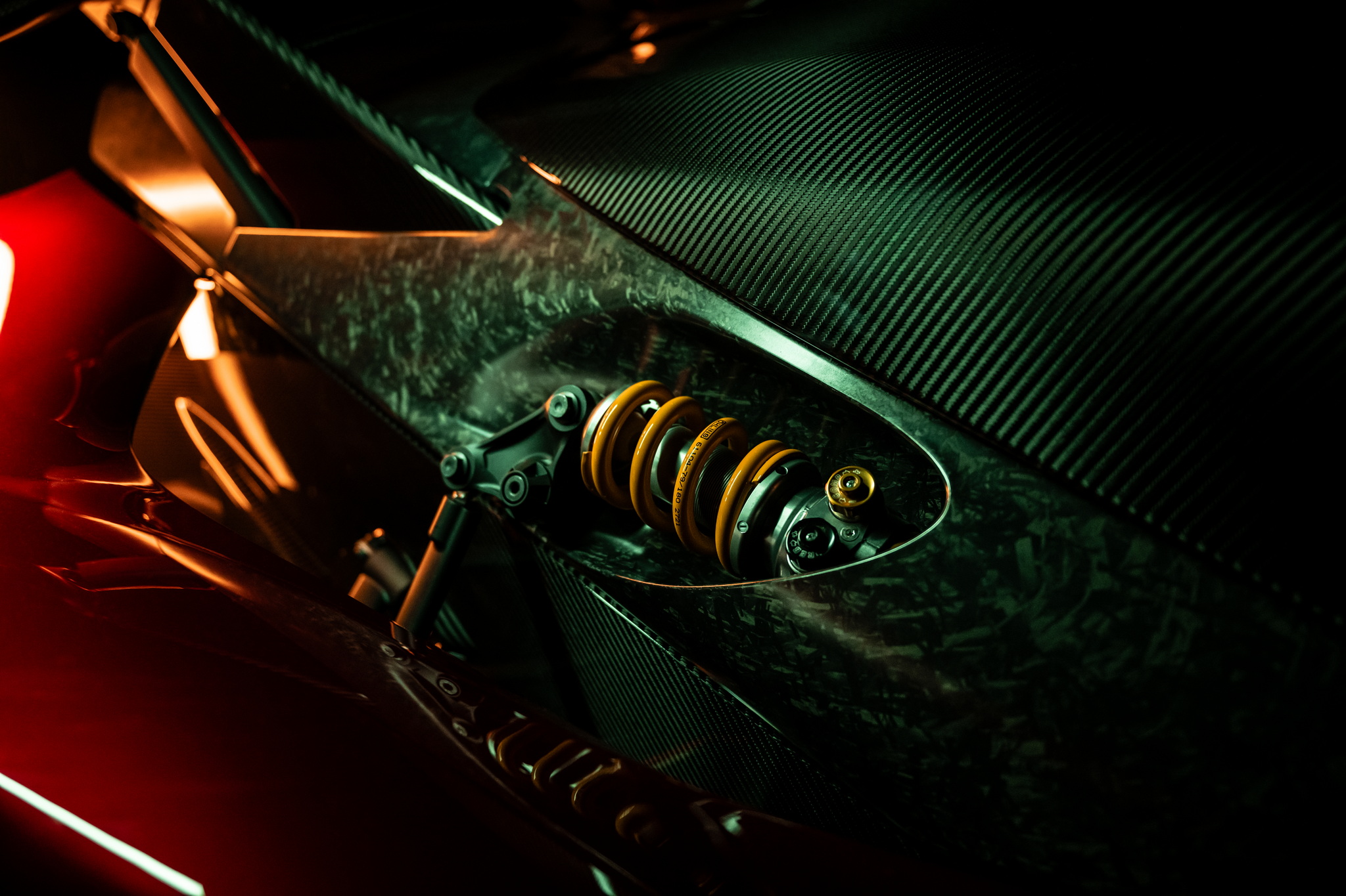 ระบบกันสะเทือนแบบสั่งทำพิเศษด้านหน้าเป็น Pushrod ด้านหลังเป็น Double Wishbones พร้อมสปริงแบบแอคทีฟ เบรกเป็นคาร์บอนเซรามิค ล้อแม็กนีเซียม Center Lock หน้า 20 นิ้ว หลัง 21 นิ้ว คู่กับยาง Michelin Pilot Sport Cup 2 หรือ Cup 2R