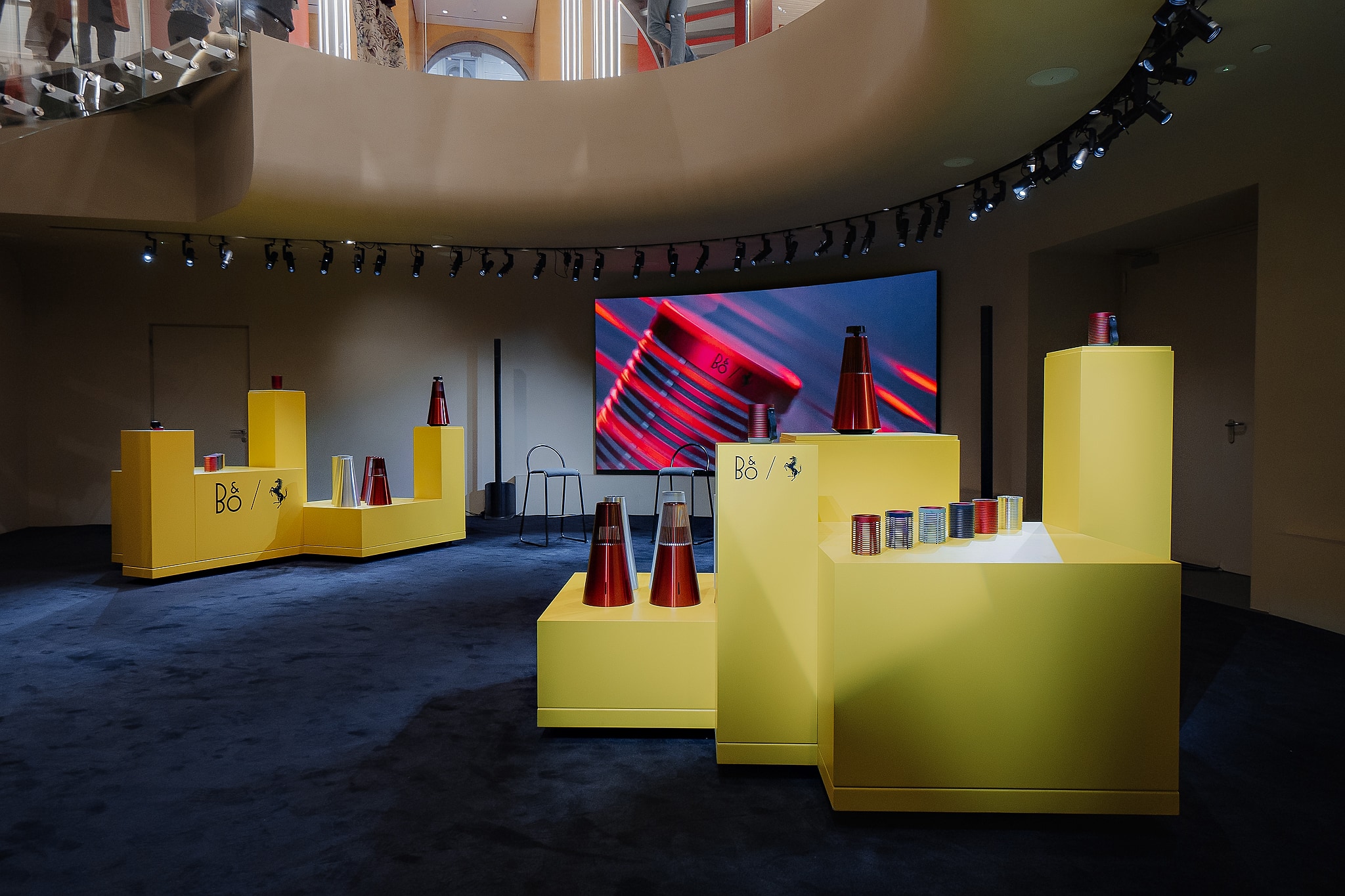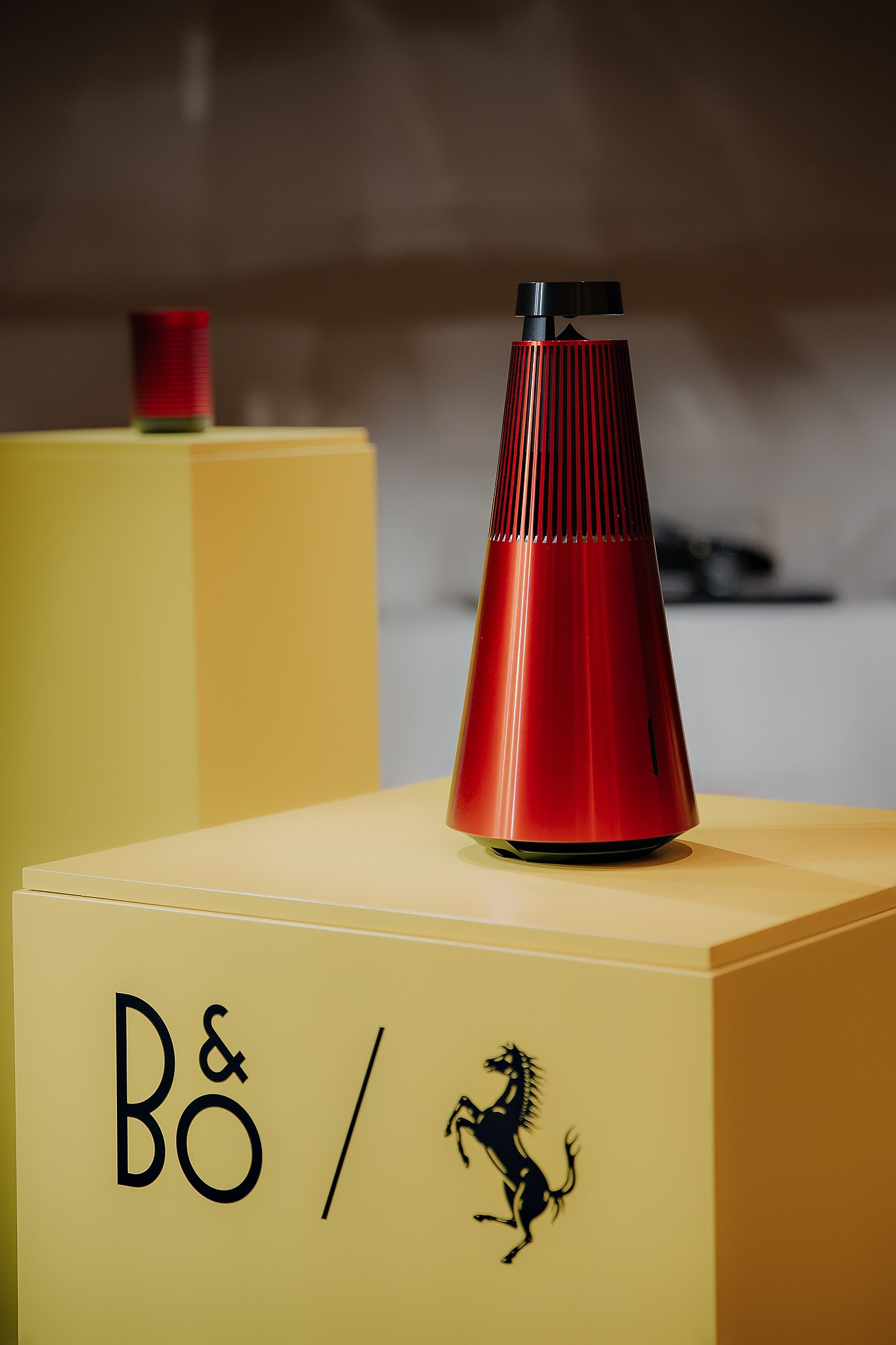 Bang & Olufsen (B&O) แบรนด์เครื่องเสียงระดับ High-end จากเดนมาร์ก ตั้งแต่ปี 1925 โดย Peter Bang และ Svend Olufsen ซึ่งให้คุณภาพเสียงระดับสูงพร้อมกับดีไซน์สวยงามมีระดับ ปัจจุบันมีสินค้าที่หลากหลายให้เลือก โดย 4 ผลิตภัณฑ์ที่มาร่วมมือกับ Ferrari จะมาในสีแดงและโลโก้ม้าลำพอง
