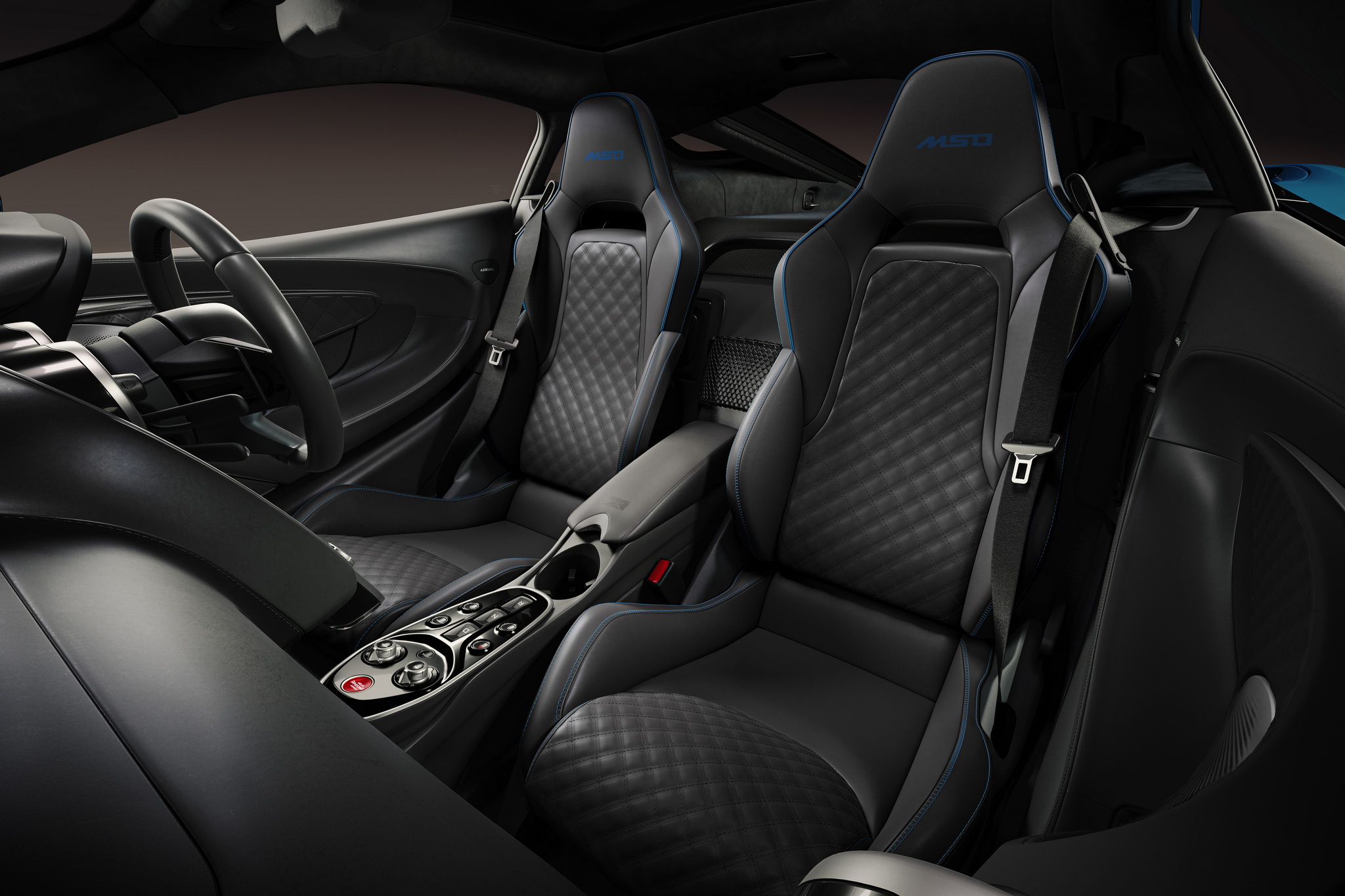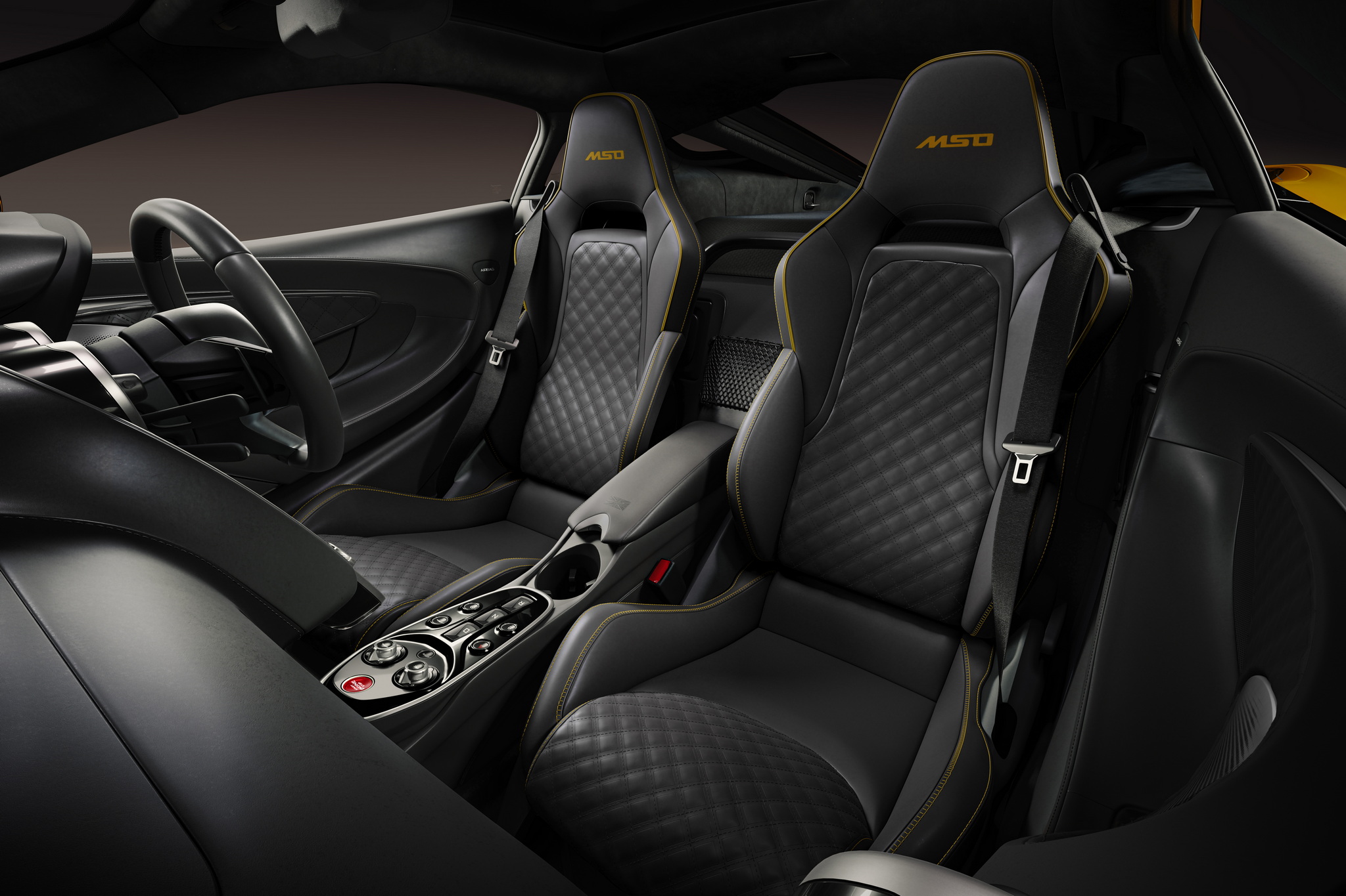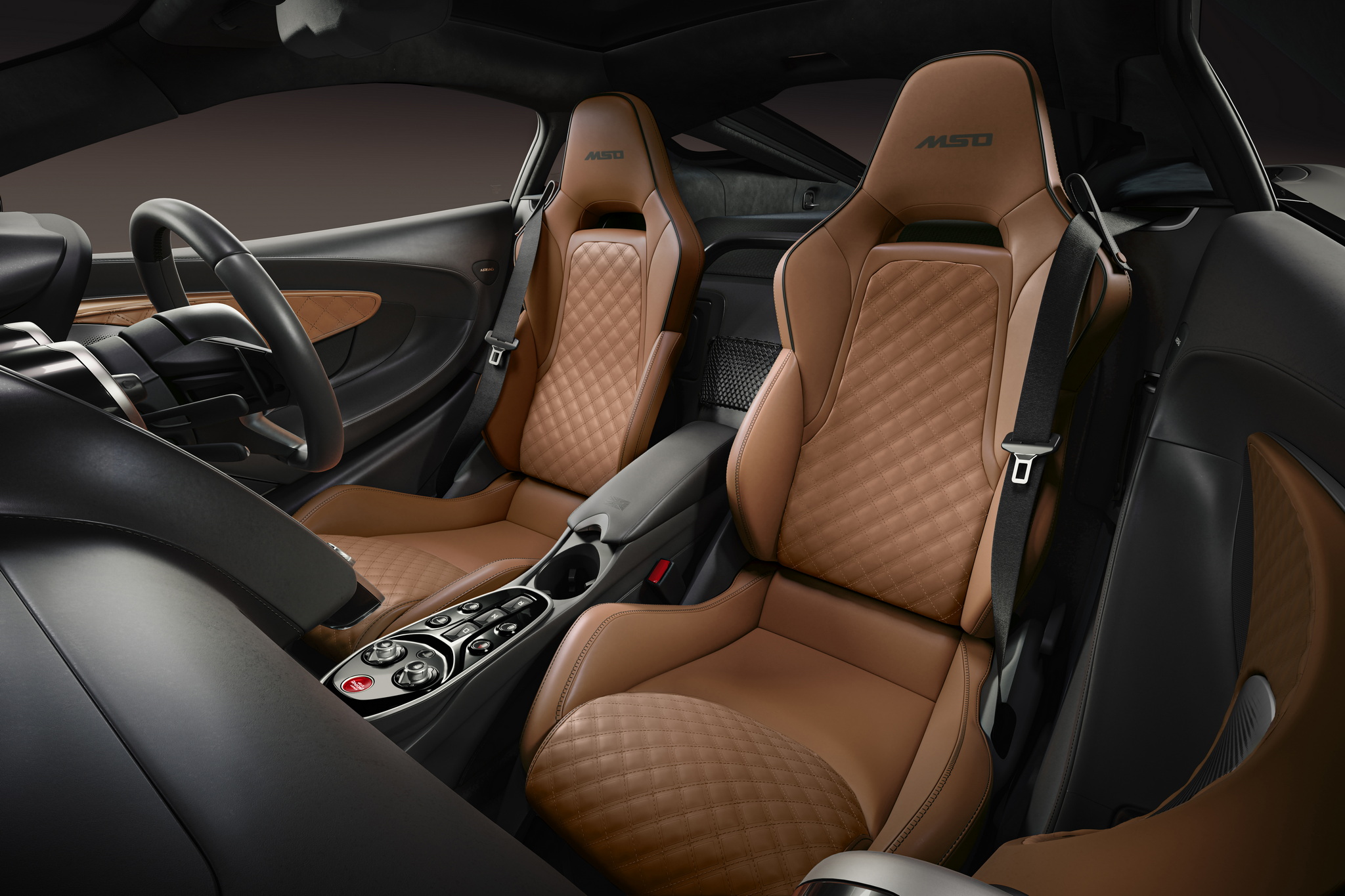 ภายในห้องโดยสารเน้นความหรูหราด้วยวัสดุหนังแท้ทั้งหมด ตัวเบาะนั่งพิเศษด้วยโลโก้ MSO บนพนักศรีษะ พร้อมลวดลายงานเย็บสี่เหลี่ยมเพชร พนักวางแขนกลางเพิ่มลายนูนธงชาติอังกฤษ