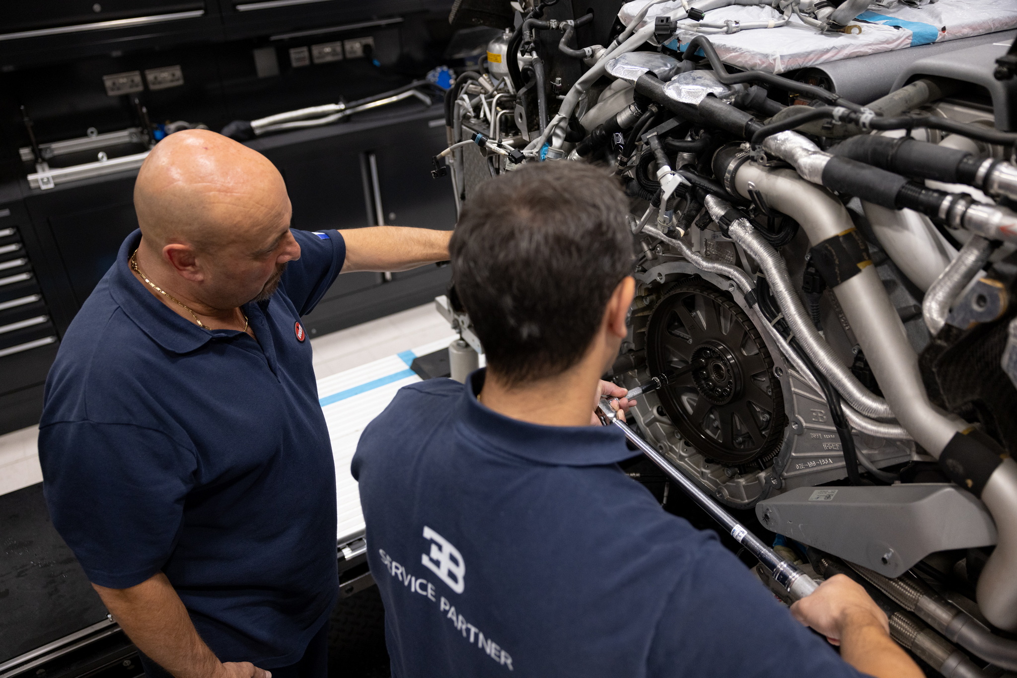 ช่างเทคนิคทุกคนที่นี่ได้รับการฝึกอบรมโดยตรงจากสำนักงานใหญ่ของบูกัตติในเมืองโมลไซม์ ฝรั่งเศส หลายคนมีประสบการณ์มากว่า 10 ปี มั่นใจได้ว่า Bugatti ทุกคันจะได้รับการบำรุงรักษาและซ่อมแซ่มอย่างดีที่สุด Alexis Ploix ผู้อำนวยการฝ่ายบริการหลังการขายและบริการลูกค้าของ Bugatti กล่าวว่าโรงงานในลอนดอนสอดคล้องกับความมุ่งมั่นของ Bugatti ที่จะมอบประสบการณ์การบริการที่ดีที่สุดแก่ลูกค้า