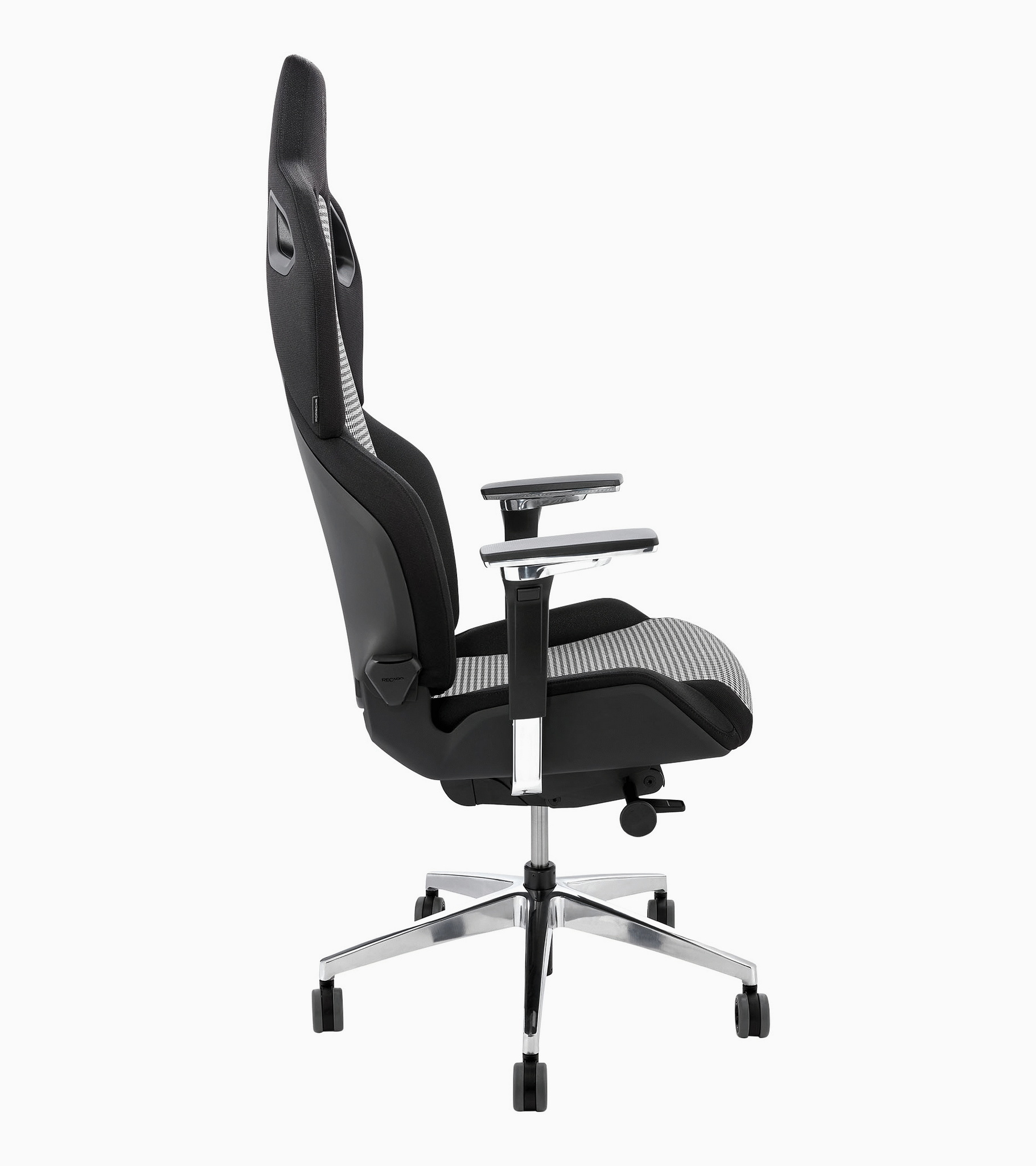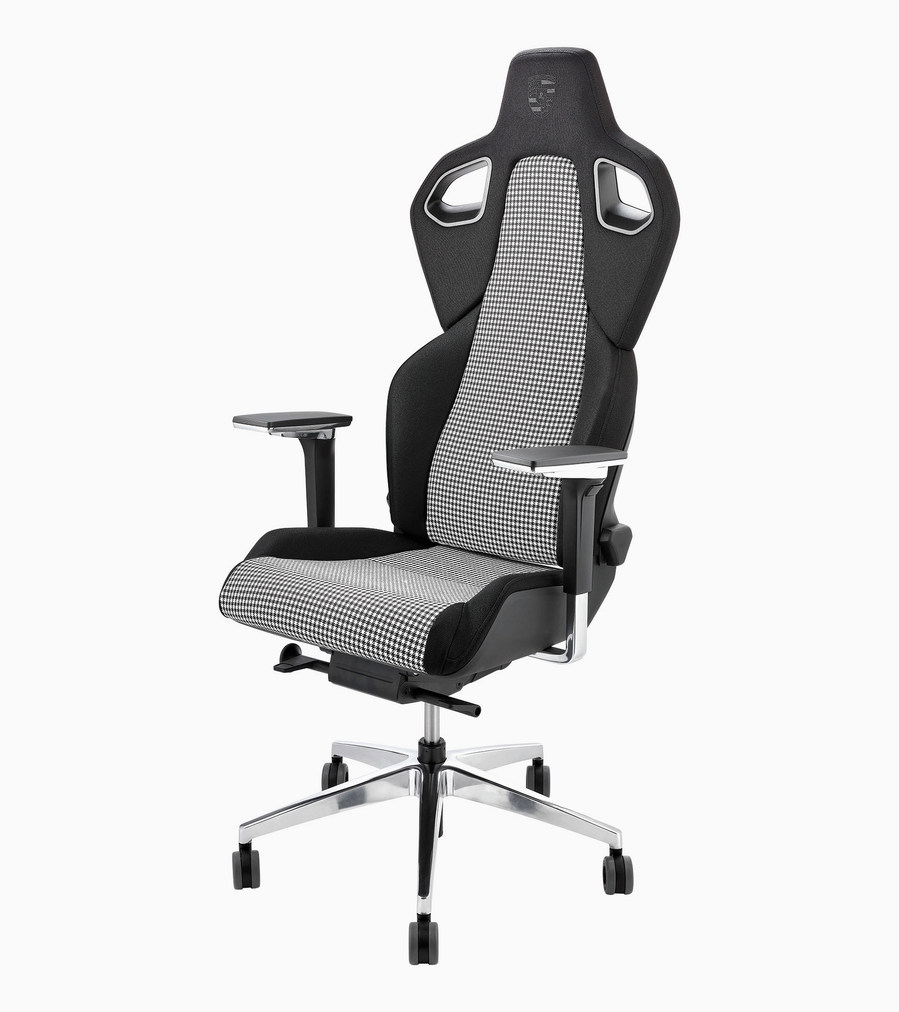 RECARO x Porsche Gaming Chair Pepita เก้าอี้เกมมิ่งรุ่นพิเศษจาก Porsche ร่วมกับ RECARO โดดเด่นที่ส่วนกลางเบาะเป็นวัสดุผ้าลาย Peptia (Houndstooth) หรือ “เขี้ยวสุนัข” แบบเดียวกับเบาะ Porsche 911 ช่วงปี 1963-1973 รอบนอกเป็นวัสดุผ้าสีดำ พนักพิงศรีษะส่วนหน้าปักโลโก้ Porsche Crest ส่วนหลังเก้าอี้จะปักโลโก้ Recaro สีขาวโดดเด่น โครงสร้างรับน้ำหนักได้สูงสุด 150 กก. เบาะนั่งออกแบบตามหลักสรีรศาสตร์ใช้โฟมหุ้มเบาะคุณภาพสูงและผ้าระบายได้ดี เบาะนั่งและพนักพิงหลังสามารถปรับระดับได้ พนักวางแขนปรับได้แบบ 5D รองรับด้วยวัสดุอลูมิเนียม ฐานล้อทำจากอลูมิเนียมน้ำหนักเบา ลูกล้อเสริมโคโพลีเมอร์ใช้ได้กับทุกพื้นผิว