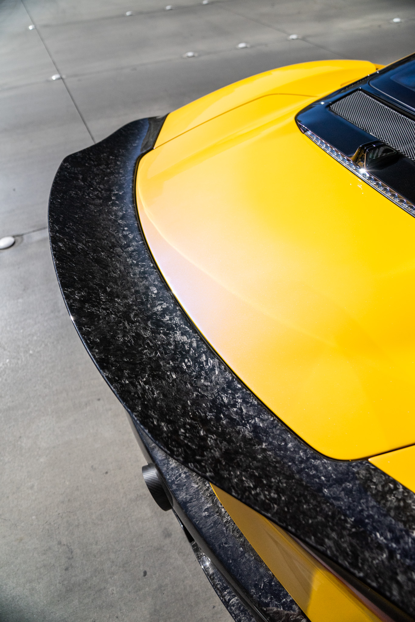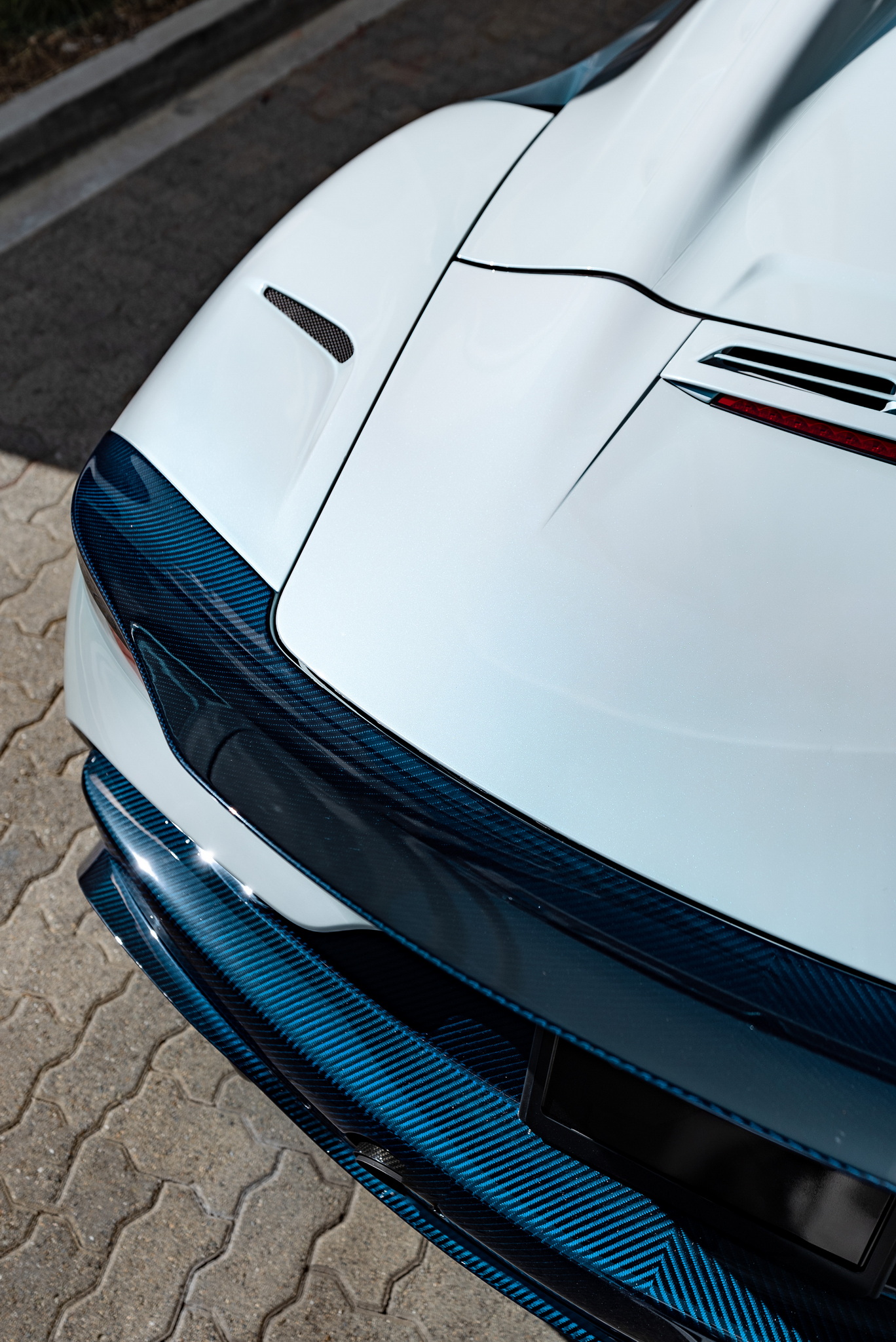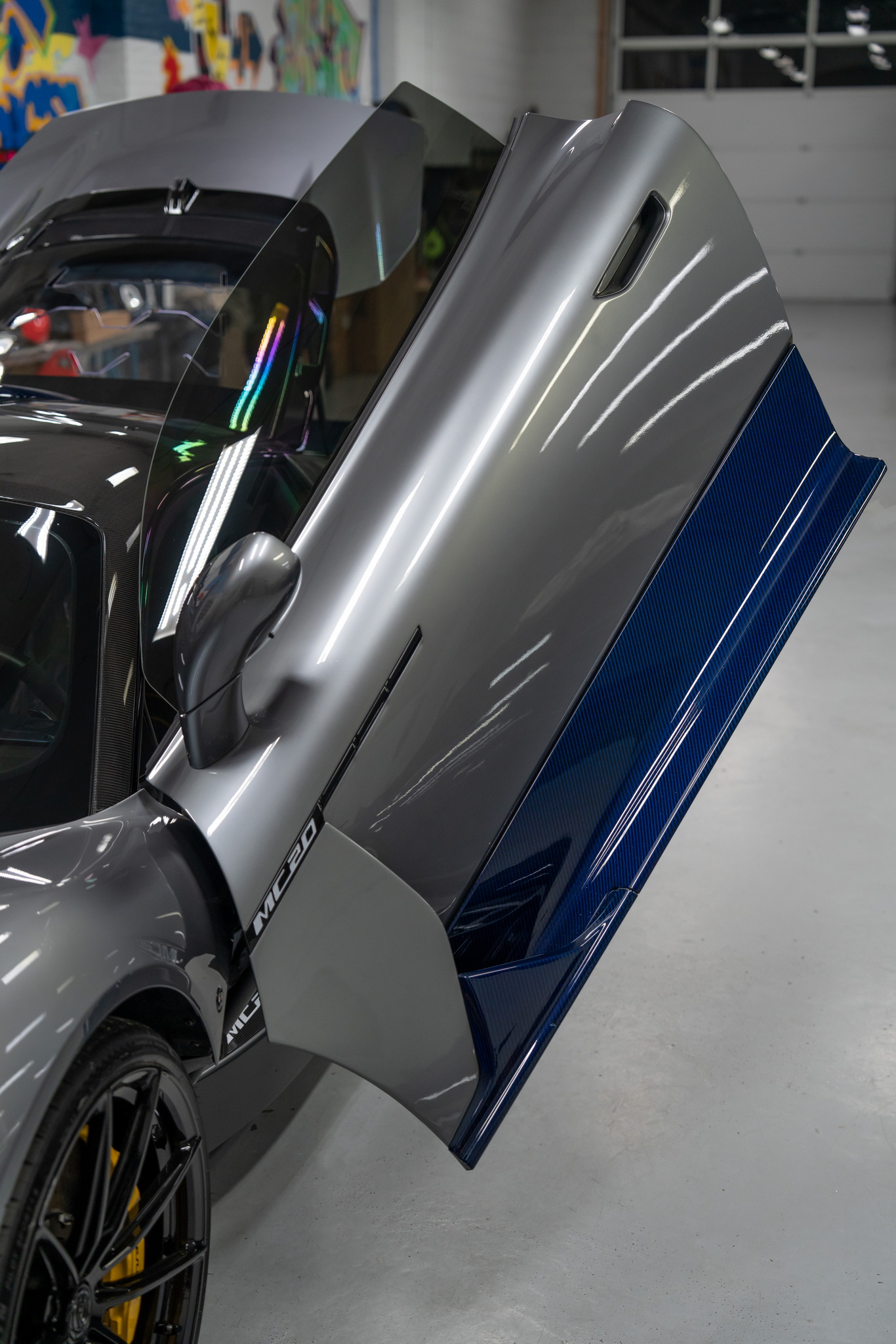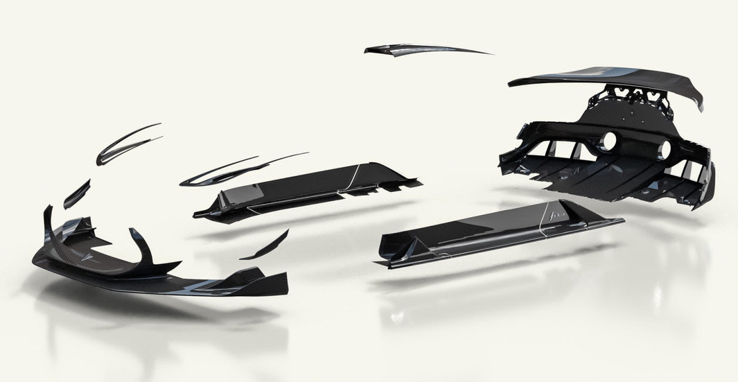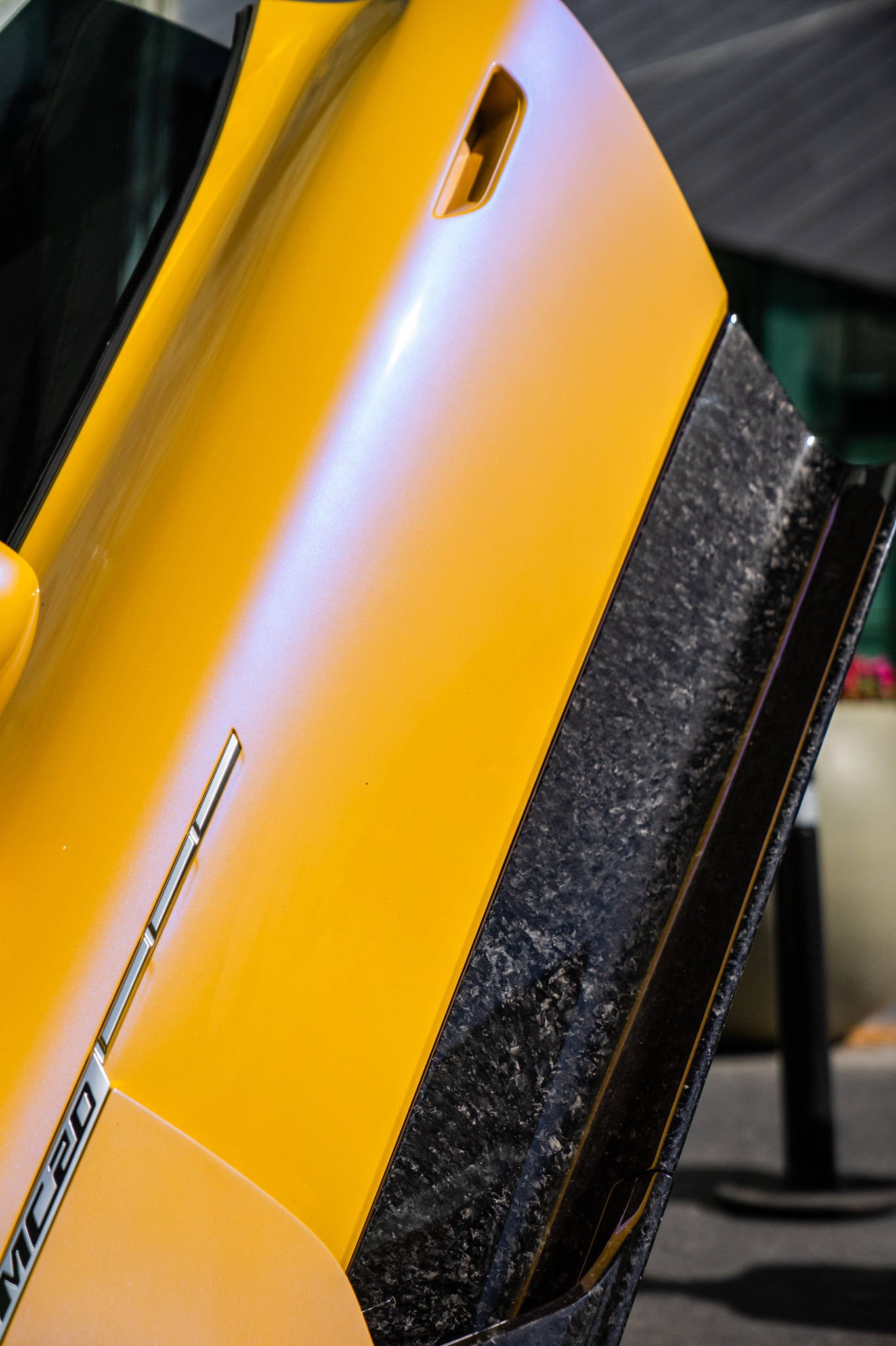 นี่คือ MC20 Aria ชุดแต่งรุ่นลิมิเต็ดจาก 7Design ติดตั้งได้ทั้ง MC20 และ MC20 Cielo วัสดุเป็นคาร์บอนไฟเบอร์ทั้งหมดช่วยลดน้ำหนักรถไปได้ราว 5 กก. ประกอบด้วยพาร์ท 7 ส่วน สปลิตเตอร์หน้า, คานาร์ด, สเกิร์ตข้าง, ช่องสกู๊ปหลังคา, ปีกท้าย, ดิฟฟิวเซอร์ท้าย และครีบช่องระบายอากาศฝากระโปรงหน้า ลายคาร์บอนฯ ก็เลือกได้จะเป็นฟอร์จลายหินอ่อน, ลายทแยง หรือจะลงสีก็ได้ และยังเสริมระบบท่อไอเสีย Josefin Garage ขั้น 2 ให้เสียงดุดันขึ้น ทำงานร่วมกับเครื่องดั้งเดิม Nettuno V6 3.0 ลิตร เทอร์โบคู่ 630 แรงม้า