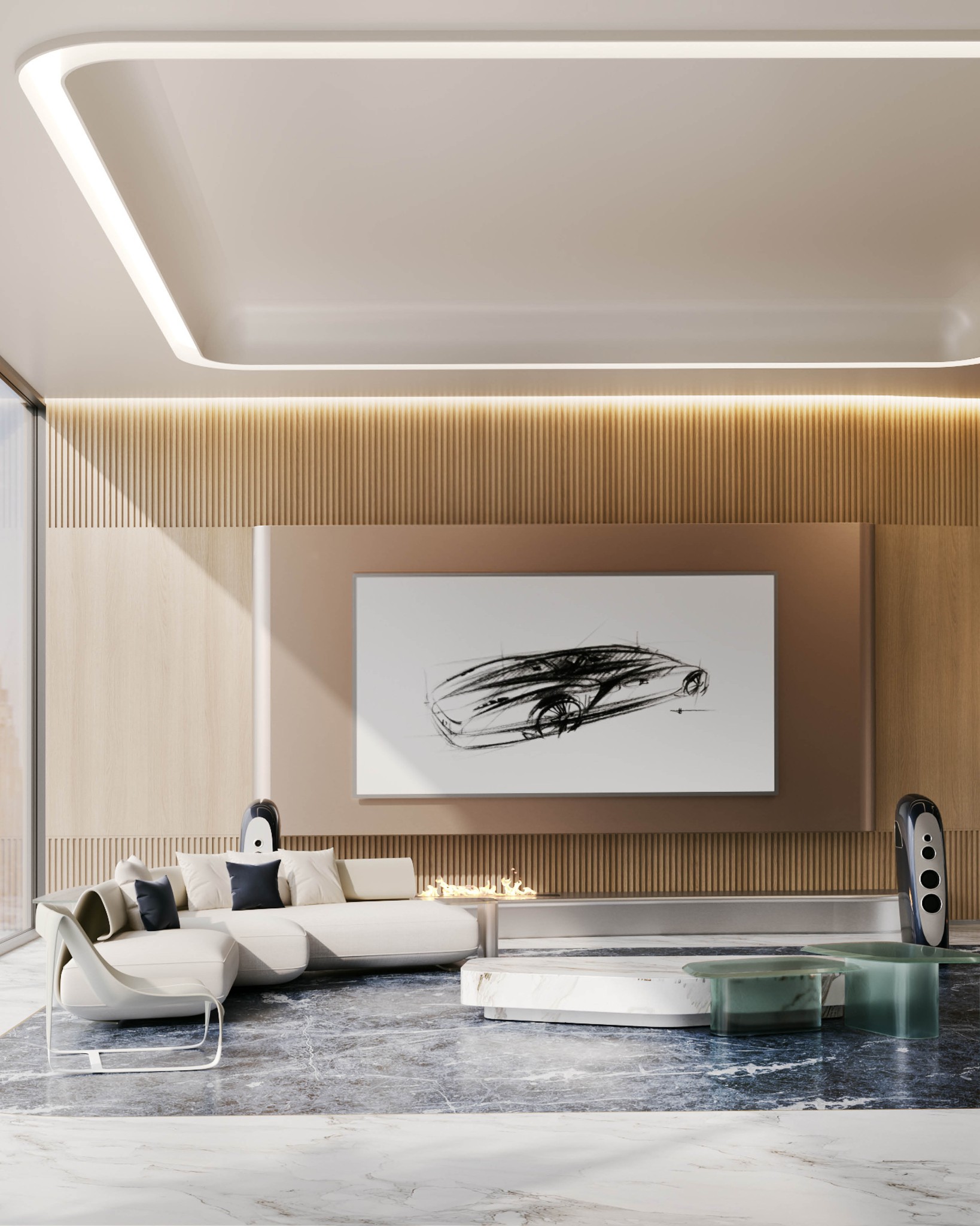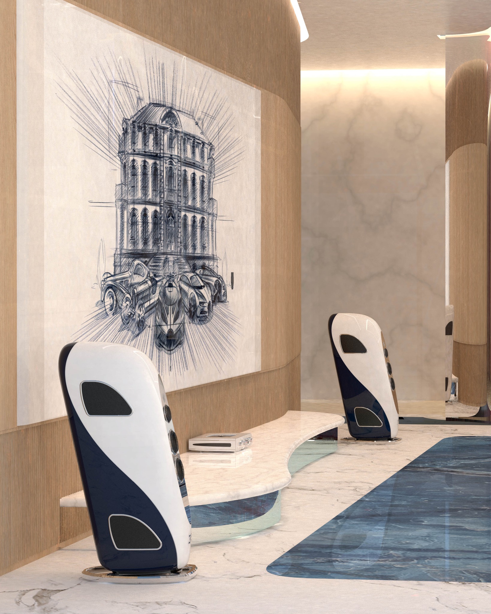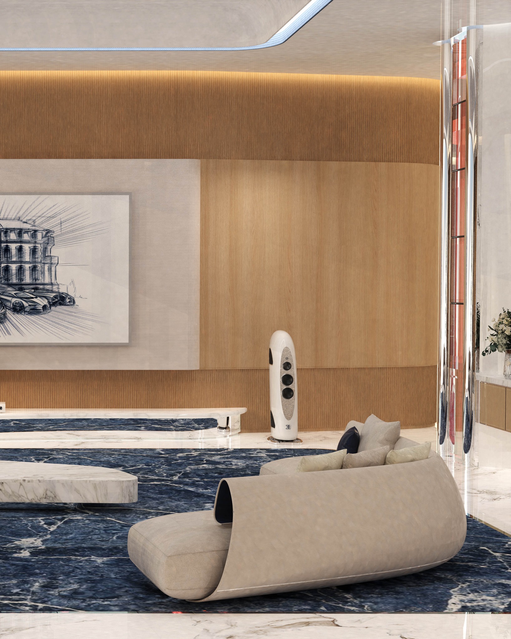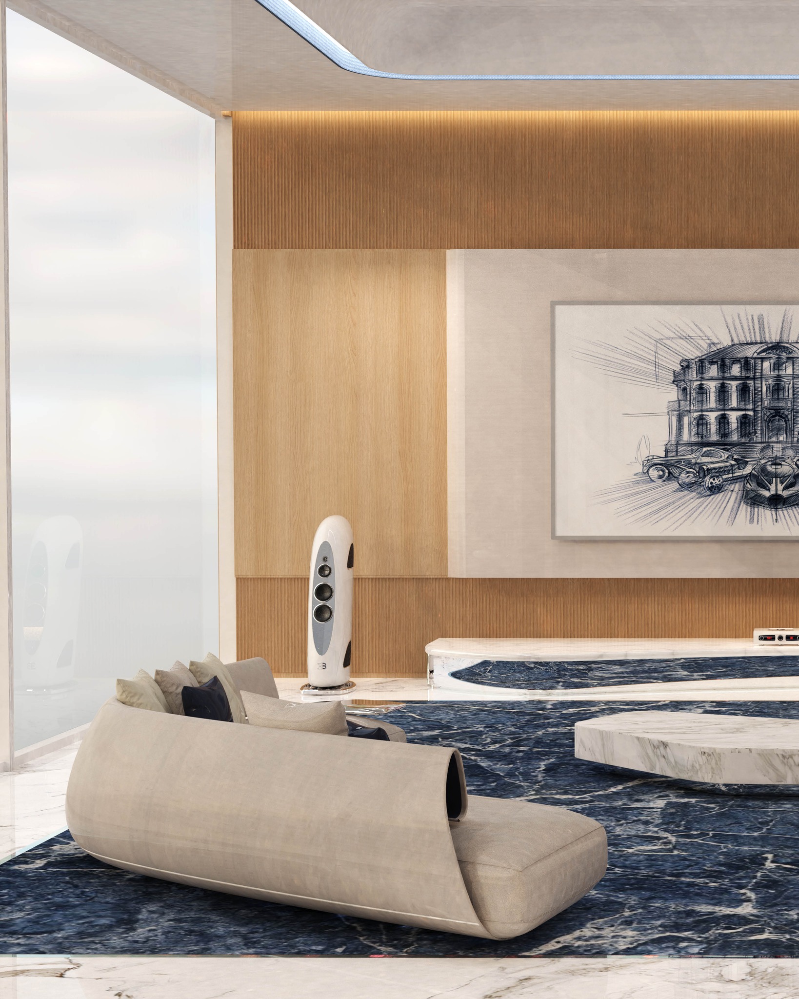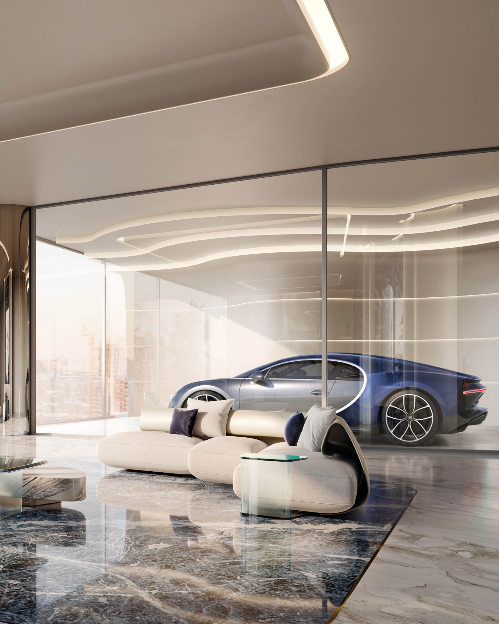Bugatti Residences by Binghatti ที่พักอาศัยสุดหรูใจกลางดูไบ เป็นตึกสูง 43 ชั้น ยูนิตทั้งหมด 183 ยูนิต แบ่งเป็น Riviera Mansions 171 ห้อง และ Sky Mansion Penthouse 11 ห้อง สำหรับงานตกแต่งในแต่ละห้องจะได้รับการคัดสรรเฟอร์นิเจอร์ต่างๆ เป็นอย่างดี ด้วยความร่วมมือจาก Luxury Living Group ผู้ออกแบบ ผลิต และจัดจำหน่ายเฟอร์นิเจอร์แบรนด์ Bugatti รวมถึง Versace, Dolce&Gabbana, Trussardi, Bentley Motors และแบรนด์ของตัวเอง Luxence Luxury Living นอกจากนี้ยังร่วมมือกับ TIDAL Audio แบรนด์เครื่องเสียงระดับไฮเอนด์ ติดตั้งเครื่องเสียงรุ่นพิเศษดีไซน์เฉพาะ Bugatti ที่จะมอบประสบการณ์เสียง และดีไซน์ดุจงานศิลปะสำหรับที่พักอาศัยของคุณ