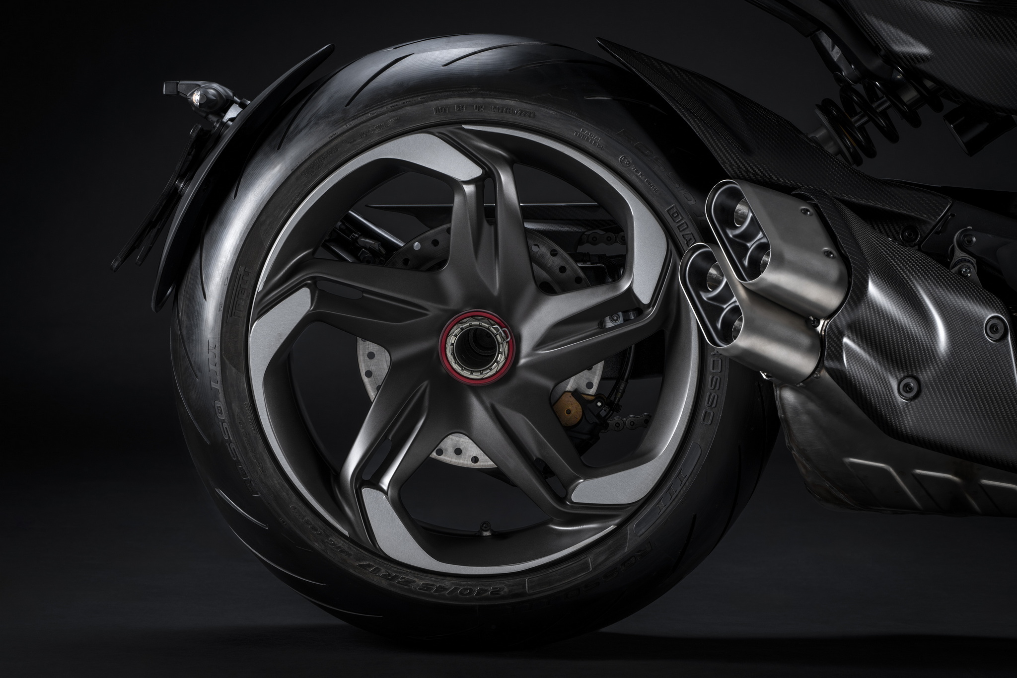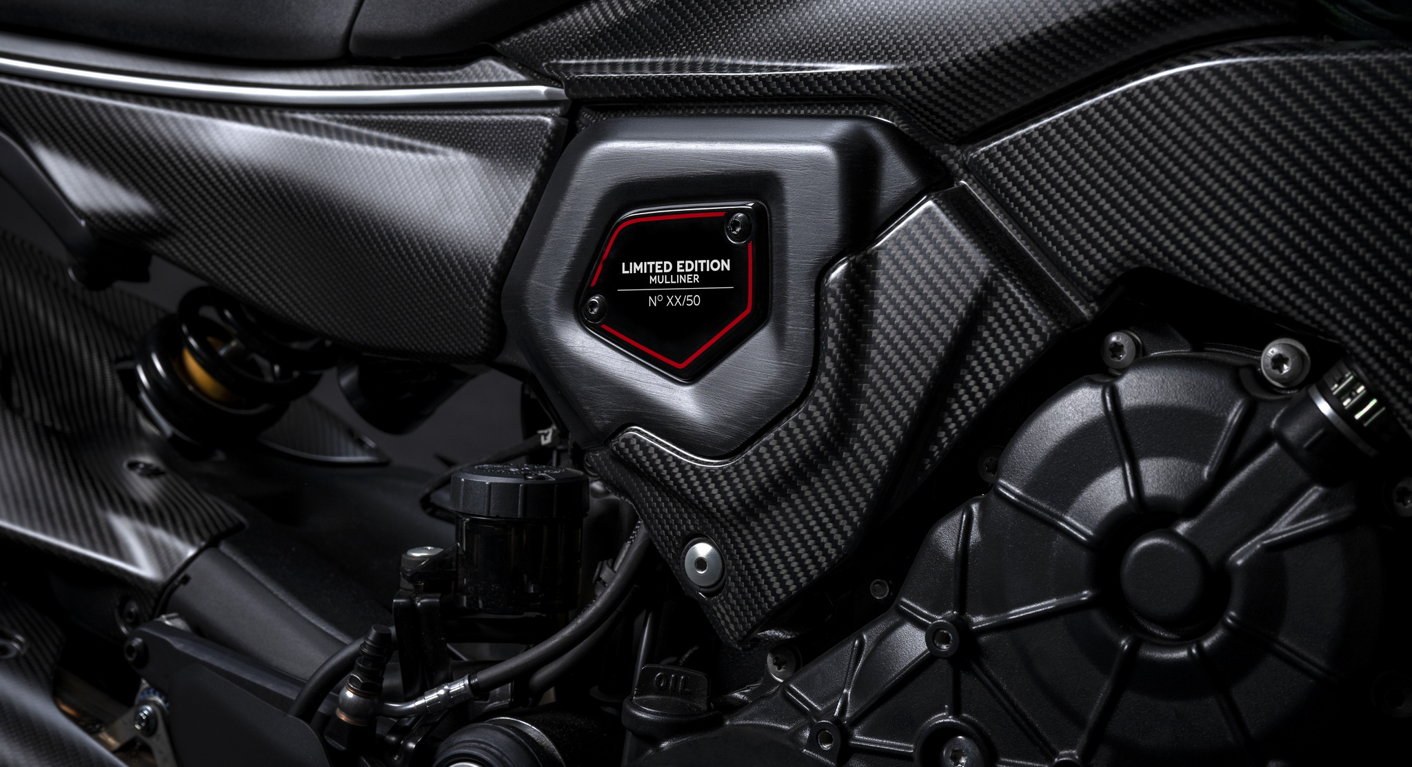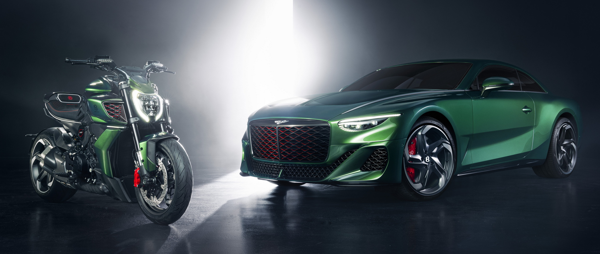 Diavel สำหรับ Bentley สร้างพิเศษบนพื้นฐาน Diavel V4 ตัวล่าสุด ซึ่งมันจะถูกเผยตัวครั้งแรกต่อสาธารณชนที่งาน Art Basel 2023 ในไมอามี ตัวรถจะมาในสีเขียวเมทัลลิก Scarab Green ที่ดูหรูหราเฉดเดียวกับของ Bentley Mulliner ชิ้นส่วนอื่นโดยรอบจะเน้นเป็นงานคาร์บอนไฟเบอร์ แผงช่องลมหน้ารถดีไซน์เหมือนกระจังหน้า Batur เบาะนั่งหุ้มด้วย Alcantara สีดำเจาะรูเป็นลวดลายเผยให้เห็นผ้าหุ้มสีแดงอีกชั้นและปักโลโก้ Bentley ขนาดใหญ่ ล้อฟอร์จเป็นสี Dark Titanium ลายพิเศษเหมือนกับ Batur และคาลิปเปอร์เบรกสีแดงจาก Brembo สำหรับเครื่องยนต์ยังเหมือนดั้งเดิม V4 Granturismo ขนาด 1,158 ซีซี 168 แรงม้า