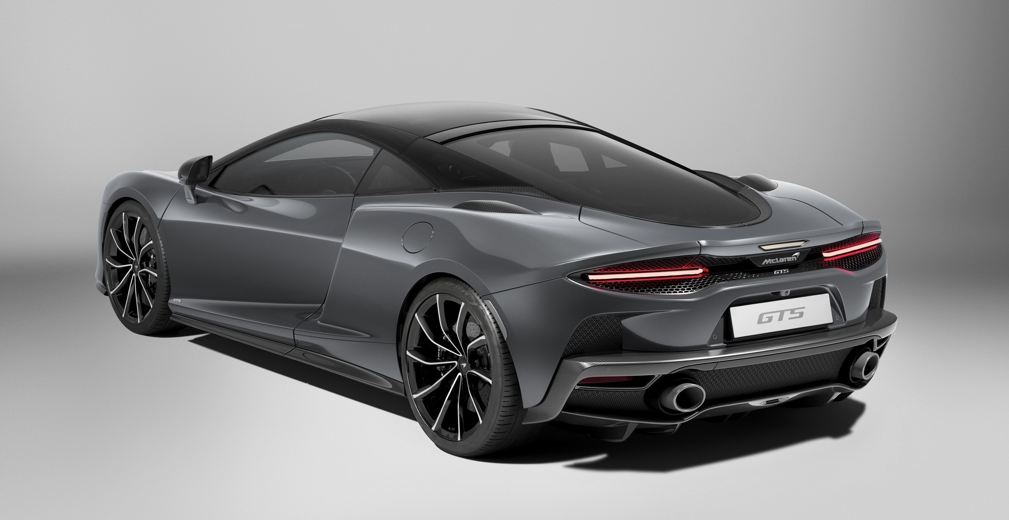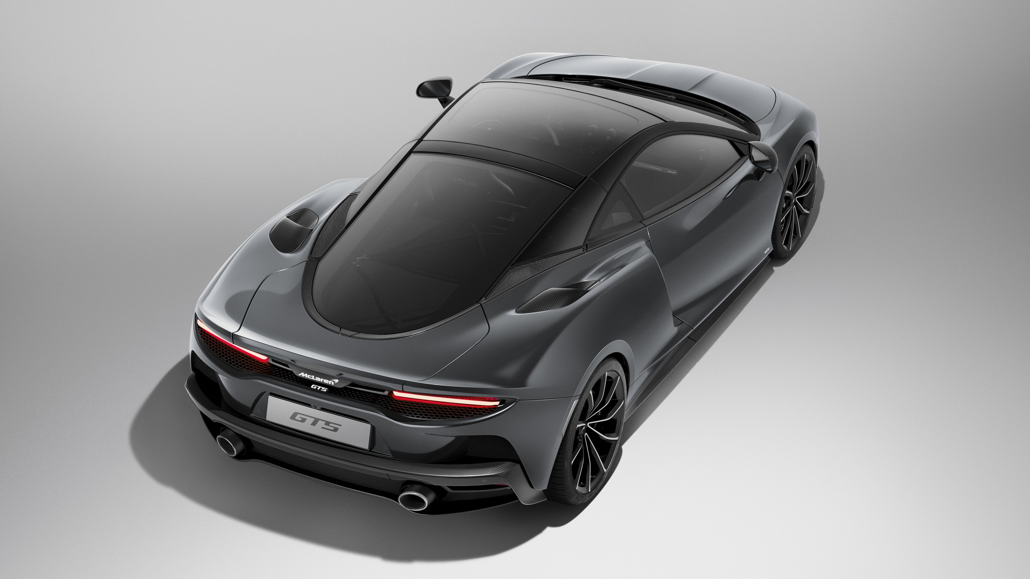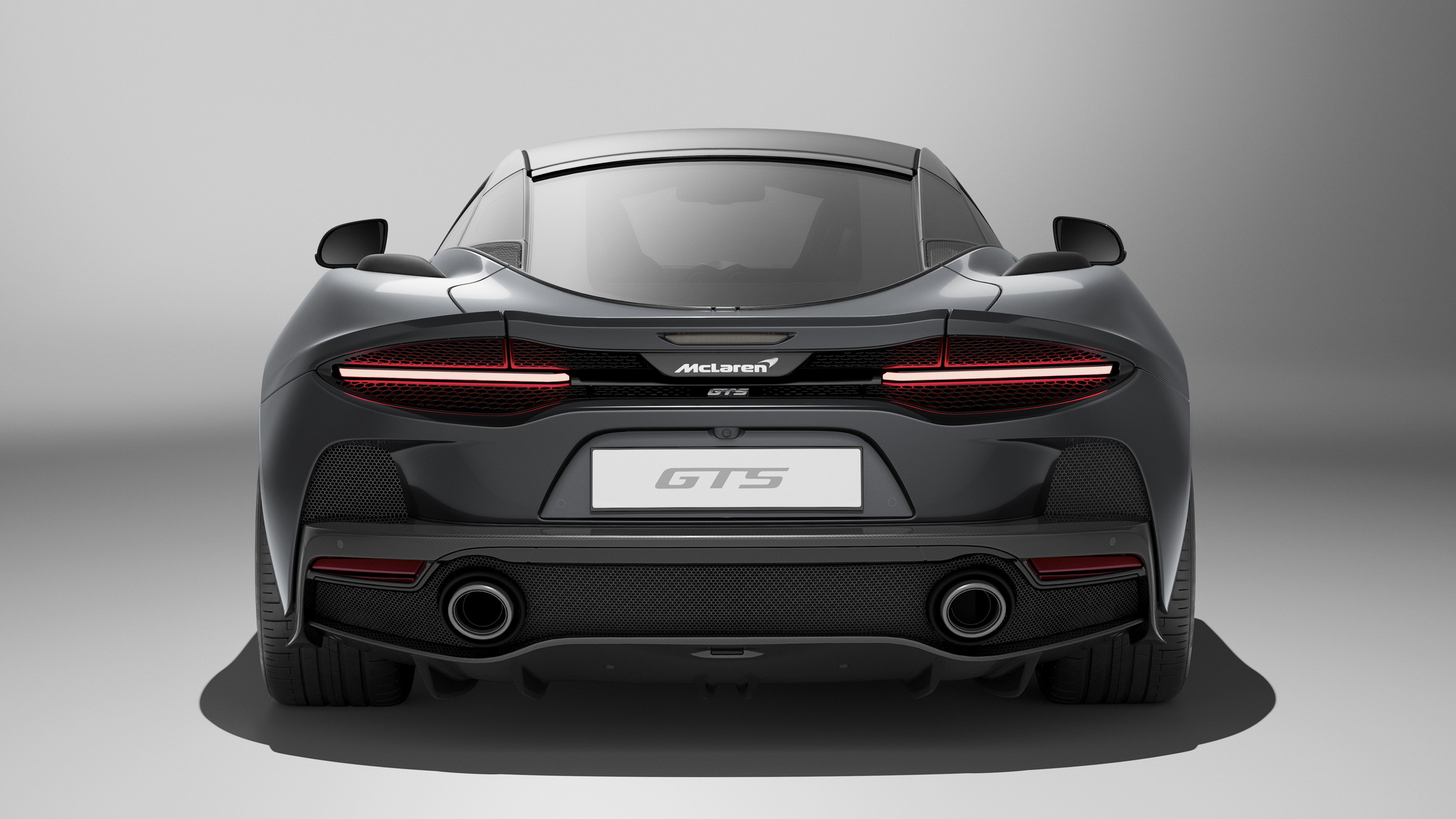 McLaren GTS ถือเป็นการปรับชื่อใหม่เพิ่มความสดต้อนรับปี 2024 รูปลักษณ์ภายนอกแทบไม่ต่างจาก GT มีการปรับปรุงเล็กน้อยที่กันชนหน้าบริเวณช่องดักอากาศด้านข้างใหญ่ขึ้น ช่องสกู๊ปเหนือซุ้มล้อหลังดีไซน์ใหม่ยกนูนสูงดูดุขึ้น (GT จะเรียบ) มีสีตัวถังใหม่ๆ เช่น เขียว Mantis Green, น้ำเงิน Tanzanite Blue, ขาว Ice White และสีที่มีเฉพาะ GTS เทา Lava Grey เมทัลลิกที่ซ่อนประกายสีแดงไว้ ล้อก็เพิ่มลายใหม่ GTS 'Turbine' ลายนี้แอบคล้ายล้อ Speedtail ปรับปรุงระบบ Lift ล้อหน้ายกหรือลงในเวลา 4 วินาที เร็วขึ้นสองเท่าจาก GT น้ำหนักตัวรถ 1,520 กิโลกรัม เบาลงจาก GT 10 กิโลกรัม คล่องตัวด้วยระบบกันสะเทือนปรับได้อัจฉริยะจาก Monroe ให้จานเบรกคาร์บอน-เซรามิคไม่ต้องจ่ายเพิ่ม ด้านหน้าขนาด 390 มม. คาลิปเปอร์ 6 สูบ ด้านหน้า 380 มม. คาลิปเปอร์สี่สูบ หยุดรถจาก 100-0 กม./ชม. ในระยะเพียง 32 เมตร