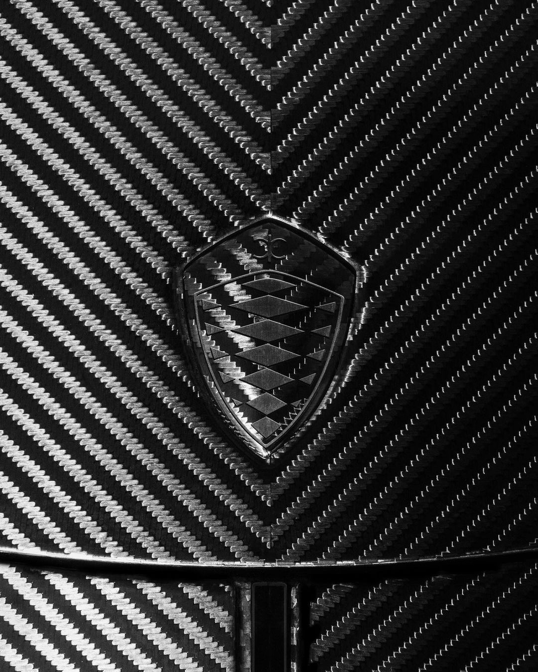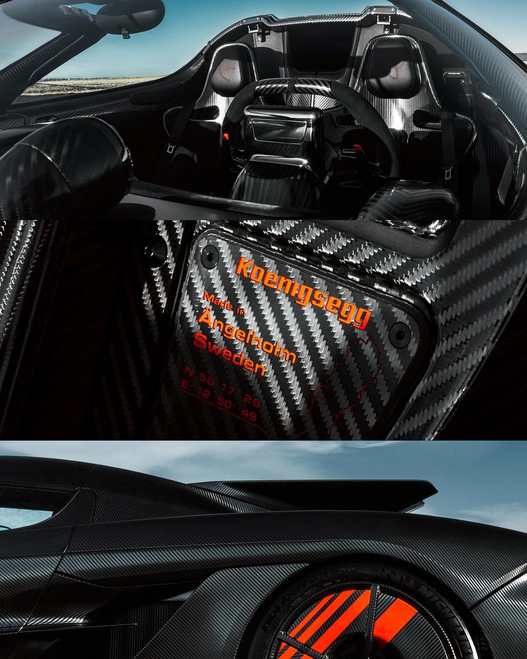 Jesko Absolut คันแรกดุดันด้วยตัวถังคาร์บอนเปลือยทั้งคัน KNC (Koenigsegg Naked Carbon) ด้านบนหลังคายังมีโลโก้ผีเอกลักษณ์ขนาดใหญ่ ตัดเด่นด้วยสีแดงสดที่ขายึดกระจกมองข้าง, คาลิปเปอร์เบรก, ฝาครอบล้อคู่หลังที่ติดมาช่วยลดแรงต้านอากาศ, โลโก้ผีขนาดเล็กเหนือเครื่องยนต์ และท้ายรถมีติดคำว่า Le Mans และ Ghost เป็นสีแดงเช่นกัน
