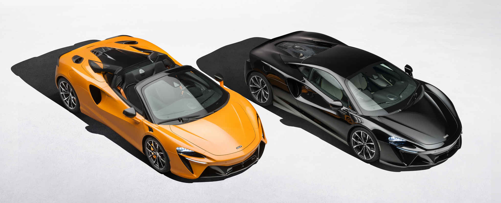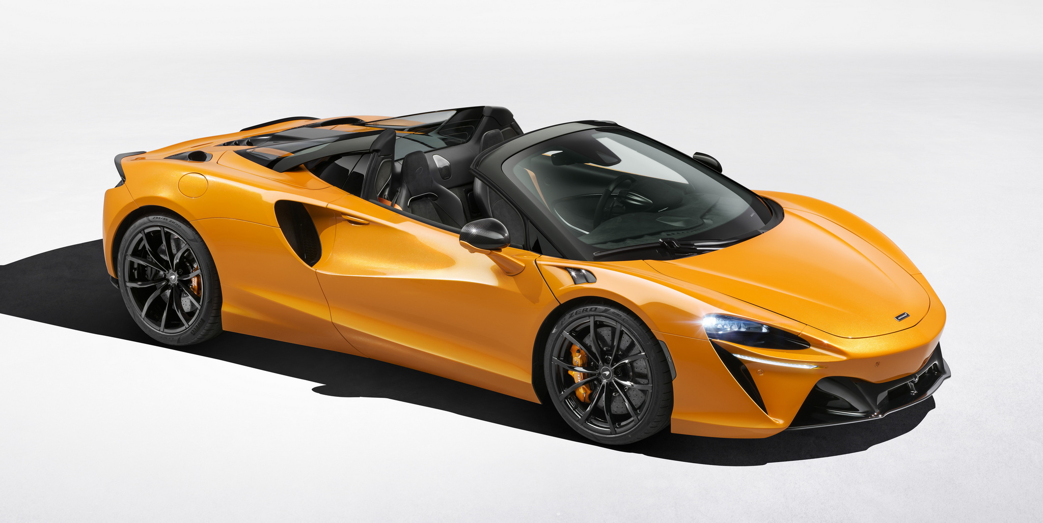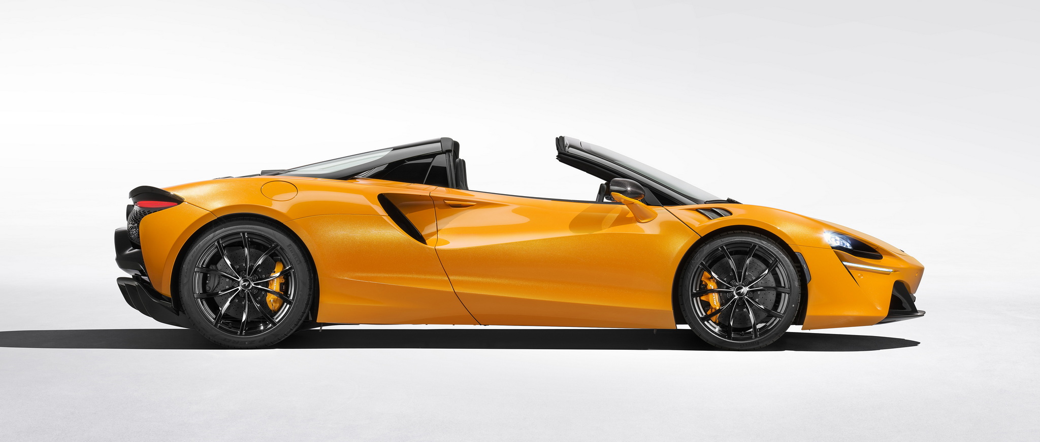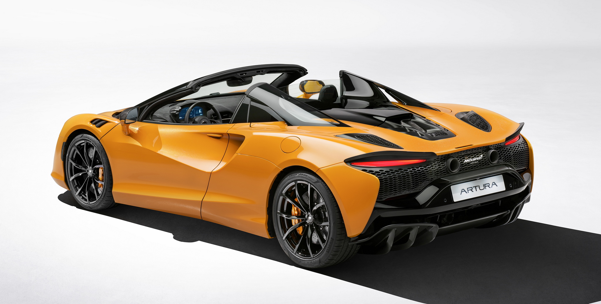 Artura Spider หล่อจัดเต็มด้วยหลังคาเปิดประทุน Retractable Hard Top (RHT) ทำงานรวดเร็วในเวลา 11 วินาที ที่ความเร็วไม่เกิน 50 กม./ชม. ด้วยมอเตอร์ไฟฟ้า 8 ตัว แยกกัน หลังคายังเป็นกระจก Electrochromic Glass ปรับโปร่งใสหรือทึบได้ตามใจชอบ ตัวรถมีน้ำหนักเบาสุด 1,457 กก. และน้ำหนัก Kerb weight 1,560 กก. ซึ่งเพิ่มจากตัวคูเป้เพียง 62 กก. ทำให้ Artura Spider เป็นรถเปิดประทุนที่เบาที่สุดเมื่อเทียบกับรถเปิดประทุนค่ายอื่นๆ ซึ่งมีความได้เปรียบมากถึง 83 กก.