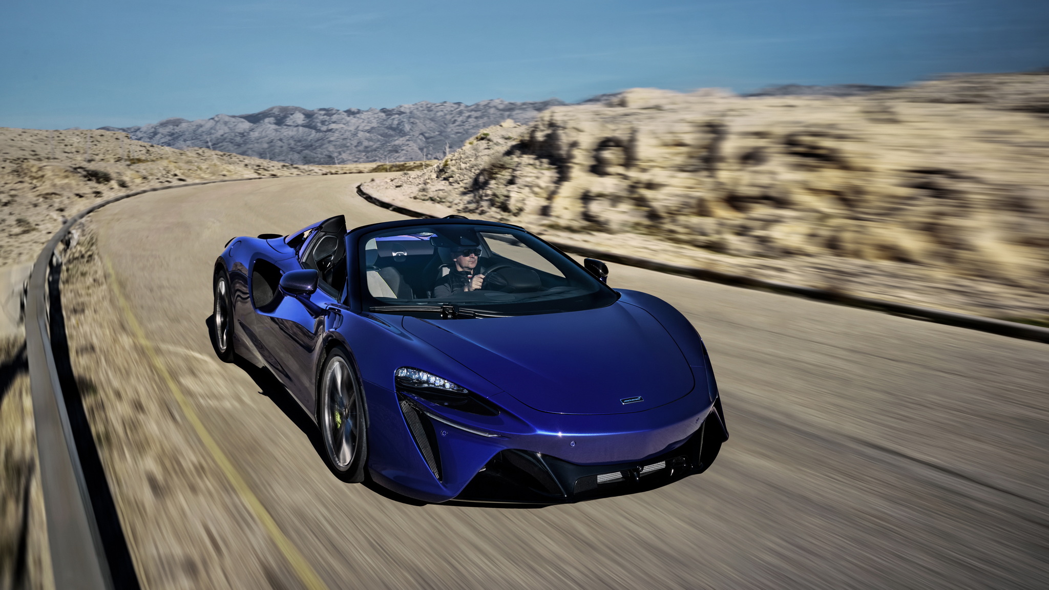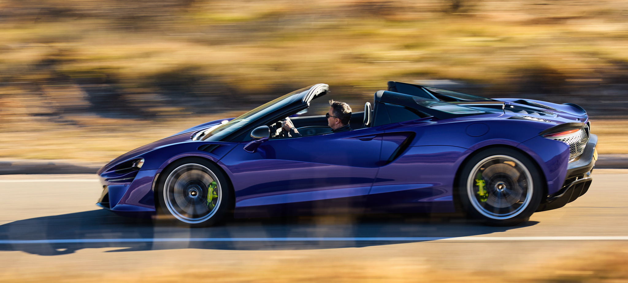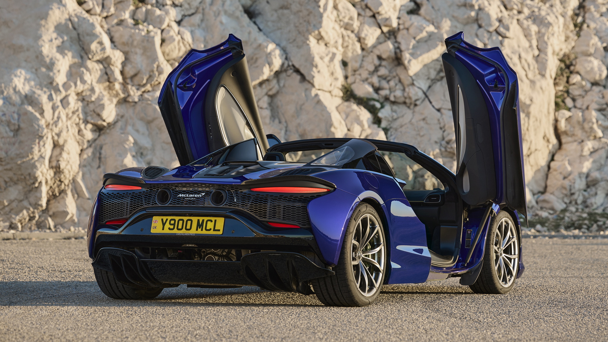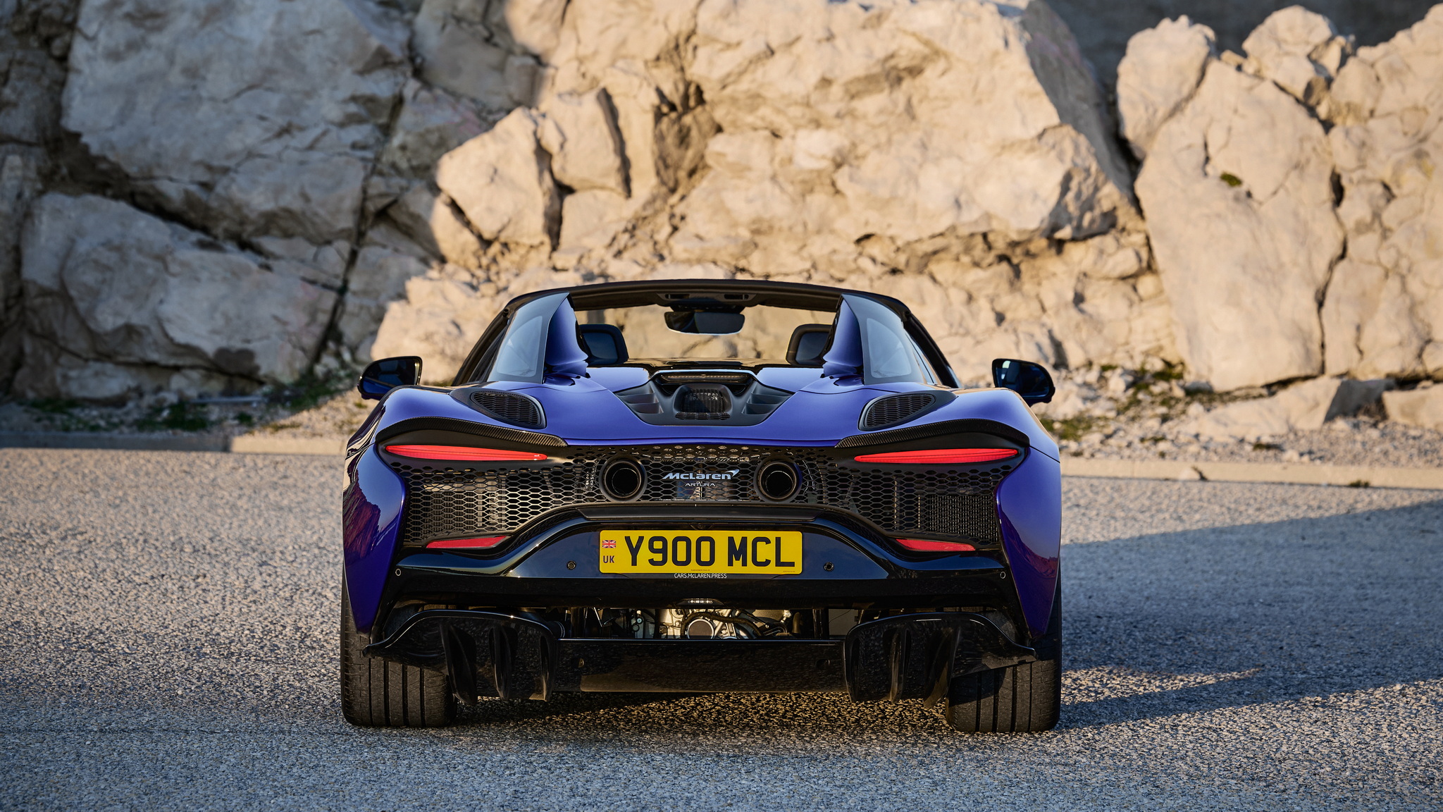 Artura Spider หล่อจัดเต็มด้วยหลังคาเปิดประทุน Retractable Hard Top (RHT) ทำงานรวดเร็วในเวลา 11 วินาที ที่ความเร็วไม่เกิน 50 กม./ชม. ด้วยมอเตอร์ไฟฟ้า 8 ตัว แยกกัน หลังคายังเป็นกระจก Electrochromic Glass ปรับโปร่งใสหรือทึบได้ตามใจชอบ ตัวรถมีน้ำหนักเบาสุด 1,457 กก. และน้ำหนัก Kerb weight 1,560 กก. ซึ่งเพิ่มจากตัวคูเป้เพียง 62 กก. ทำให้ Artura Spider เป็นรถเปิดประทุนที่เบาที่สุดเมื่อเทียบกับรถเปิดประทุนค่ายอื่นๆ ซึ่งมีความได้เปรียบมากถึง 83 กก.
