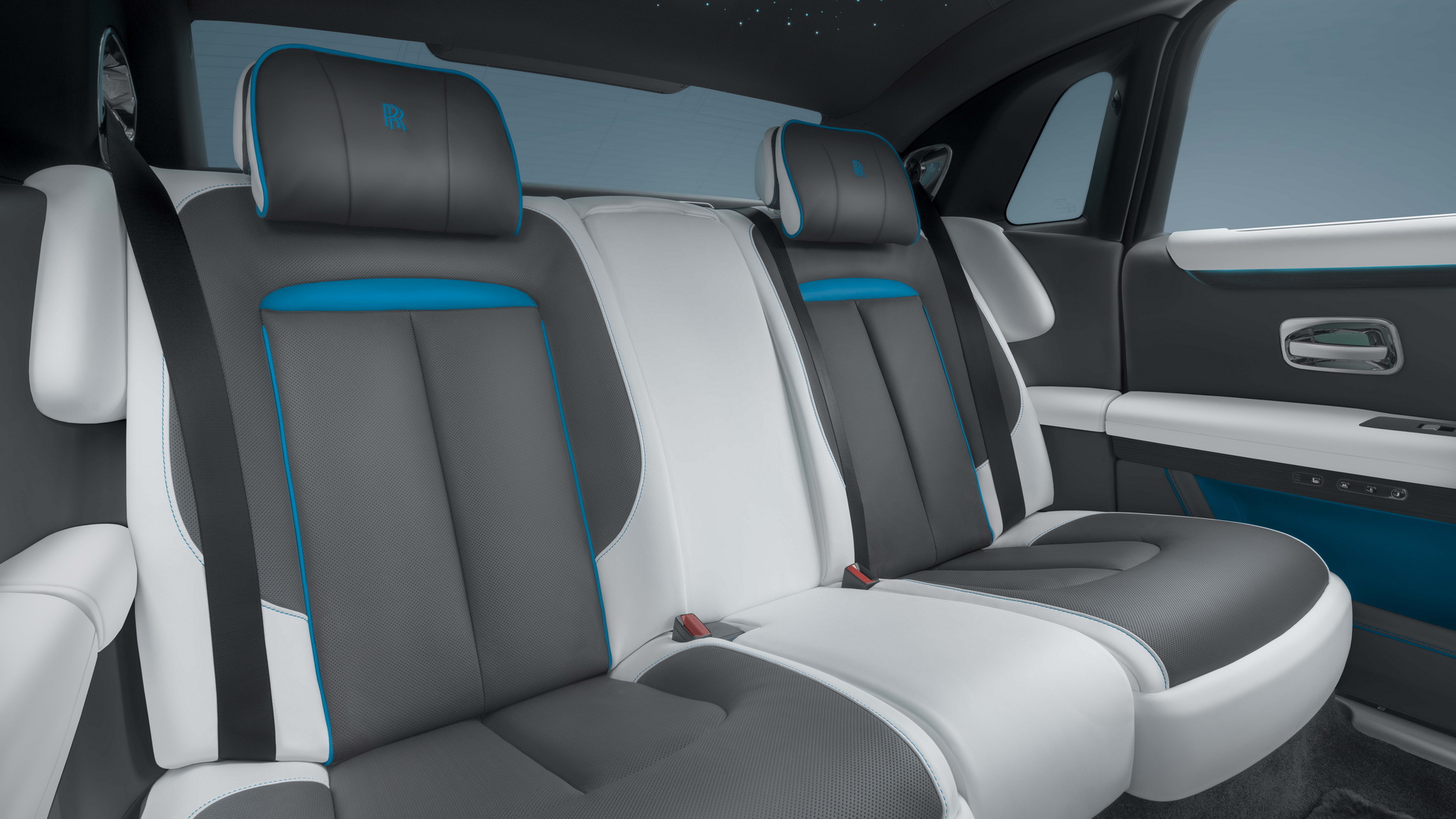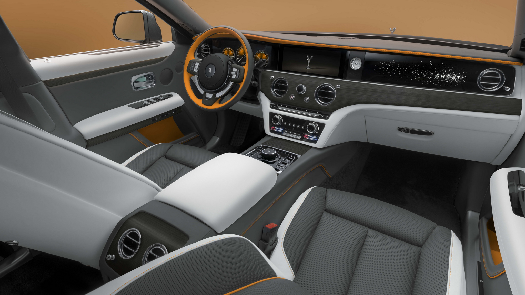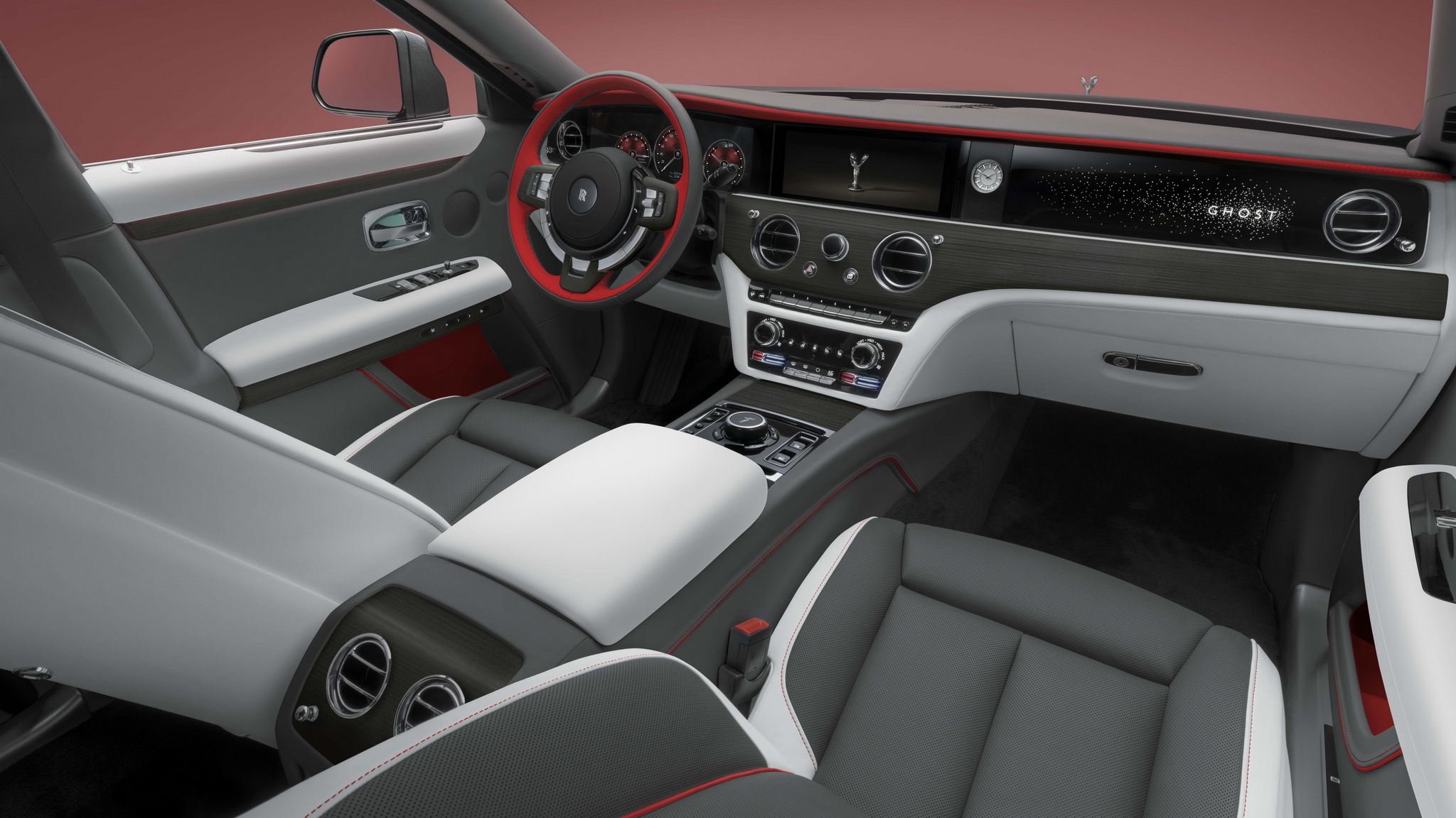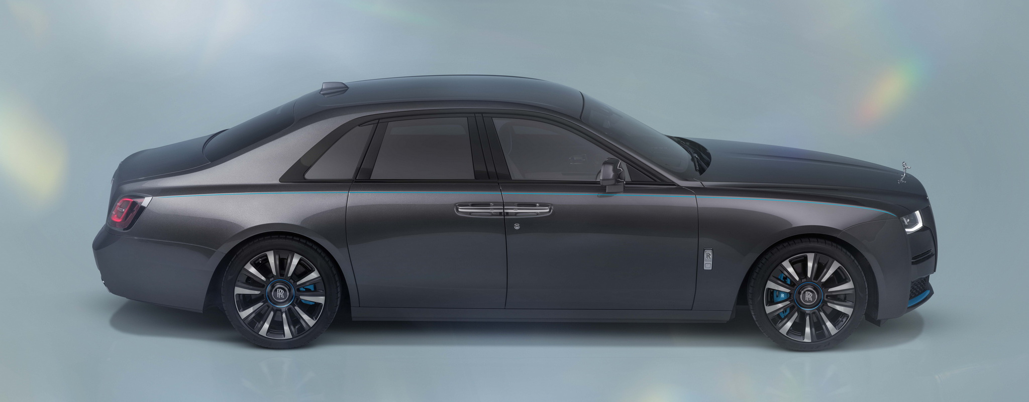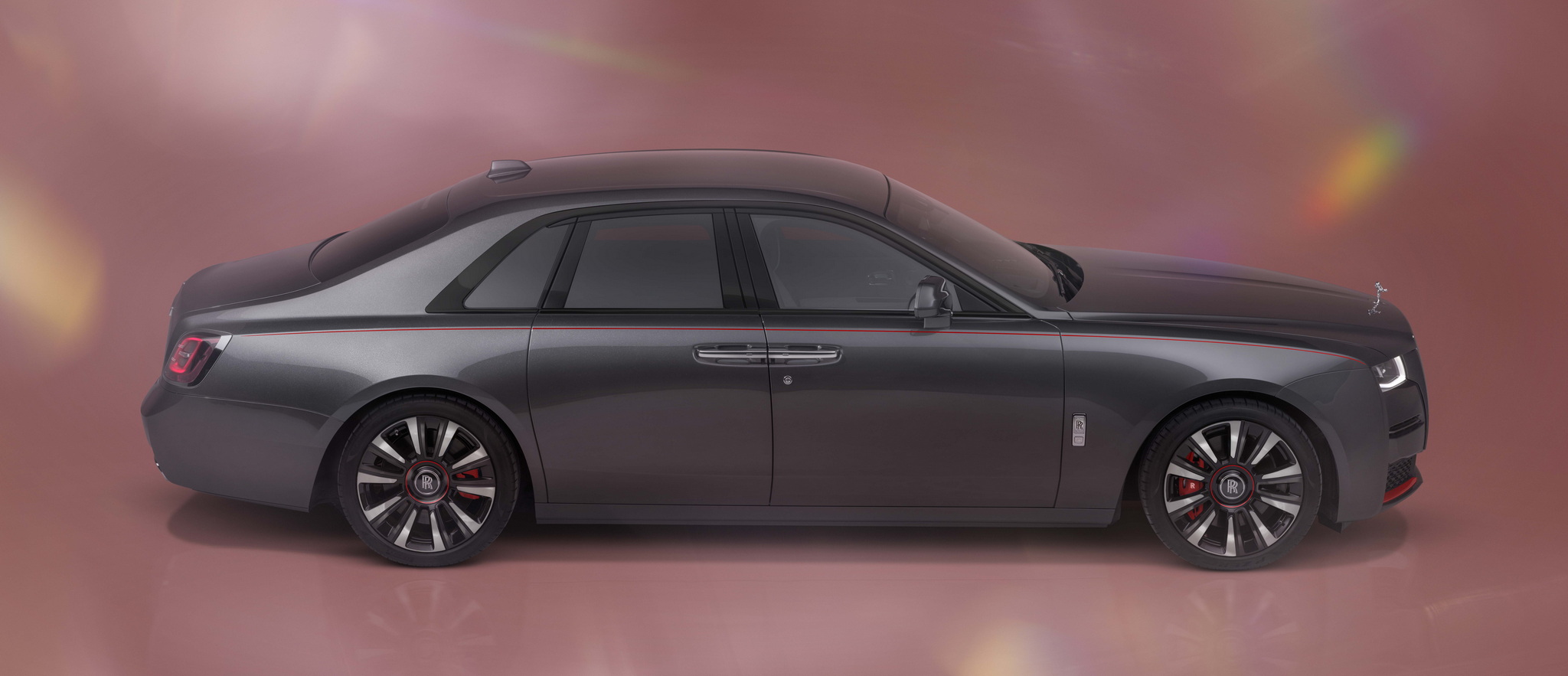 Rolls-Royce Ghost Prism รุ่นพิเศษผลิตแค่ 120 คัน ทั่วโลก แรงบันดาลใจจากโลกแห่งการออกแบบร่วมสมัย ด้วยการนำเสนอโทนสีเข้ม และเน้นรายละเอียดเล็กๆ ด้วยเส้นสีสันจัดจ้านโดดเด่น ตัวถังมากับสีเทา Gunmetal ที่ฝังประกายระยิบระยับแน่นจนเห็นแต่ไกล ผลิตผ่านกระบวนการเข้มงวด 10 ขั้นตอนพร้อมลงสีหนา 4 ชั้น อย่างพิถีพิถัน จากนั้นจึงขัดด้วยมือเป็นเวลา 16 ชั่วโมง และจะตัดเด่นบริเวณกันชนหน้าส่วนล่าง คาลิปเปอร์เบรก และเส้นโคชไลน์ ด้วยสีให้เลือก 4 สี แดง Phoenix Red, น้ำเงิน Turchese, ส้ม Mandarin และเหลือง Forge Yellow กระจังหน้าและคิ้วฝากระโปรงท้ายรุ่นนี้ยังทำเป็นสีดำเทารมควัน ส่วนคิ้วกรอบหน้าต่างด้านข้างจะเป็นสีดำเงา