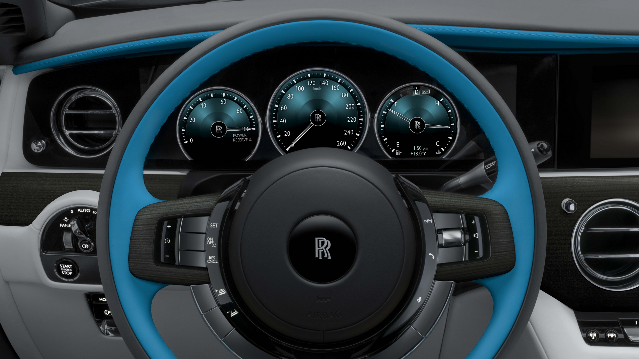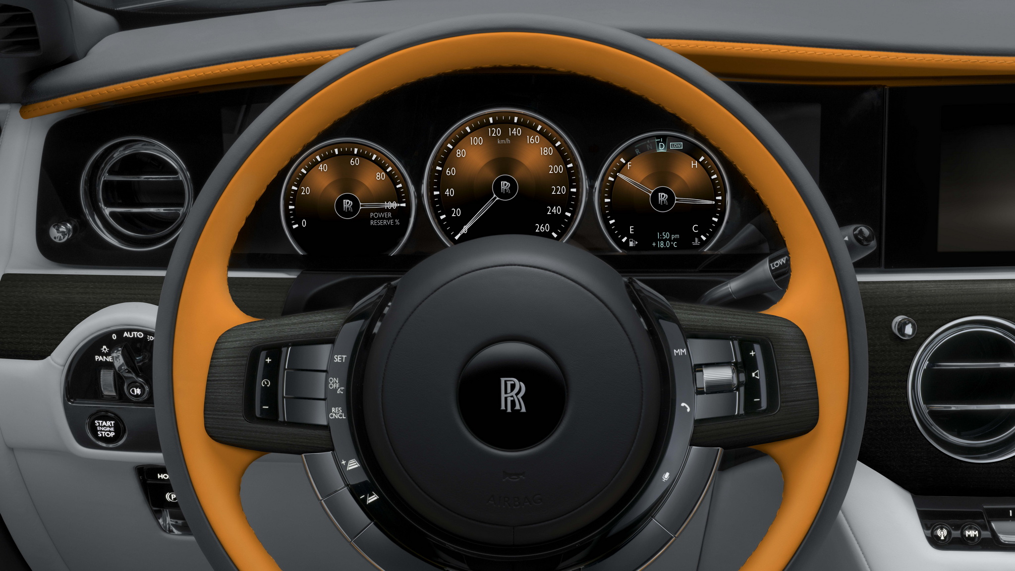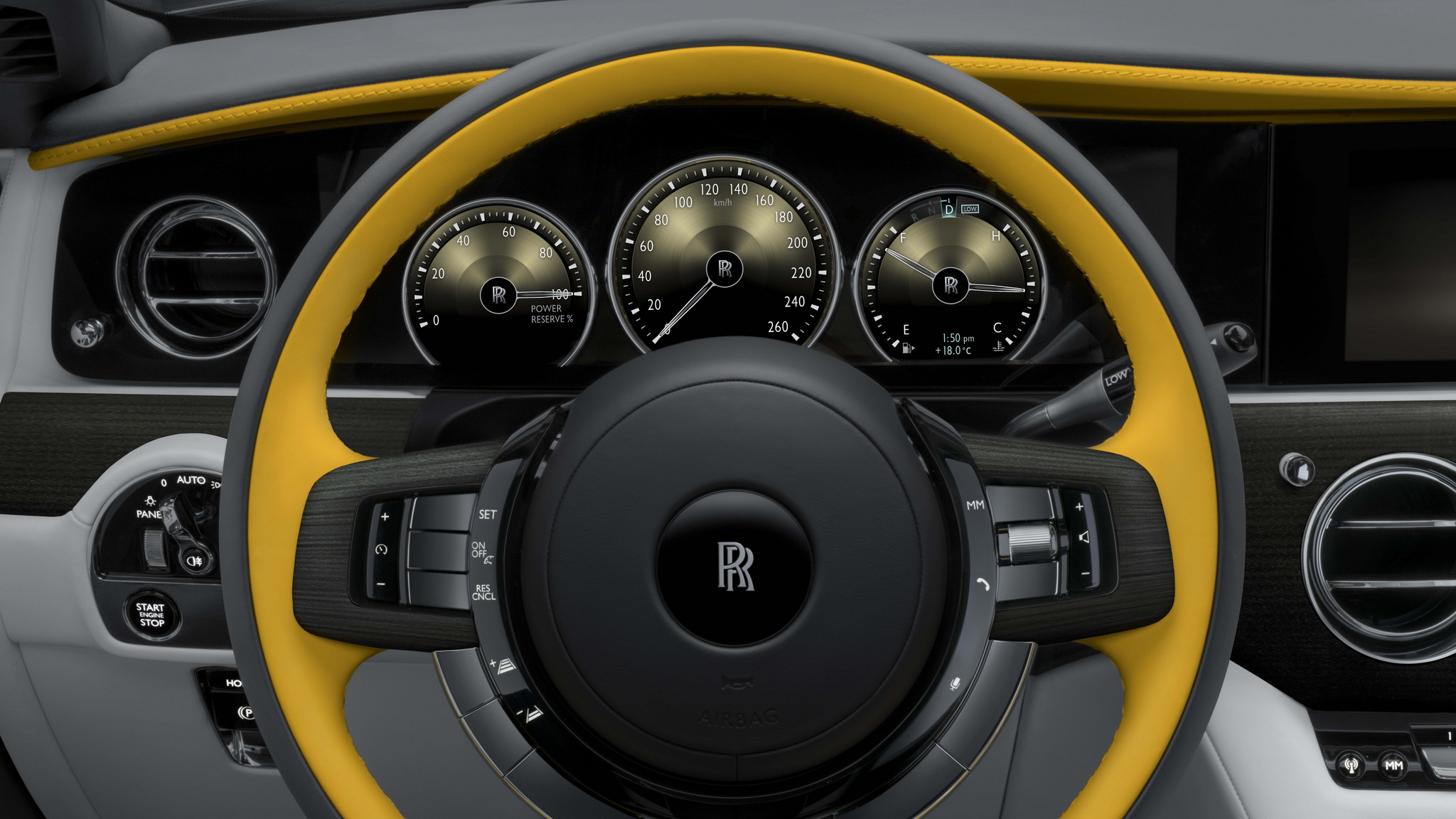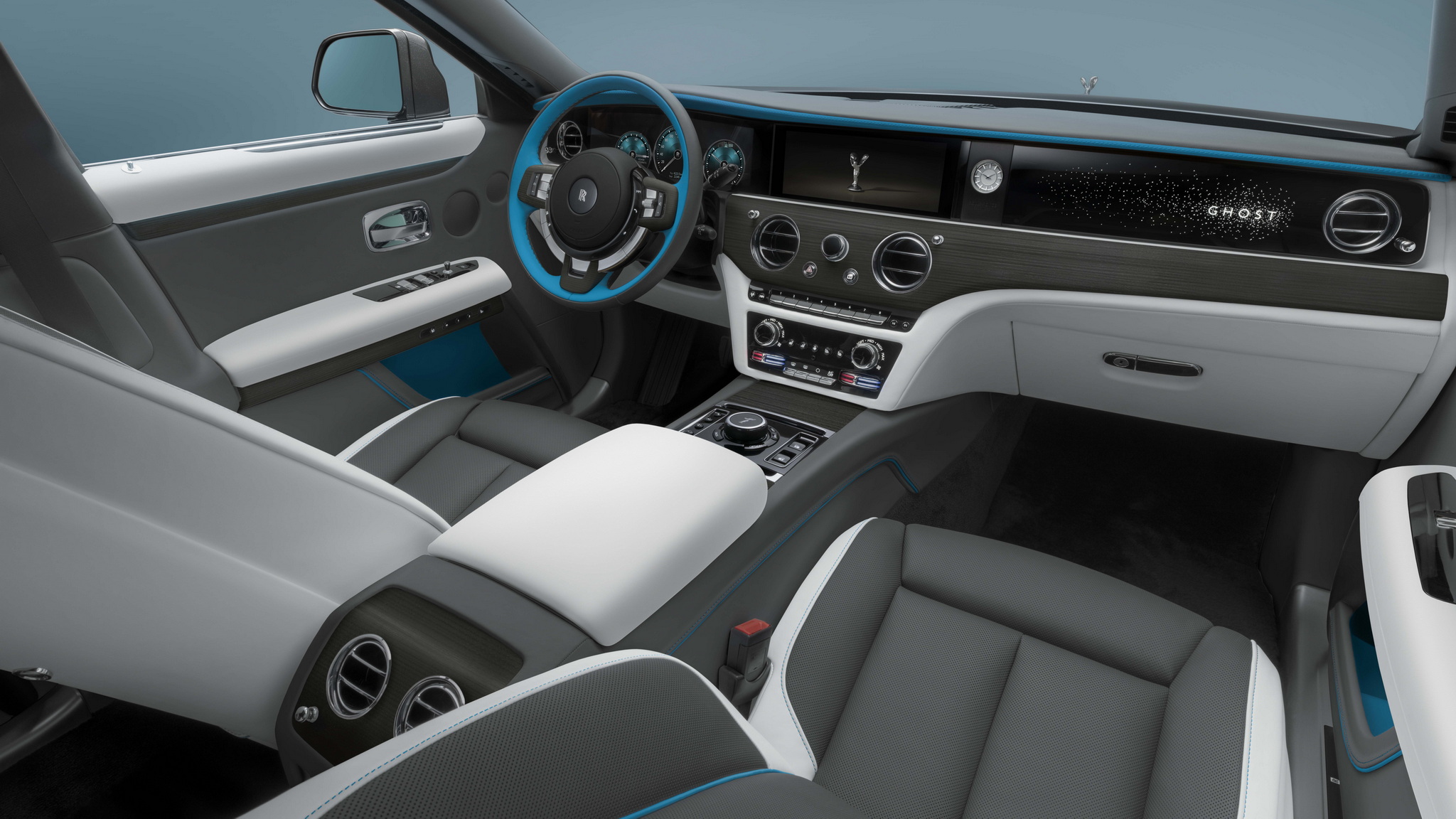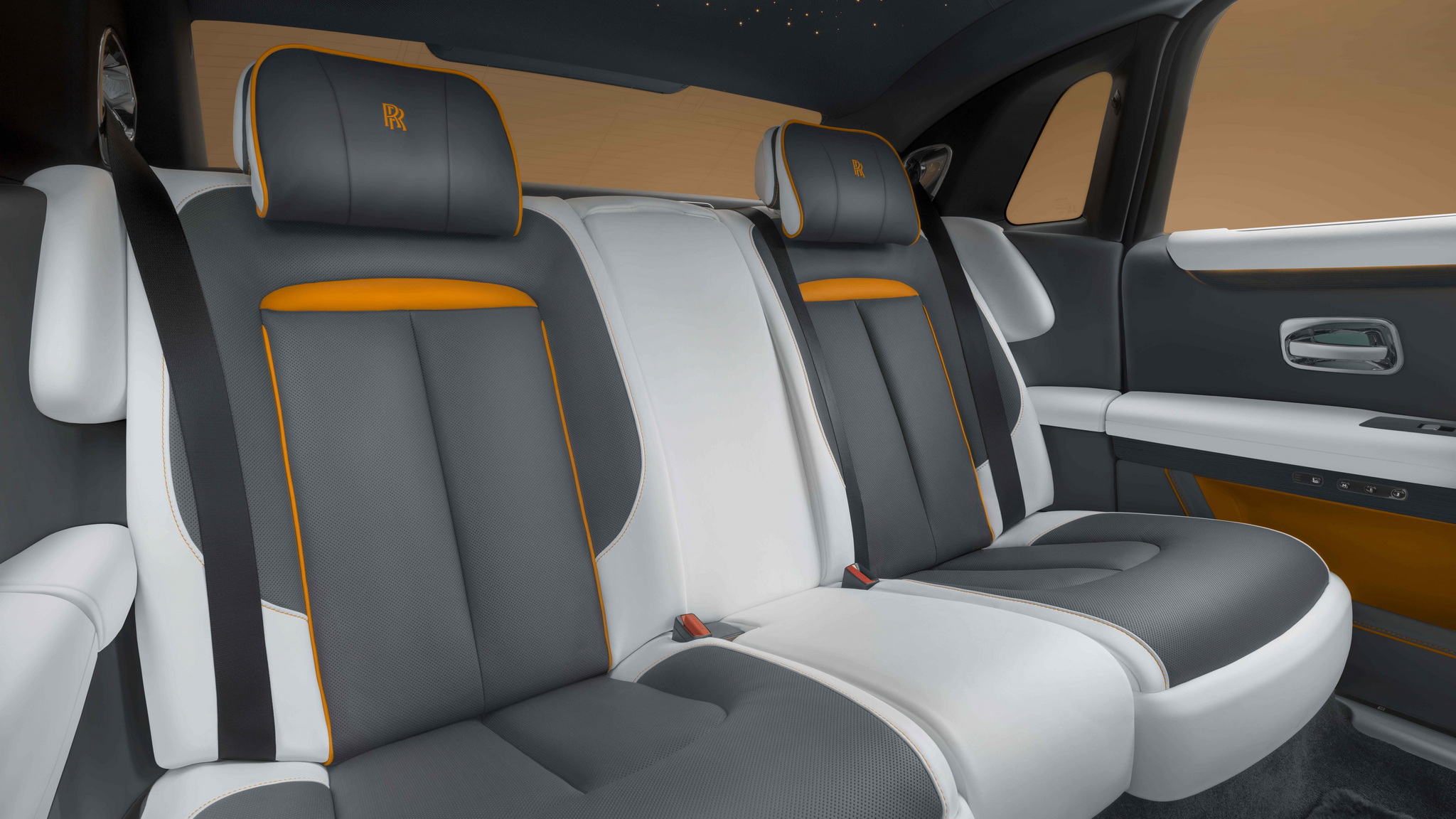 Rolls-Royce Ghost Prism รุ่นพิเศษผลิตแค่ 120 คัน ทั่วโลก แรงบันดาลใจจากโลกแห่งการออกแบบร่วมสมัย ด้วยการนำเสนอโทนสีเข้ม และเน้นรายละเอียดเล็กๆ ด้วยเส้นสีสันจัดจ้านโดดเด่น ตัวถังมากับสีเทา Gunmetal ที่ฝังประกายระยิบระยับแน่นจนเห็นแต่ไกล ผลิตผ่านกระบวนการเข้มงวด 10 ขั้นตอนพร้อมลงสีหนา 4 ชั้น อย่างพิถีพิถัน จากนั้นจึงขัดด้วยมือเป็นเวลา 16 ชั่วโมง และจะตัดเด่นบริเวณกันชนหน้าส่วนล่าง คาลิปเปอร์เบรก และเส้นโคชไลน์ ด้วยสีให้เลือก 4 สี แดง Phoenix Red, น้ำเงิน Turchese, ส้ม Mandarin และเหลือง Forge Yellow กระจังหน้าและคิ้วฝากระโปรงท้ายรุ่นนี้ยังทำเป็นสีดำเทารมควัน ส่วนคิ้วกรอบหน้าต่างด้านข้างจะเป็นสีดำเงา