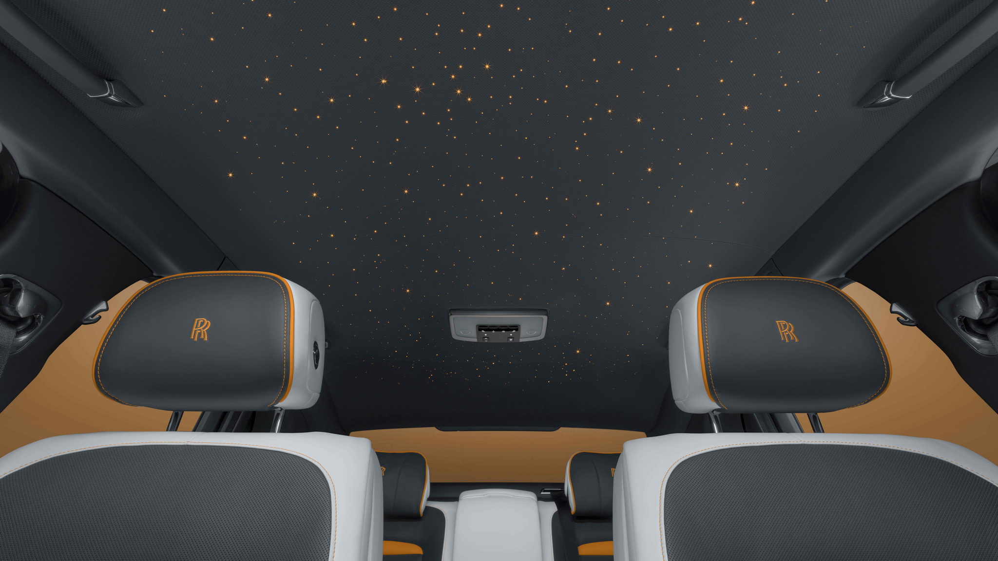 ภายในก็เน้นสีสันโดดเด่นทั่วทั้งห้องโดยสาร มากับหลังคา Starlight สั่งทำพิเศษพร้อมดวงดาวหลากสี 1,040 ดวง