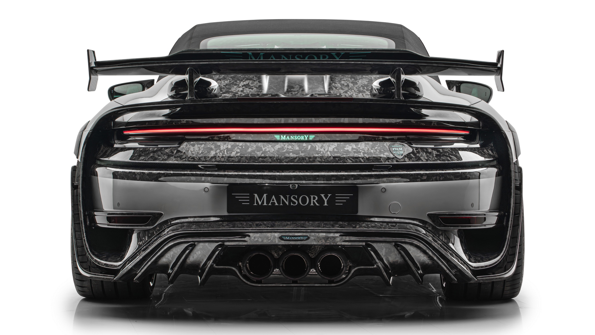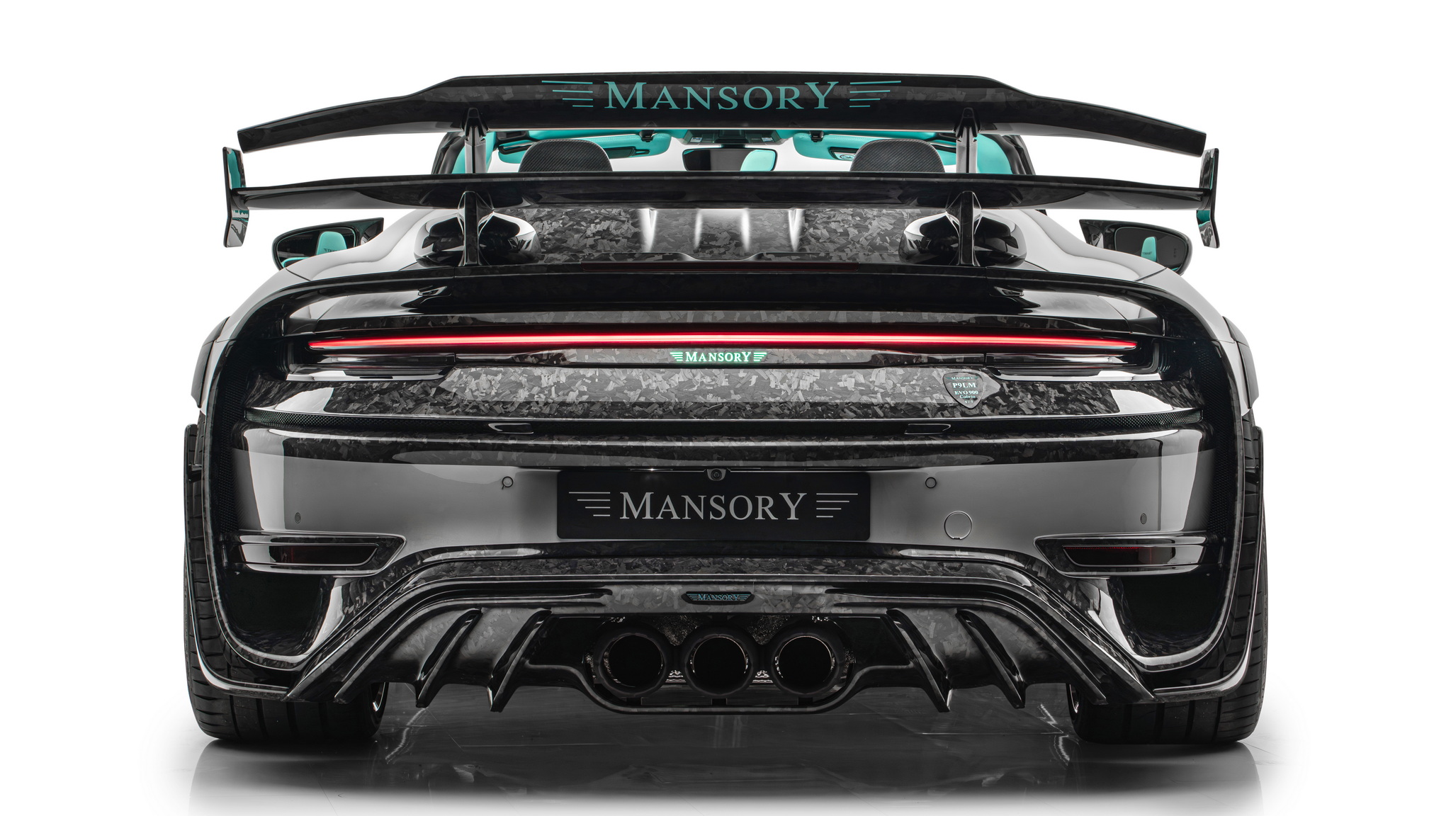 เครื่องยนต์ 6 สูบนอน 3.8 ลิตร เทอร์โบคู่ ทาง Mansory ก็จัดการอัพเกรดได้เทอร์โบชาร์จเจอร์ VTG ที่ใหญ่ขึ้น ระบบท่อไอเสียใหม่หมด Downpipe ขนาด 98 มม. พร้อมลิ้นไอเสีย อินเตอร์คูลเลอร์ระบายความร้อนด้วยน้ำพร้อมควบคุมปรับพัดลมได้ ไส้กรองอากาศใหม่ และจูน ECU ใหม่ จากรถเดิมๆ มี 650 แรงม้า แรงบิด 800 นิวตันเมตร กลายเป็น 900 แรงม้า กับแรงบิด 1,050 นิวตันเมตร เร่ง 0-100 กม./ชม. ใน 2.5 วินาที และท๊อปสปีด 340 กม./ชม.