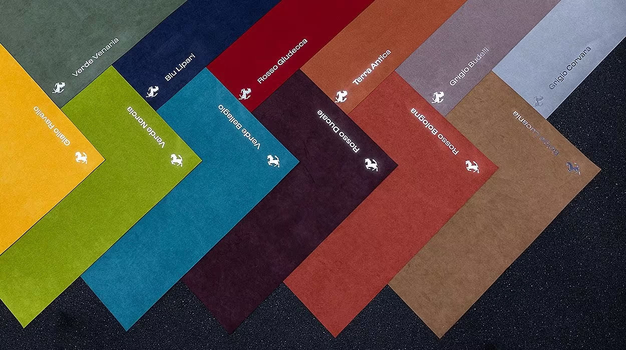 Alcantara 12 เฉดสีใหม่ ได้รับแรงบันดาลใจจากความงามของอิตาลีจากจุดหมายปลายทางต่างๆ ที่โด่งดังที่สุด เช่น ชายฝั่งอามาลฟี ทะเลสาบโคโม เทือกเขาแอลป์ และเกาะซาร์ดิเนีย Alcantara เวอร์ชั่นล่าสุดนี้ประกอบด้วยโพลีเอสเตอร์รีไซเคิล 68% ซึ่งผลิตในยุโรป ทำให้กระบวนการผลิตมีความยั่งยืนมากขึ้น รวมถึงลดผลกระทบต่อสิ่งแวดล้อมด้วย ทั้ง 12 เฉดสี พร้อมจำหน่ายแล้วกับเฟอร์รารี่ทุกรุ่น