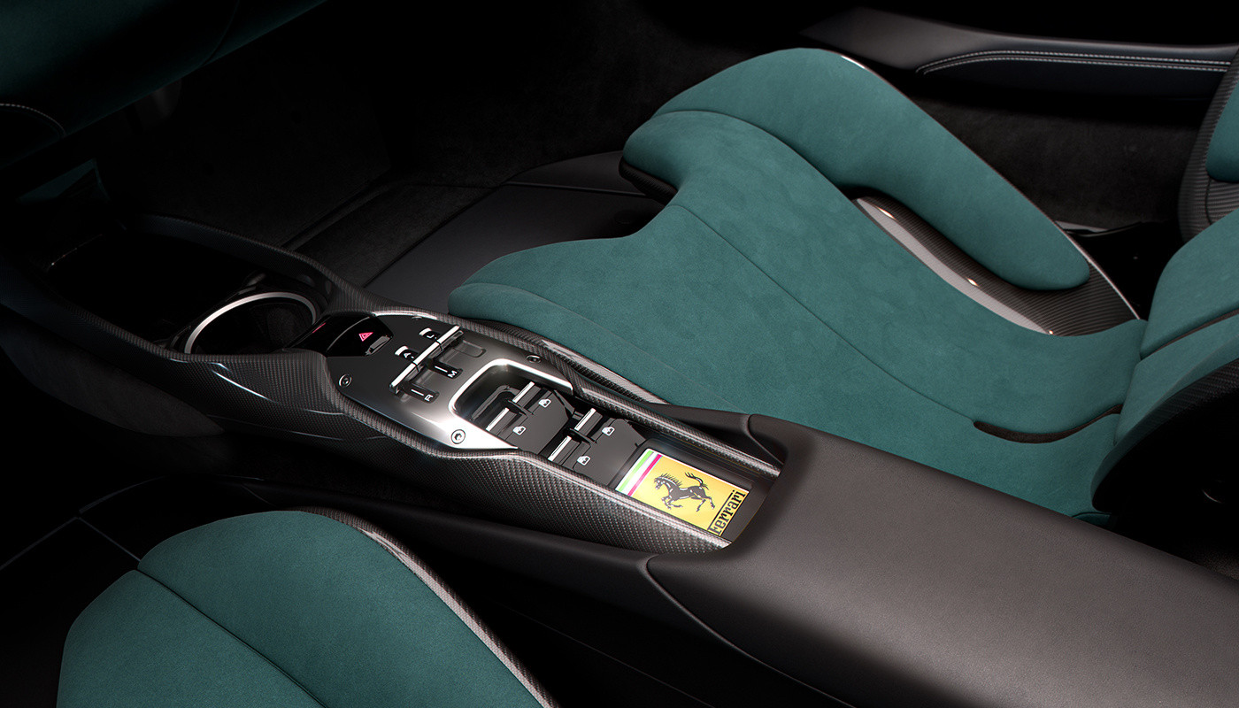 Alcantara หรือหนังกลับสังเคราะห์ เป็นวัสดุที่พบเห็นแพร่หลายในรถระดับหรู ซุปเปอร์คาร์ จนไปถึงรถแข่ง สามารถนำมาตกแต่งในห้องโดยสารได้หลากหลาย Ferrari จึงพัฒนา Alcantara เฉดสีใหม่ 12 เฉด ควบคู่ไปกับสีหนังแท้ใหม่ 12 เฉด ที่เปิดตัวไปแล้วก่อนหน้านี้