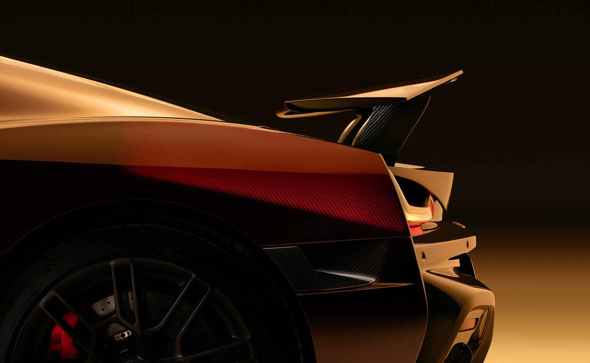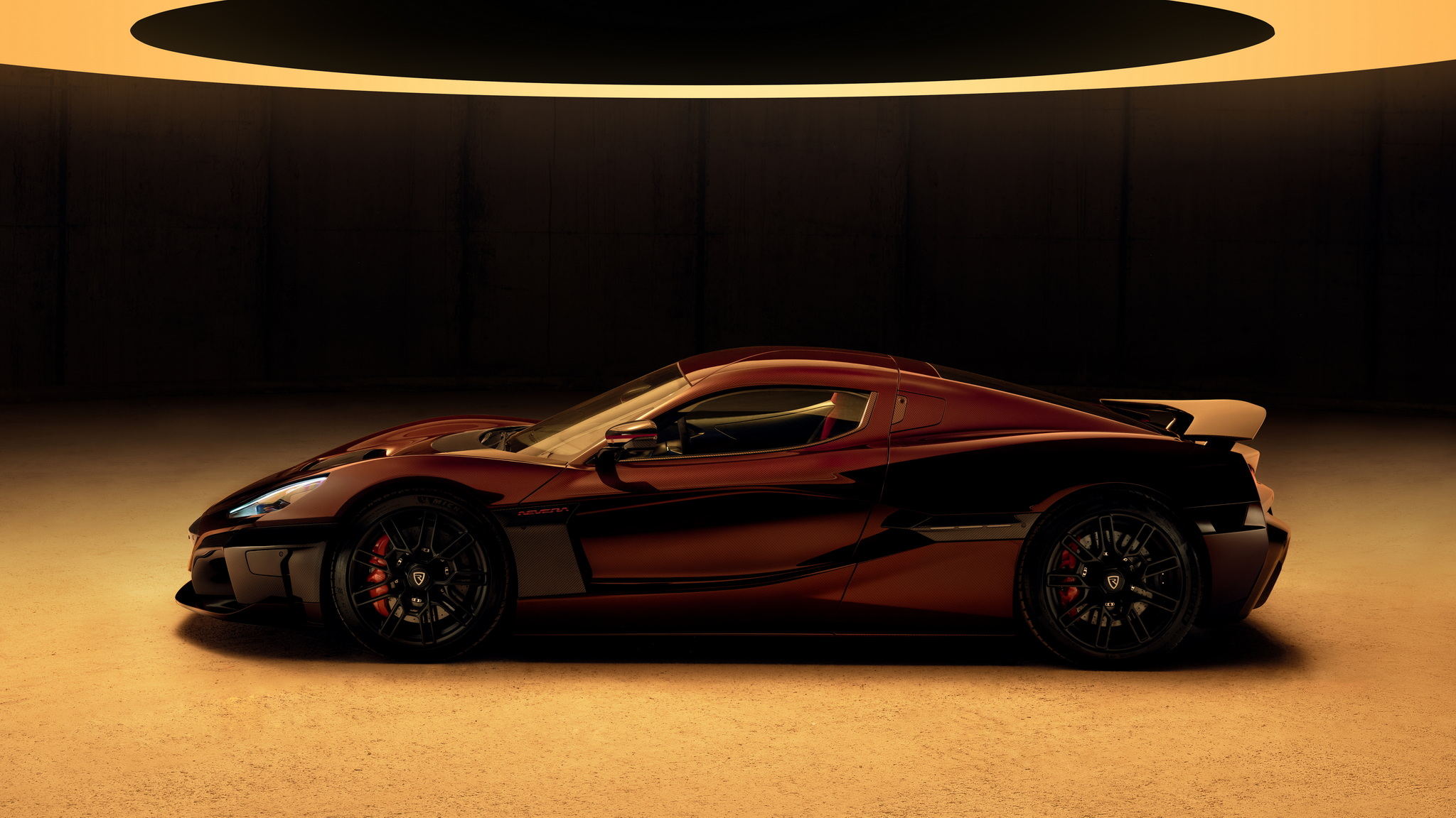 แน่นอนว่าเป็นถึงรถของผู้ก่อตั้งสเปคย่อมจัดเต็มแน่นอน Nevera ของเขาไม่ได้ถูกลงสีแต่เป็นตัวถังคาร์บอนไฟเบอร์เปลือยทั้งหมดสีทูโทน สีแดงเป็นสีหลักตัดกับสีเทาธรรมชาติตามจุดต่างๆ ลวดลายเส้นใยคาร์บอนไฟเบอร์จะถูกเรียงกันอย่างประณีตไหลลื่นทั่วคัน อักษร Nevera ข้างตัวรถเป็นสีแดงชุบอโนไดซ์ กระจกมองข้างทั้งสองฝั่งมีลายธงชาติโครเอเชียถูกวาดขึ้นด้วยมือ และมีรูปสายฟ้าออกแบบพิเศษซ่อนอยู่ใต้สปอยเลอร์หลัง เพื่อแสดงความเคารพต่อพายุเมดิเตอร์เรเนียนนอกชายฝั่งโครเอเชียที่เป็นที่มาของชื่อ Nevera