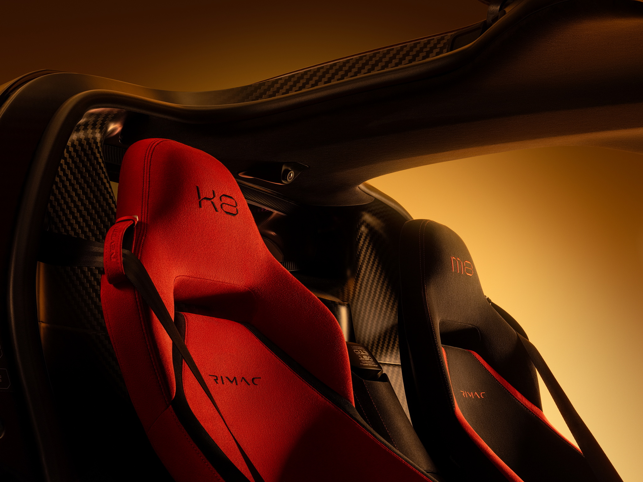 ห้องโดยสารมาในสีทูโทนดำแดง เน้นด้วยวัสดุ Alcantara เบาะนั่งแบบสปอร์ตแยกสีต่างกัน โดยเย็บตัวอักษร “K8” และ “M8” ไว้ที่พนักพิงศีรษะแต่ละข้าง แผงคอนโซลหน้าฝั่งผู้โดยสารยังมีลวดลายปัก เรียกว่า Solinjanka ซึ่งแปลว่าหญิงสาวจาก Solin รายละเอียดนี้เป็นการตีความประติมากรรมเด็กสาว Solinjanka ที่จัดแสดงในพิพิธภัณฑ์โบราณคดีแห่งซาเกร็บ