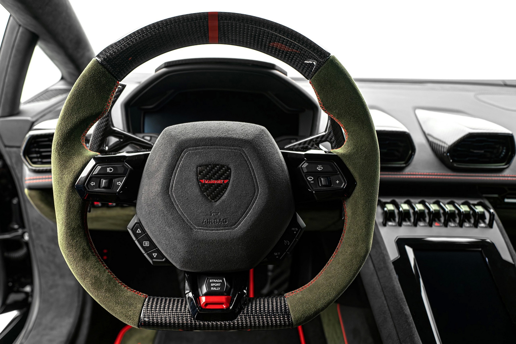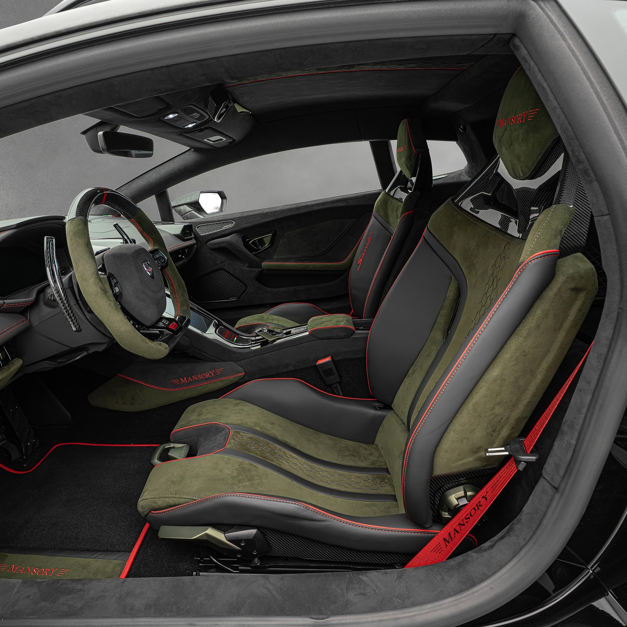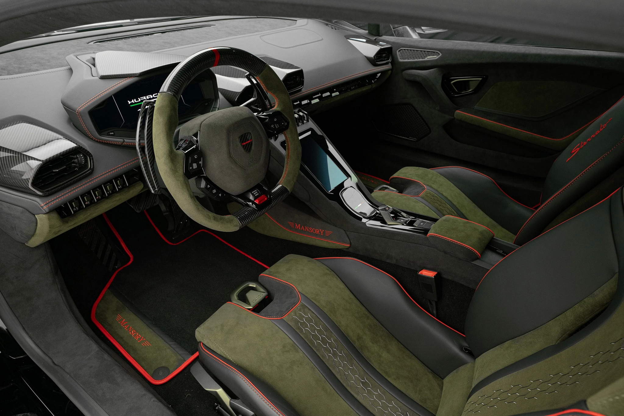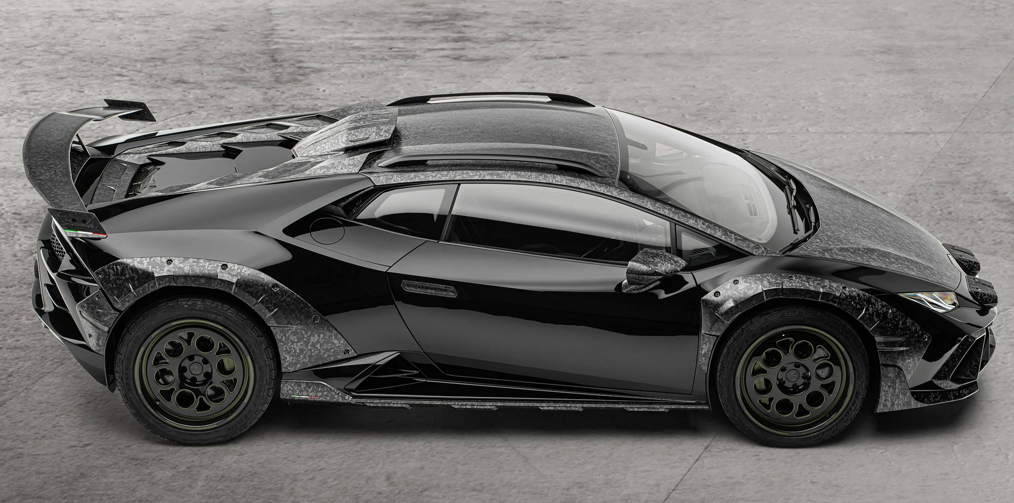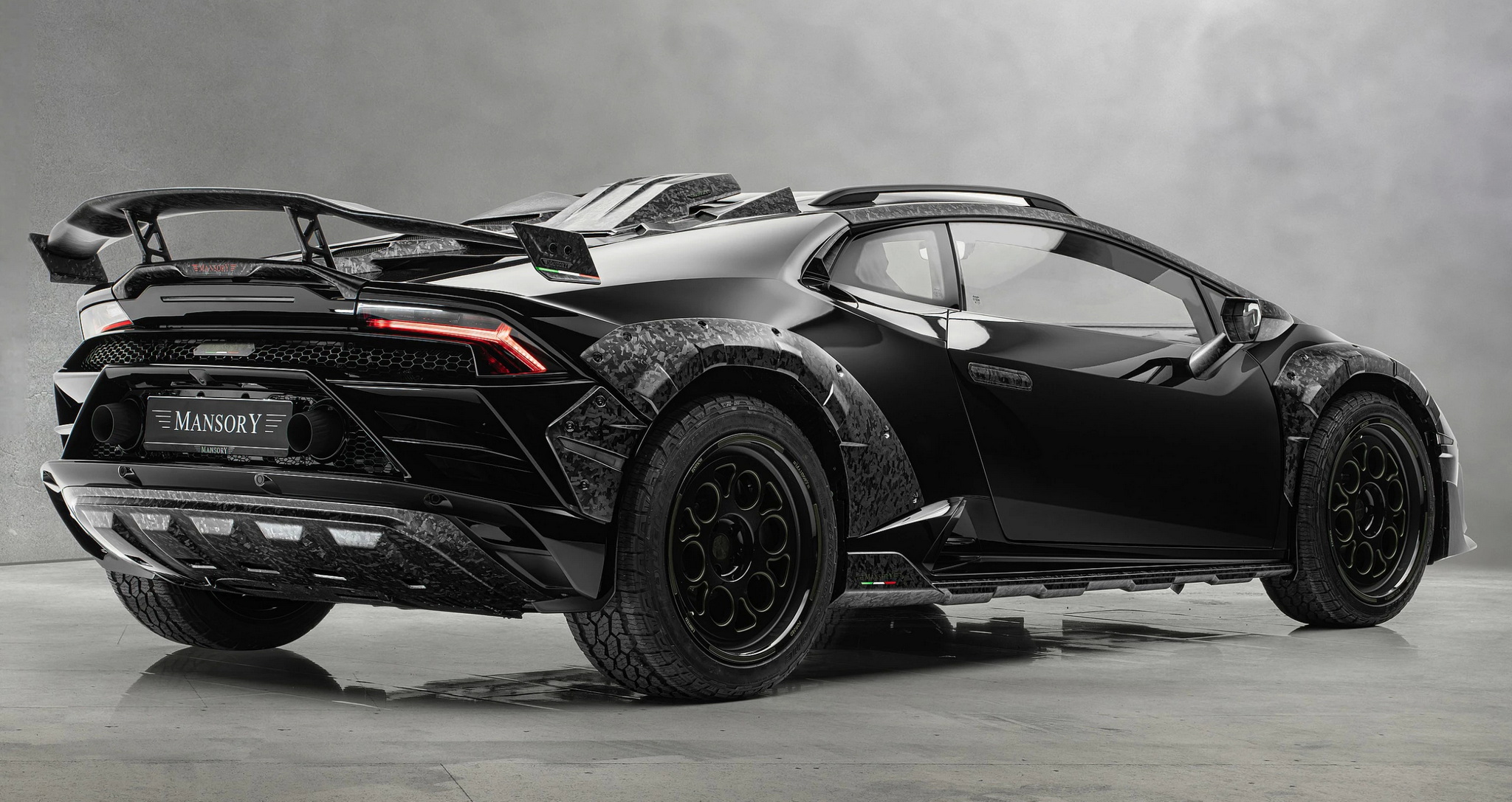 Mansory Huracán Sterrato ซุปเปอร์คาร์แนวออฟโรดที่ถูกแต่งแบบจัดเต็ม ด้วยชิ้นส่วนตัวถังเป็นคาร์บอนไฟเบอร์ทั้งหมดพร้อมลวดลายสุดอลัง ไม่ว่าเป็นส่วนของซุ้มล้อทั้งสี่, ฝากระโปรงหน้า, ชุดไฟ LED คู่หน้ารถ, หลังคา, ฝาท้ายเครื่องยนต์ และเพิ่มปีกท้ายขนาดใหญ่ ได้ล้อฟอร์จใหม่รุ่น FO.6 พร้อมยางออฟโรดสมรรถนะสูง