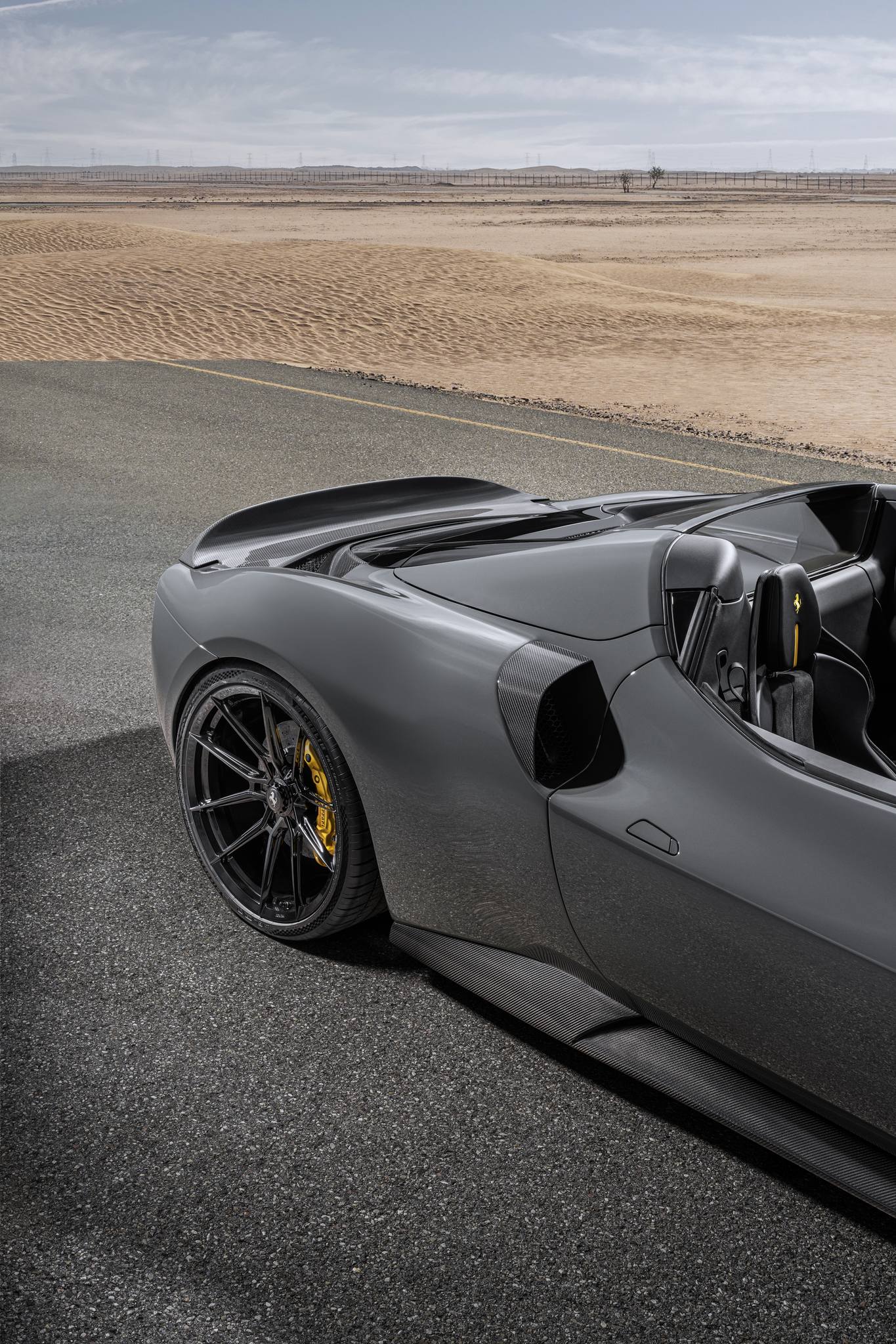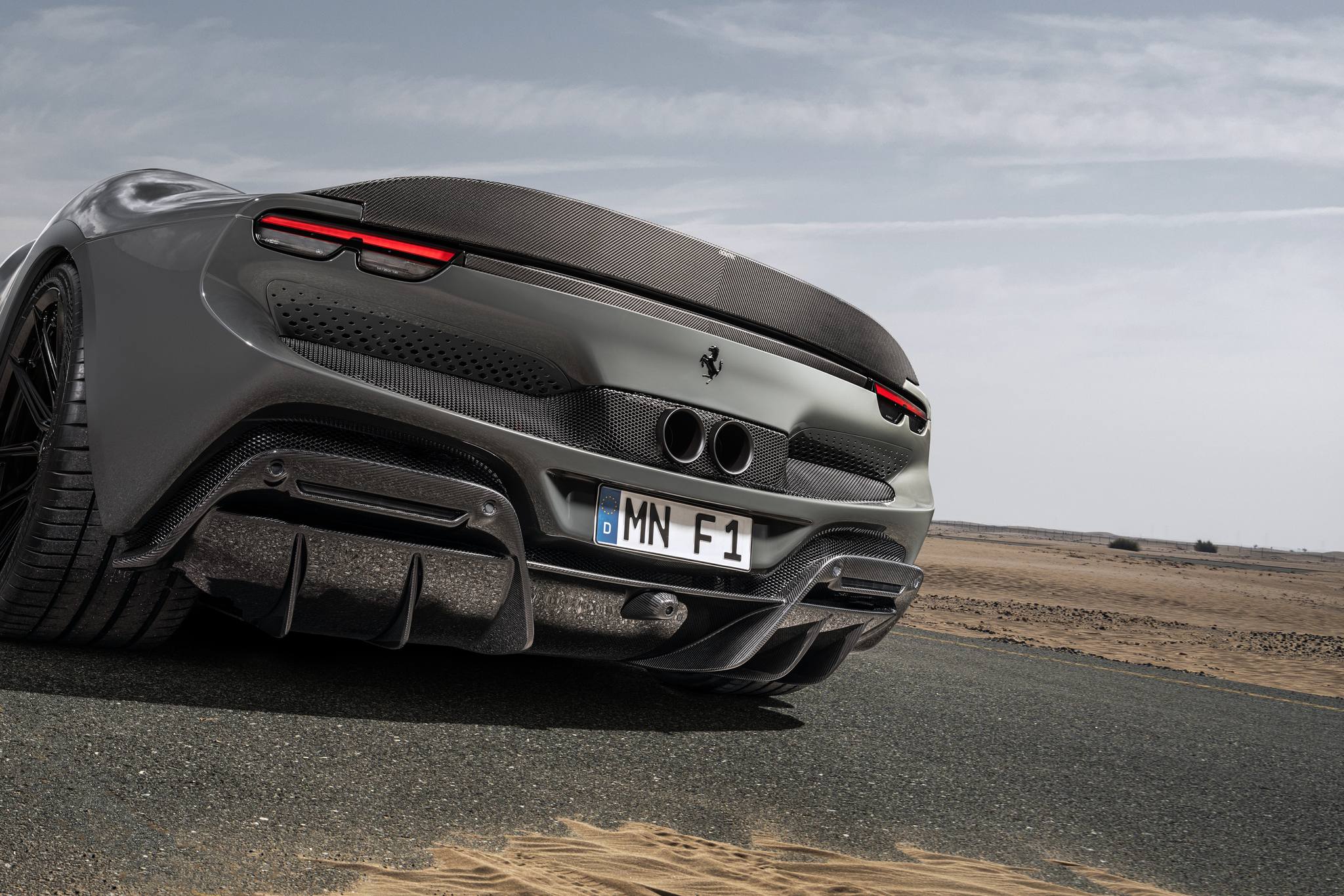 Novitec Ferrari 296 GTS ภายนอกจะมากับชุดแต่งที่ทำจากคาร์บอนไฟเบอร์ทั้งหมด เช่น ลิ้นสปอยเลอร์หน้า, สเกิร์ตข้าง, ฝาครอบกระจกมองข้าง, ช่องอากาศข้างตัวรถ, แผงฝาครอบเครื่องยนต์, ดิฟฟิวเซอร์ท้าย และปีกท้ายแบบตูดเป็ด ได้ล้อฟอร์จจาก Vossen ขนาดด้านหน้า 20 นิ้ว หลัง 21 เลือกสีได้ตามต้องการ ช่วงล่างจะเลือกอัพเกรดเฉพาะสปริงอย่างเดียวหรือแบบยกชุดโช้คอัพก็ได้