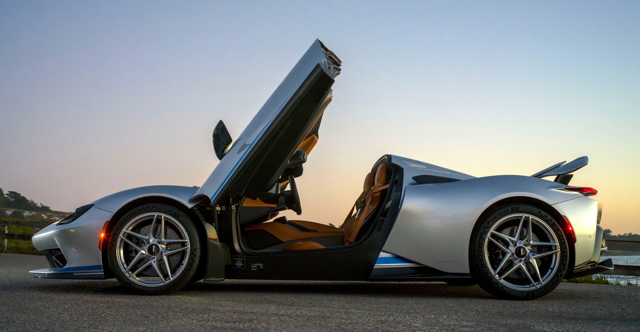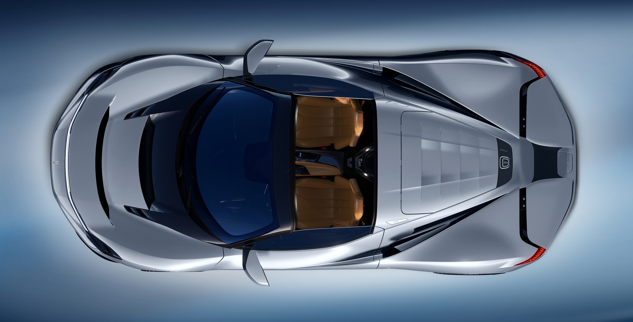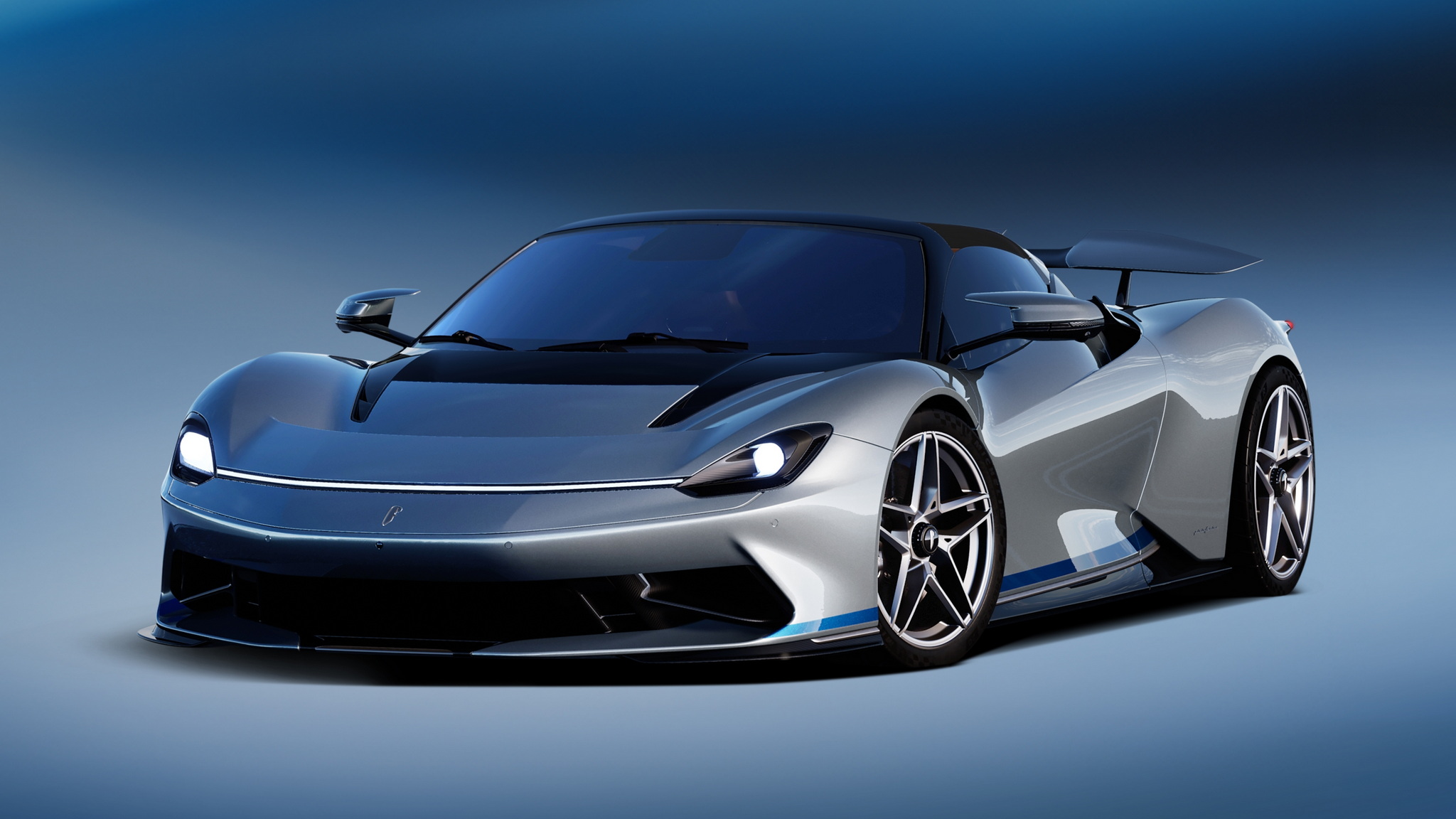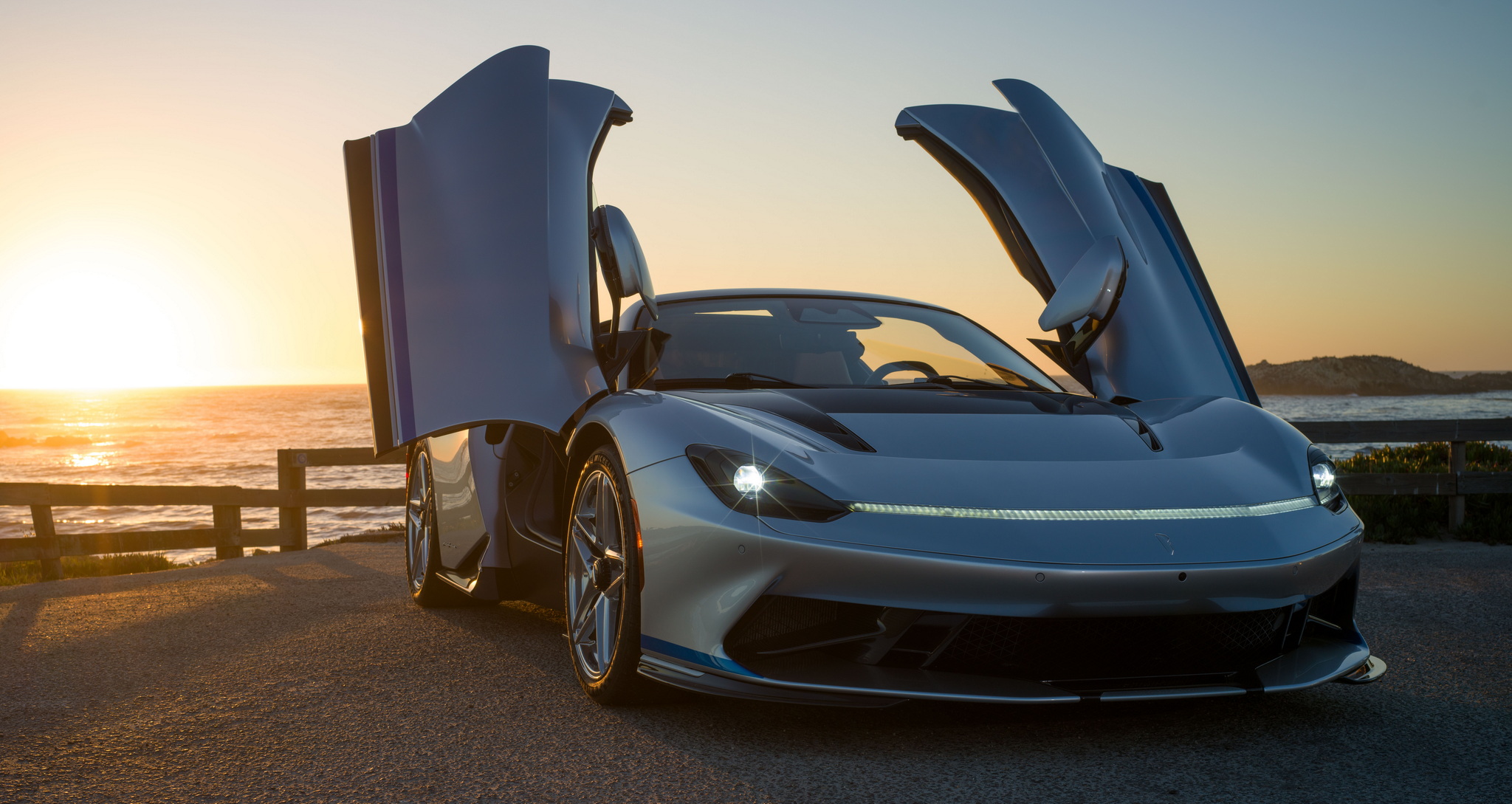 Battista Targamerica โดดเด่นด้วยความเป็นรุ่นเปิดประทุนทำพิเศษตามความต้องการลูกค้า แต่เดิม Battista จะมีกระจกบานหลังแต่ในคันนี้จะเปลี่ยนเป็นแบบทึบเซาะร่องไม่เหมือนใคร ตัวถังหลักมาในสีเงิน Argento Liquido Gloss พร้อมคาดเส้นส่วนล่างตัวถังด้วยสีน้ำเงิน Iconica Blu Gloss ใต้ปีกหลังแบบแอ๊คทีฟยังตกแต่งด้วยลายเส้น Pinstripes สีน้ำเงิน Iconica Blu เป็นงานวาดด้วยมือทั้งหมด ล้ออัลลอยด์ลาย 5 ก้าน เซรามิกขัดเงาสีเงินตัดกับดุมล้อ Center lock อลูมิเนียมอะโนไดซ์สีดำ