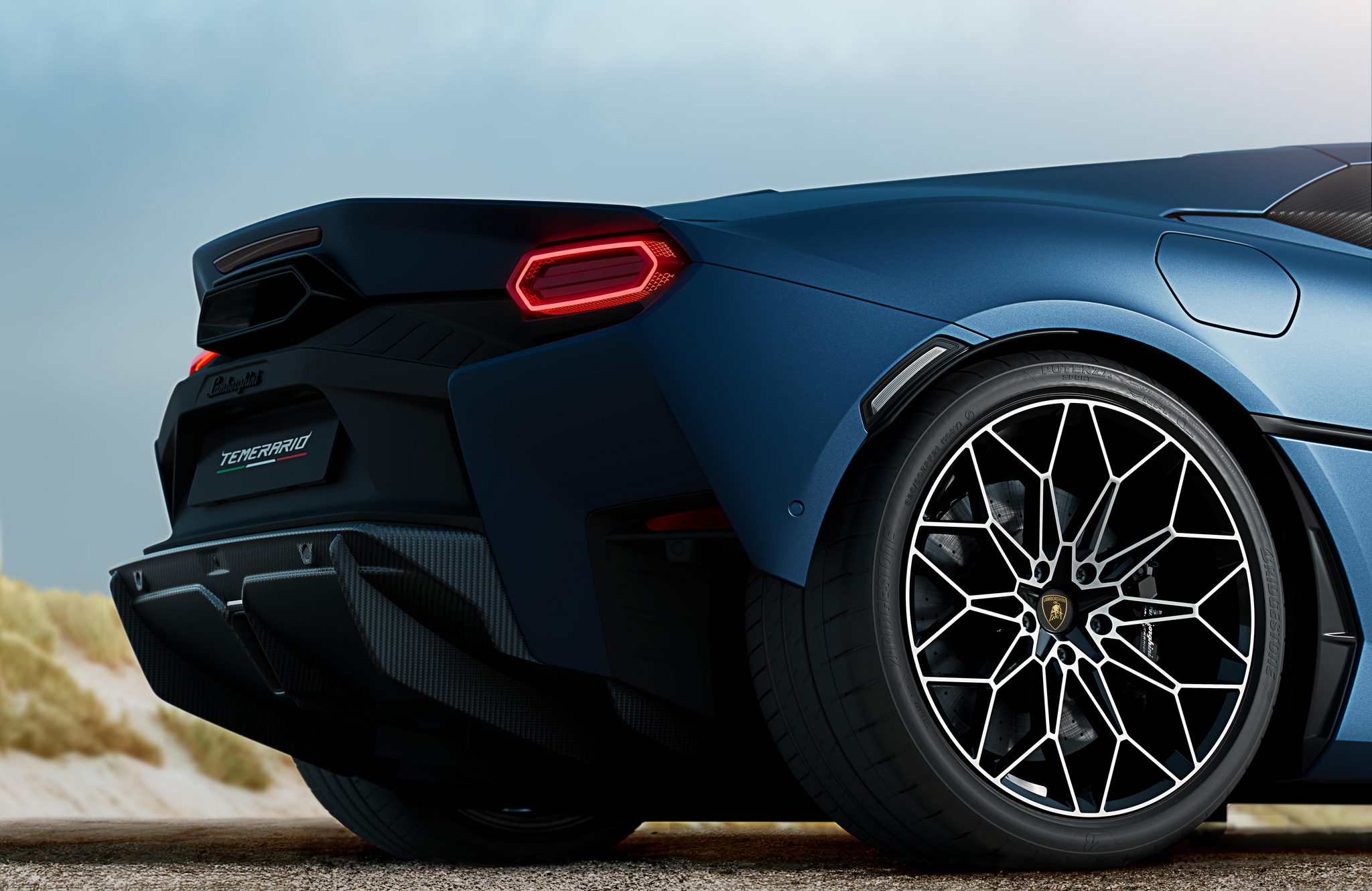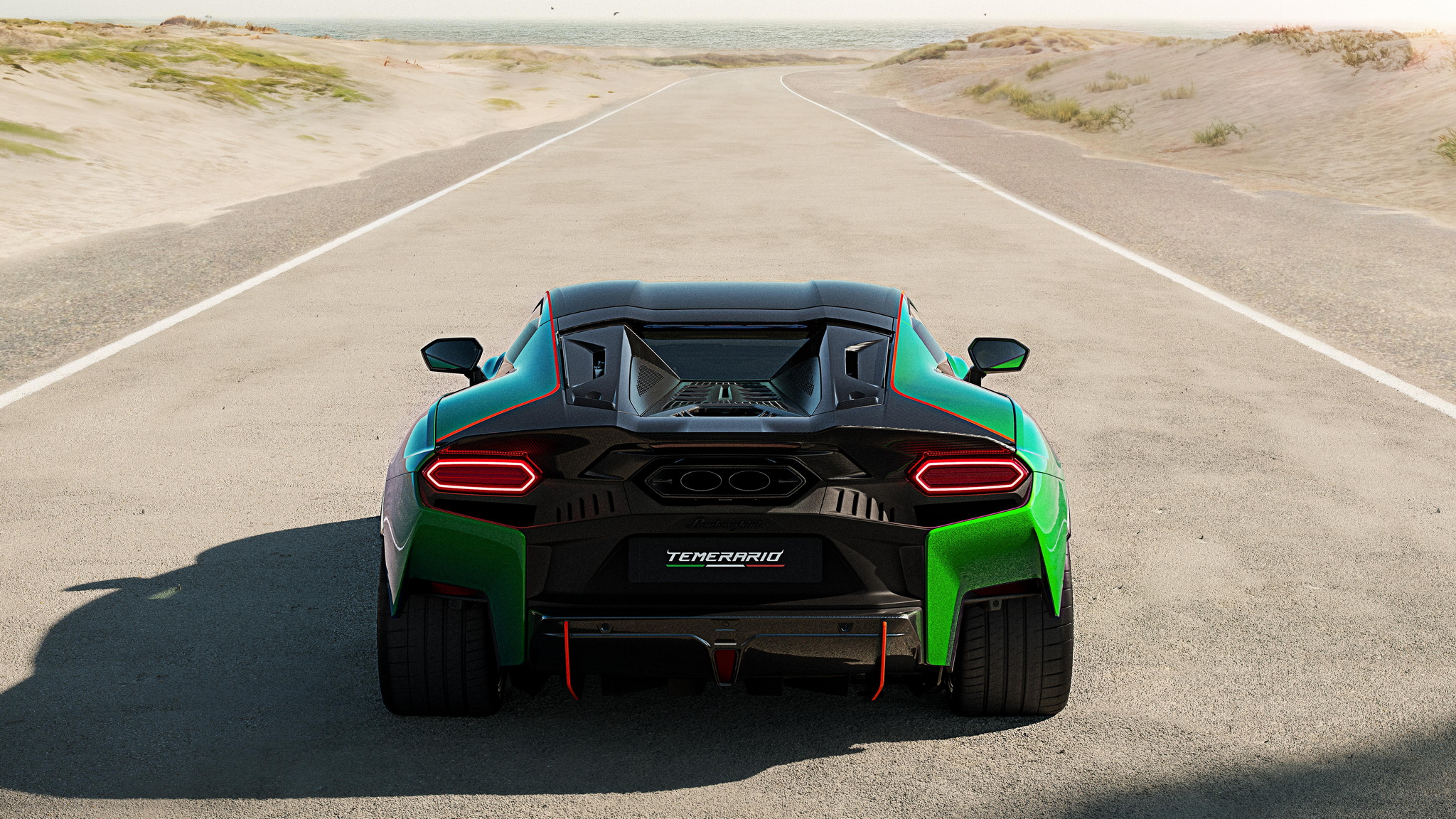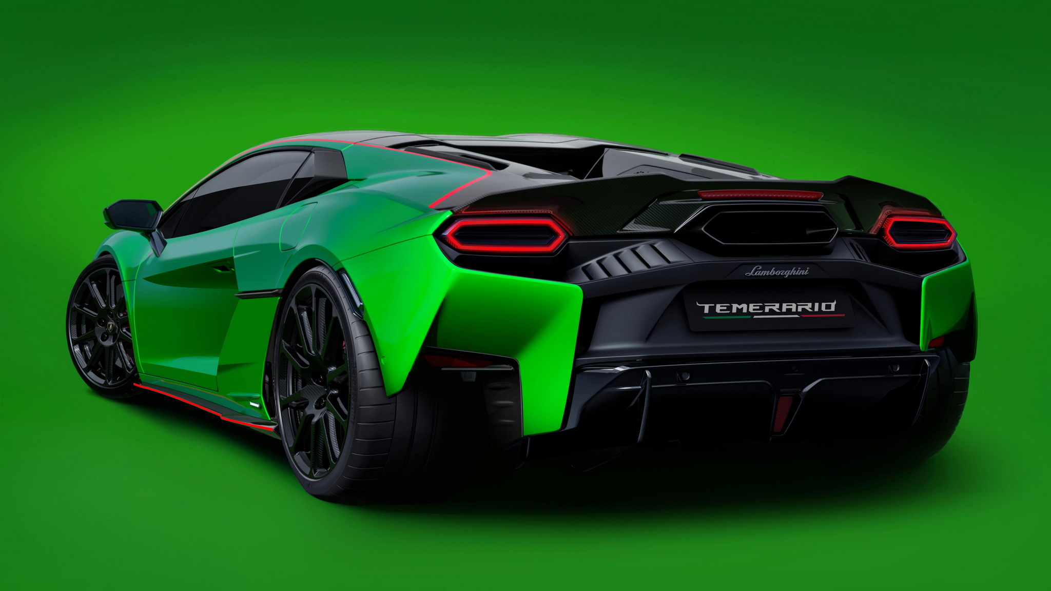 Lamborghini Temerario ซุปเปอร์คาร์ปลั๊กอินไฮบริดรุ่นใหม่ที่คลอดตามพี่ใหญ่ Revuelto ตามธรรมเนียมชื่อ Temerario มาจากกระทิงดุในมาดริดปี 1875 ขนาดรถใหญ่ขึ้นกว่า Huracán ด้วยมิติความยาว 4,706 มม. กว้าง 1,996 มม. สูง 1,201 มม. ระยะฐานล้อ 2,658 มม. น้ำหนักรถเปล่า 1,690 กิโลกรัม การกระจายน้ำหนักหน้าหลัง 43.4%-56.6% โครงสร้างแซสซีและเปลือกตัวถังเป็นอลูมิเนียมทั้งหมด ดีไซน์ภายนอกต่างจาก Huracán อย่างสิ้นเชิง มีเส้นสายที่ตรงเรียบง่ายแต่เน้นแอโรไดนามิกและการระบายความร้อนที่ยอดเยี่ยม รูปทรงหกเหลี่ยม Hexagon พบได้บนไฟ DRL กันชนหน้า, ไฟท้าย และปลายท่อไอเสีย และยังมีของให้เสียเงินเพิ่มนั่นคือชุดแต่ง Alleggerita Package ตัวรถจะเบาลง 25 กิโลกรัม เมื่อรวมกับล้อคาร์บอนไฟเบอร์ และแรงกดรวมก็เพิ่มขึ้นอีก 67% และประสิทธิภาพด้านอากาศพลศาสตร์เพิ่มขึ้น 62%