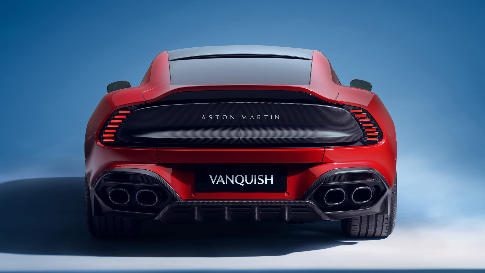 Vanquish ใหม่ใช้โครงสร้างตัวถังอะลูมิเนียมแบบเชื่อมติดพร้อมระบบกันสะเทือนหน้าแบบปีกนกคู่และระบบกันสะเทือนหลังแบบมัลติลิงค์ที่ปรับปรุงใหม่ ตัวถังทำจากคาร์บอนไฟเบอร์ทั้งหมด ฐานล้อยาวขึ้นประมาณ 80 มม. (เพิ่มขึ้นระหว่างเสา A และเพลาหน้า) ด้านหน้ามากับกระจังหน้าชิ้นใหญ่ ฝากระโปรงหน้าเสริมช่องระบายอากาศ ไฟหน้า LED ใหม่ทั้งหมด ข้างตัวรถโชว์โลโก้บ่งบอกความเป็น V12 ชัดเจน หลังคากระจกพาโนรามิก บั้นท้ายแปลกใหม่ด้วยดีไซน์สปอยเลอร์เรียกว่า “Kamm Tail” และแผงคาร์บอนไฟเบอร์เรียกว่า “Shield” เหมือนโล่ขนาดใหญ่ ไฟท้าย LED แบบใบมีดเรียงกันฝั่งละ 7 ชิ้น ดิฟฟิวเซอร์ท้ายก็ใหญ่โตรับกับท่อไอเสียสี่ท่อ โช้คอัพใช้ Bilstein DTX ตัวล่าสุด เบรกคาร์บอนเซรามิกด้านหน้าขนาด 410 มม. ด้านหลัง 360 มม. คู่กับยาง Pirelli P Zero ทำเฉพาะ Vanquish