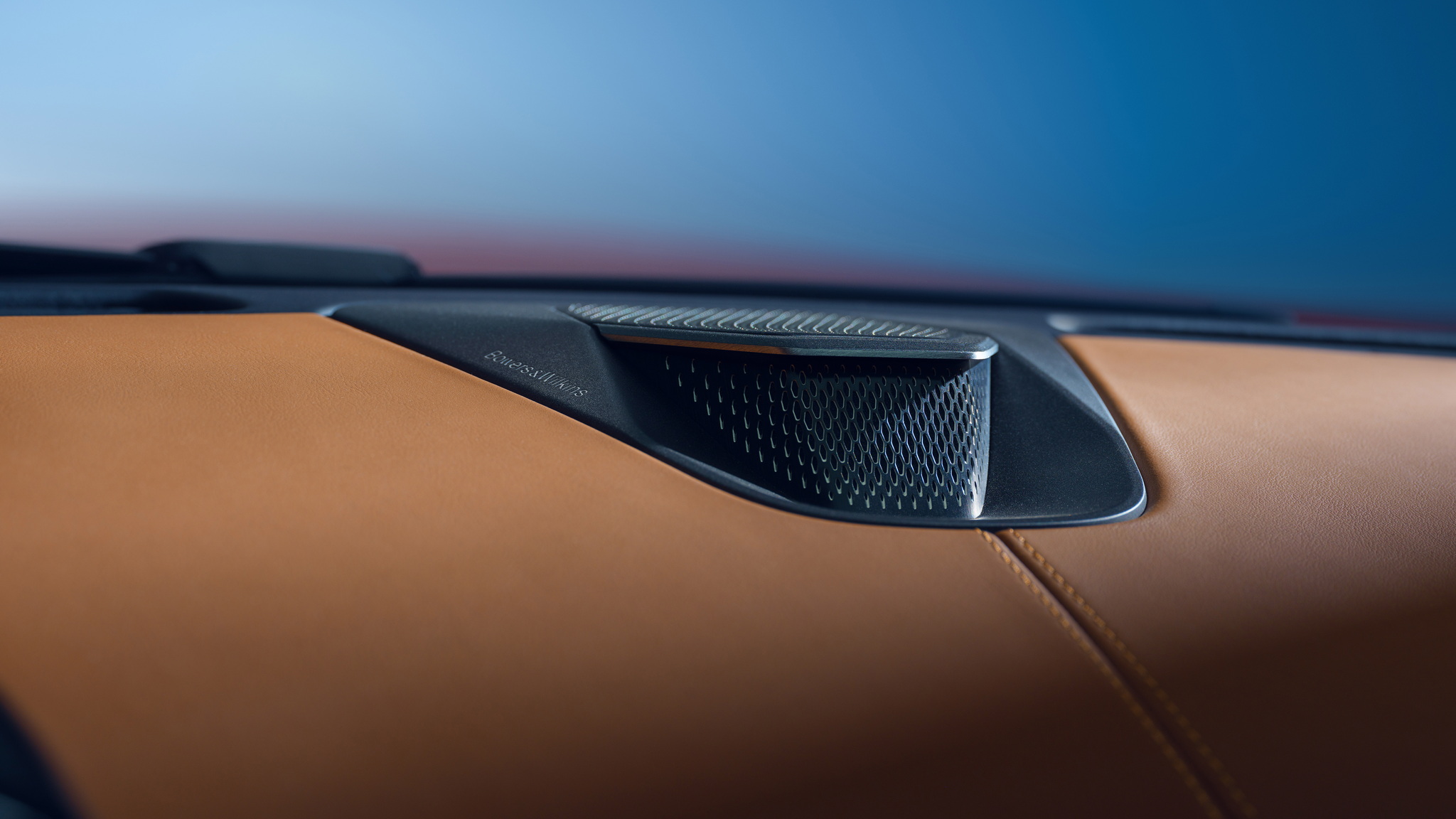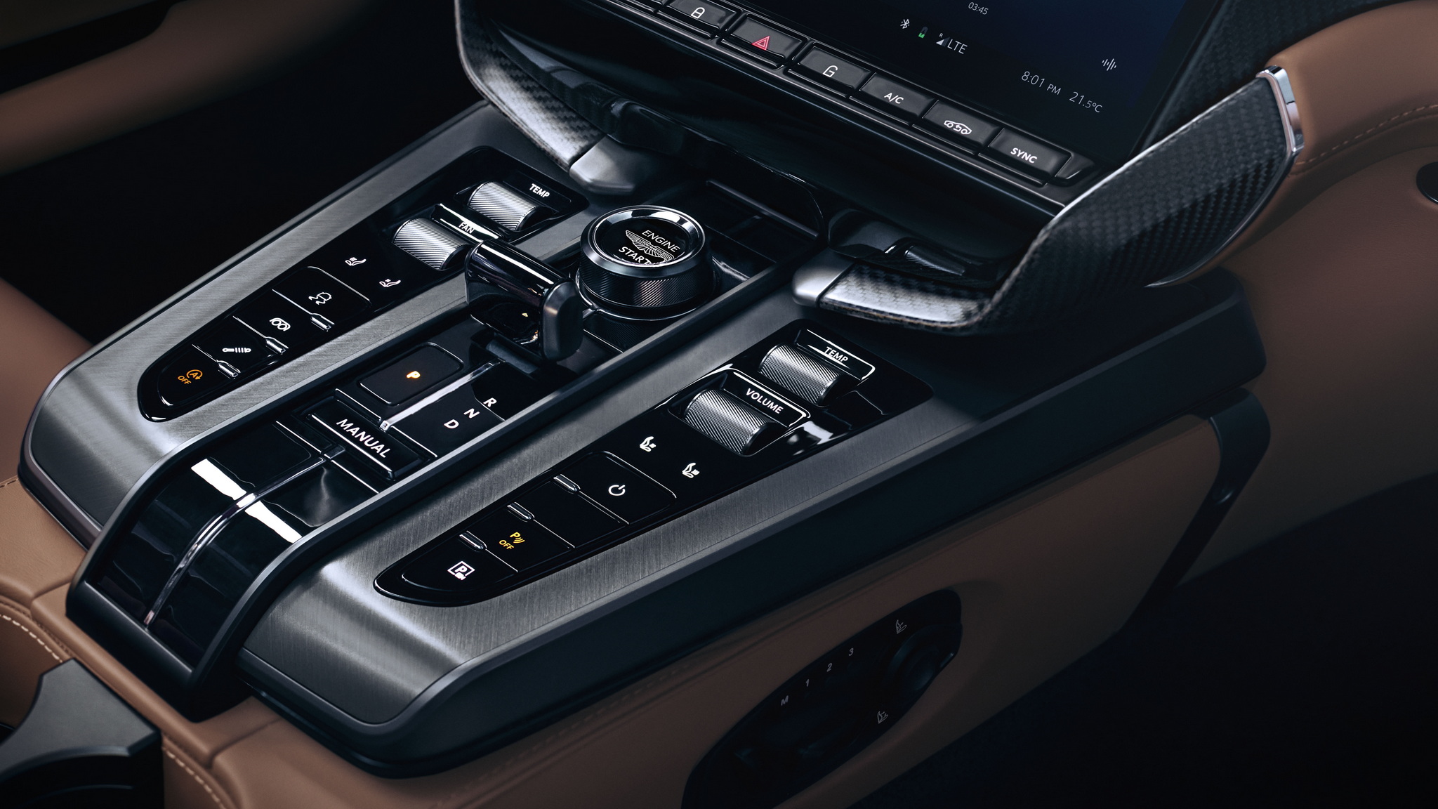 ห้องโดยสารเป็นสไตล์เดียวที่พบใน DB12 ทั้งจอหน้าปัด TFT ขนาด 10.25 นิ้ว จอกลางสัมผัสขนาด 10.25 นิ้ว รองรับ Apple CarPlay ไร้สาย มีจุดที่ปรับปรุงเล็กน้อยอย่างคอนโซลกลางบริเวณปุ่มควบคุมถูกปรับให้เป็นระนาบแนวนอนต่ำกว่าเดิมเพื่อความกว้างโอ่อ่า วัสดุภายในก็หรูหราตามสไตล์ Aston Martin