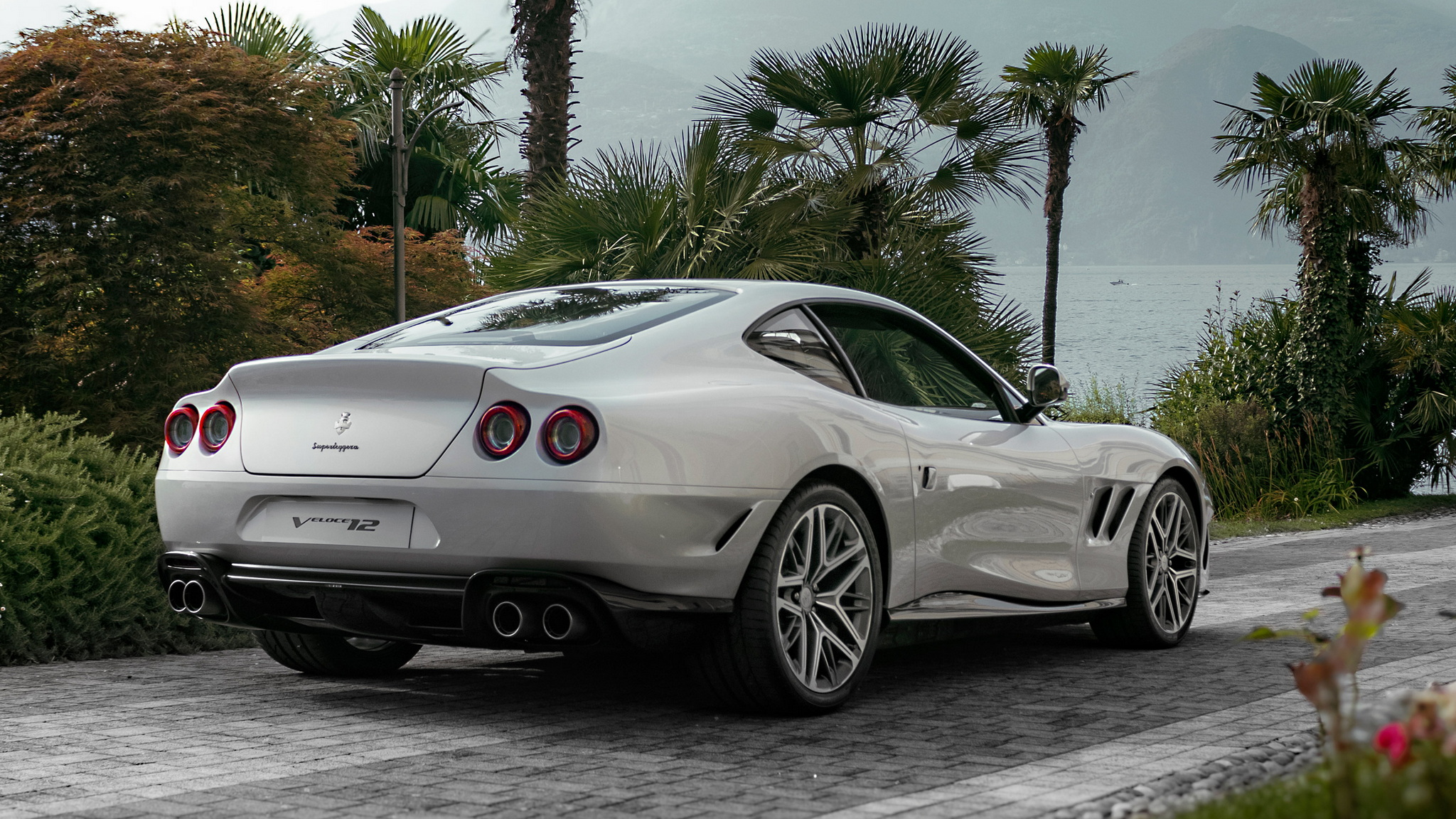 Veloce12 สร้างบนพื้นฐาน Ferrari 550 Maranello ปี 1996 การออกแบบใหม่นี้ยังคงกลิ่นอายดั้งเดิมไว้แต่ปรับให้เข้ายุคสมัยขึ้น ตัวถังทำจากคาร์บอนไฟเบอร์มีการปรับมิติตัวรถให้ใหญ่ขึ้น ยาว 4,579 มม. (เพิ่มขึ้น 29 มม.) กว้าง 1,961 มม. (เพิ่มขึ้น 26 มม.) สูง 1,291 มม. (เพิ่มขึ้น 26 มม.) และฐานล้อ 2,500 มม. (เท่าเดิม) ดีไซน์คำนึงถึงด้านอากาศพลศาสตร์ เช่น กันชนหน้าแบบมีช่องม่านอากาศ ครีบระบายอากาศข้างตัวรถ ช่องอากาศไหลผ่านข้างกันชนท้าย และดิฟฟิวเซอร์ อัพเกรดไฟหน้า-ไฟท้ายเป็นแบบ LED ล้อเดิม 18 นิ้ว ขยายเป็น 19 นิ้ว มีระบบกันสะเทือนใหม่แบบปรับได้จาก TracTive และเบรก Brembo จานหน้าขนาด 380 มม. คาลิปเปอร์ 6 สูบ จานหลัง 380 มม. คาลิปเปอร์ 4 สูบ
