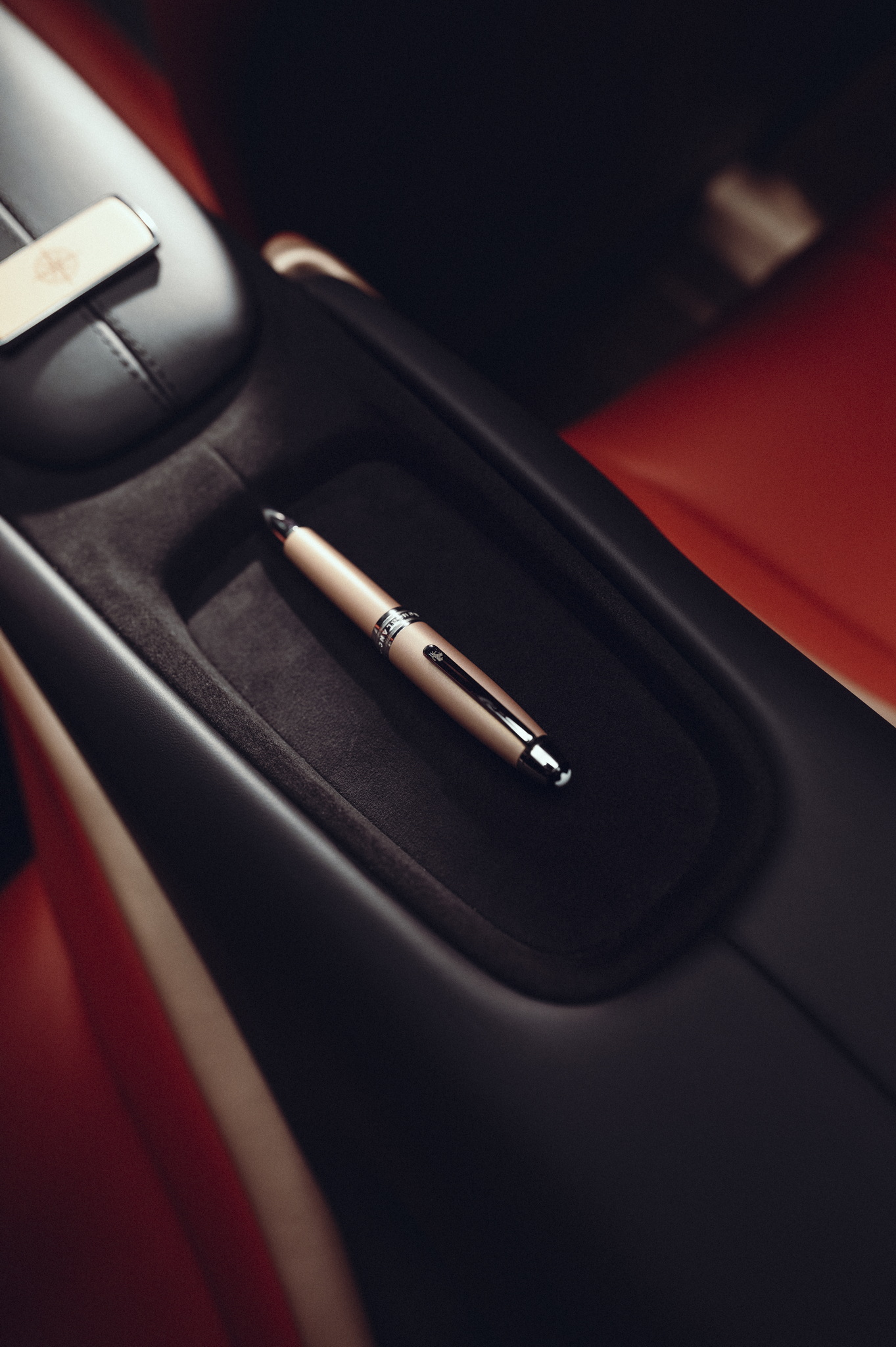 ความพิเศษอื่นๆ คือภายในห้องโดยสารหุ้มด้วยหนังแท้ Nappa ปราศจากสารโครเมียม งานเดินด้ายใช้ยางรีไซเคิล และที่โดดเด่นคือบริเวณฝาครอบถัดจากหลังเบาะและที่พื้นรถมีการใช้ไม้คุณภาพจากฝรั่งเศส คอลโซลกลางยังมีวัสดุทรายรีไซเคิลจากโรงหล่อของเฟอร์รารี่ นอกจากนี้ยังมีปากกา Montblanc สีทองเหมือนตัวถังรถทำจากทองคำแท้ Au750 และเคลือบแพลตตินัมพร้อมลวดลายเข็มทิศพิเศษ และมีสมุดบันทึกปกทำจากหนังรีไซเคิล ถือเป็นหนึ่งคันที่ใช้วัสดุรักษ์โลกอย่างมาก